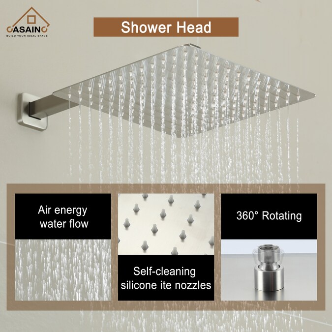 - Equipped with a 12-inch 304 stainless steel shower head, a 1.5-meter handheld shower hose and an 8-inch copper handheld shower, dedicated to bringing users a more comfortable bathing experience