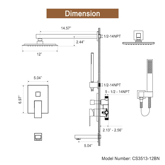 - All threads are NPT 1/2, to ensure the safer and faster installation process, it’s highly recommended to hire the plumber or contractor to install the shower system