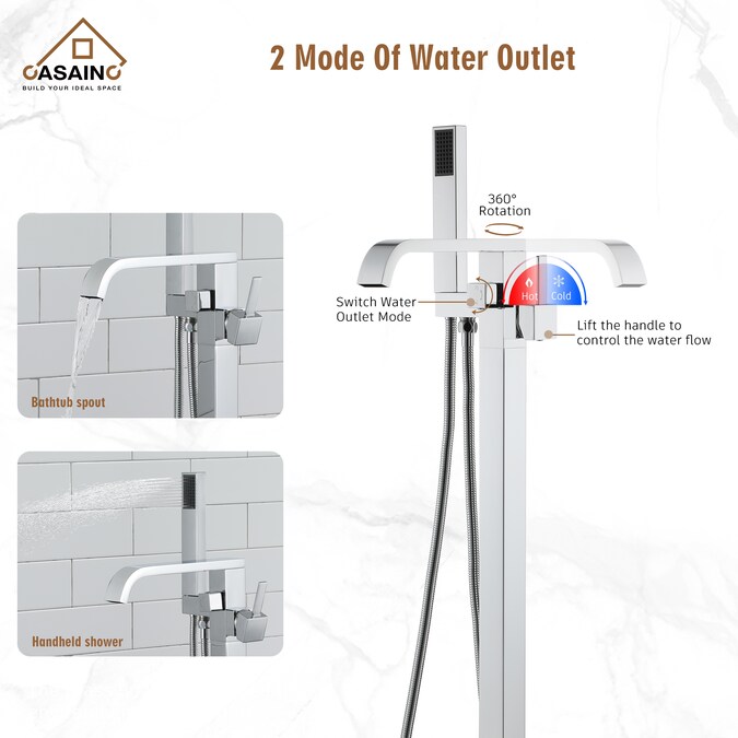 Casainc’s floor-mounted claw-foot bathtub faucet with hand-held shower offers clean lines and elegant design, the perfect combination of the ideal and the popular shower head. This contemporary freestanding bathtub faucet with hand shower is made of durable and reliable materials that are resistant to corrosion and rusting even after years of use. Drip free ceramic disc cartridge with built in sediment filter; durable seals and ceramic shell prevent leaks and promote smooth operation and functionality for over 500,000 uses. The dual functionality of our detachable sprayer is the perfect tool for all your bathing needs including rinsing your hair, washing children or pets and also for keeping the tub clean after use. When finished, simply slip the sprayer back to its secure dock.