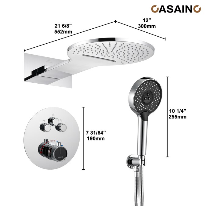 - Digital Handheld Shower Head: The digital temperature display makes it easy to find the right water temperature for you Digital Handheld Shower Head: The digital temperature display makes it easy to find the right water temperature for you Digital Handheld Shower Head: The digital temperature display makes it easy to find the right water temperature for you High-Quality Luxury Shower System: Our thermostatic valve, made of copper, was made with longevity in mind Our thermostatic valve, made of copper, was made with longevity in mind