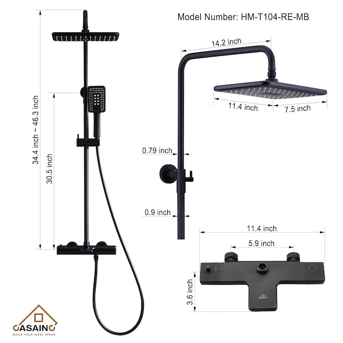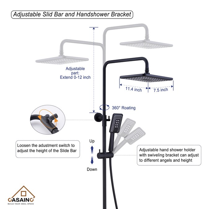 - The rain shower head can offer consistent, powerful water flow, and the shower rod has an adjustable extension height of 0-12 inches