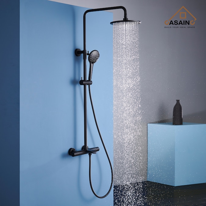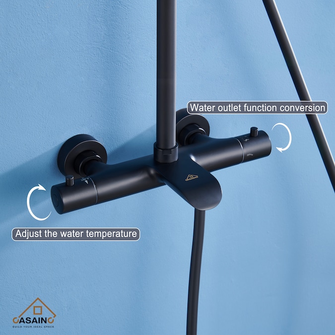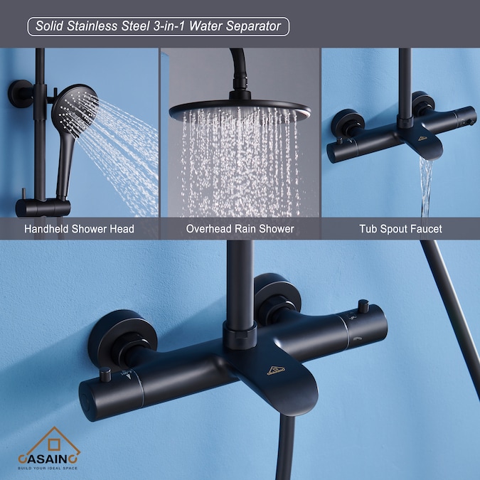 This three-function matte black thermostatic round shower has a perfect and smooth appearance. The high-quality craft castings are matched with a round shower and a hand shower. The exposed sliding rod can support the height adjustment of the hand-held shower seat. UPC certification, in line with the requirements of American pipeline standards, worry-free installation.