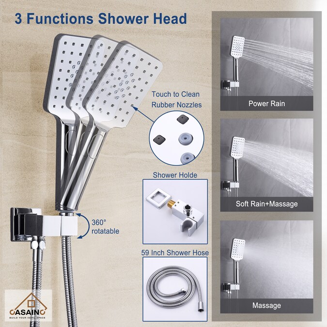 This CASAINC Luxury 2 in 1 Shower System with Classical Looking: The chrome finish and classical look shower system complements the decoration of your new bathroom. Dual-function shower faucet is in right now because this gives you the convenience of having one rainfall bath and one handheld sprayer which you could use for focusing on bathing your body. Don’t hesitate, place an order quickly!