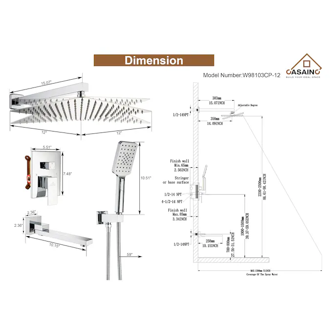- Enjoy Bathing: Our shower faucets sets complete is made of high quality metal with long service life: 12-inch metal stainless steel round shower head offers a good coverage to soak your entire body as if you are in a luxury hotel or spa; The hand shower is connected to a 59-inch length of stainless steel hose, which can easily clean all parts of the body; 180 degree rotating bathtub spout can adjust the angle as needed and be placed against the wall without taking space