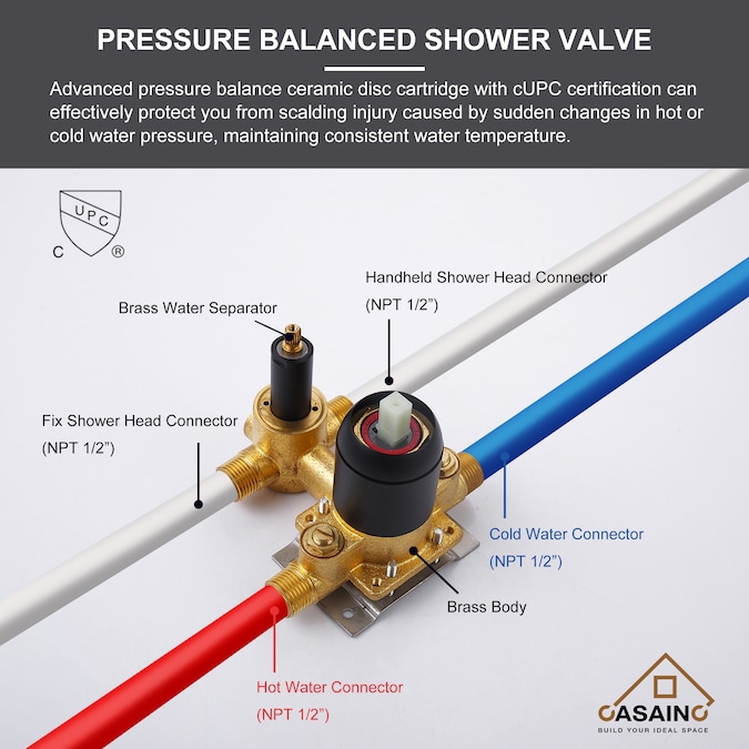 - cUPC CEC certified valve, compatible with comfortable use and safety, balance the supply of hot and cold water and prevent scalding