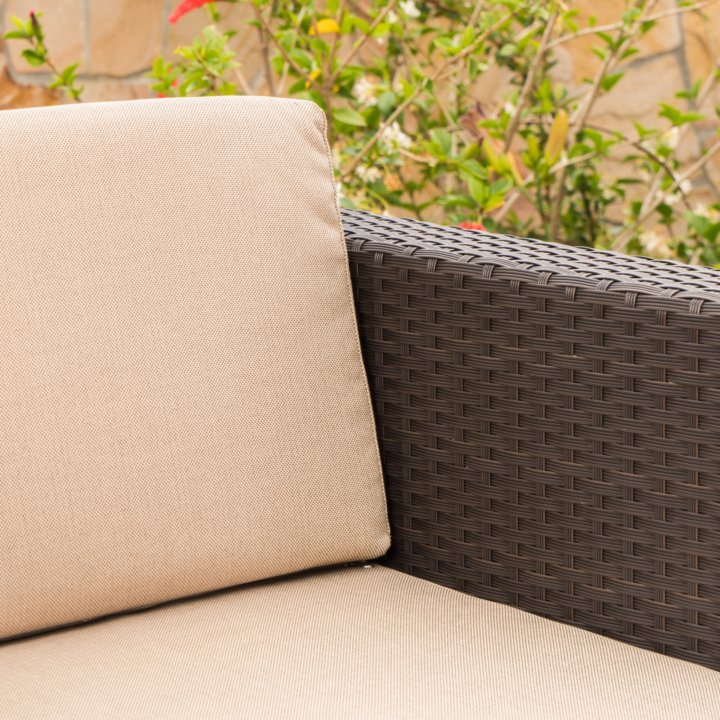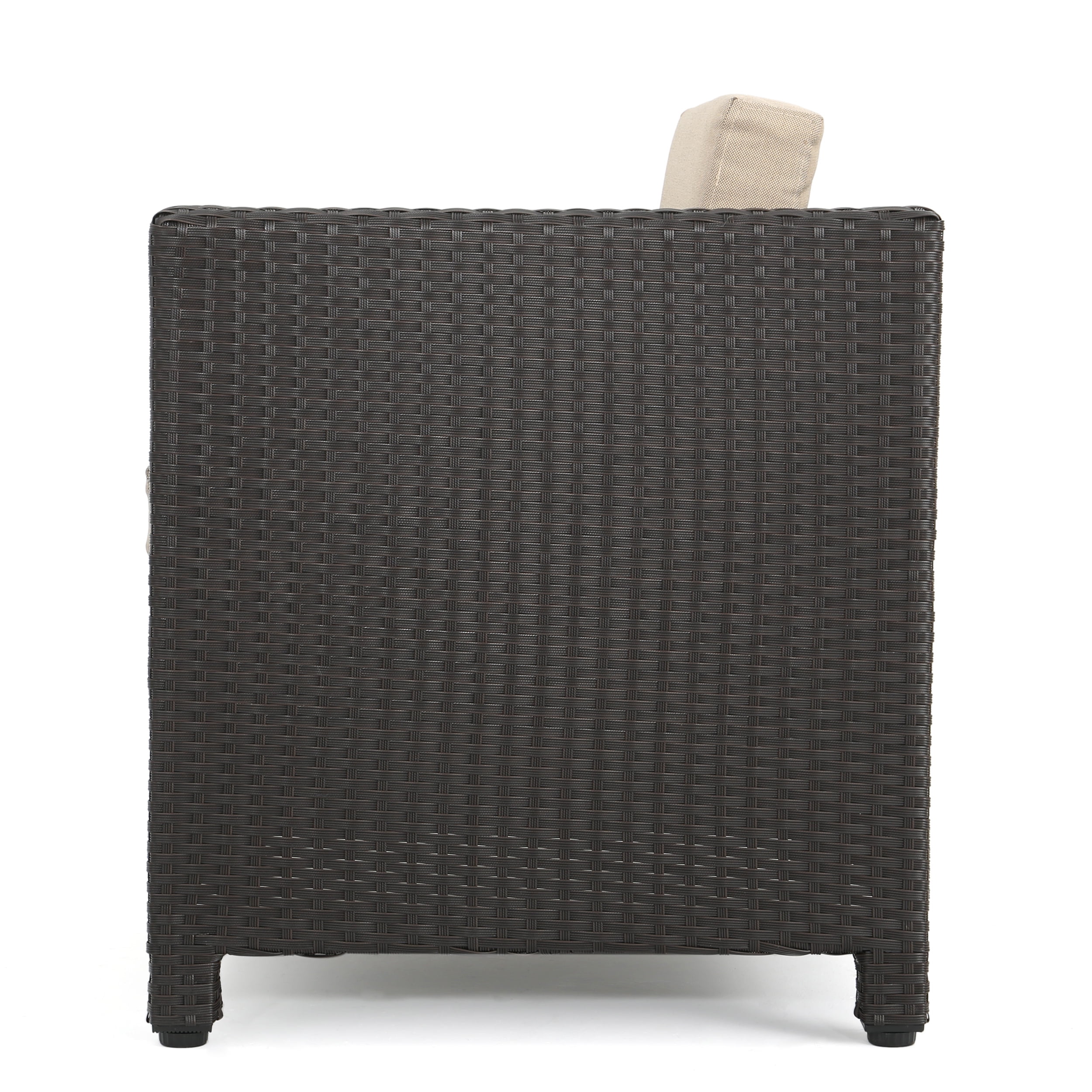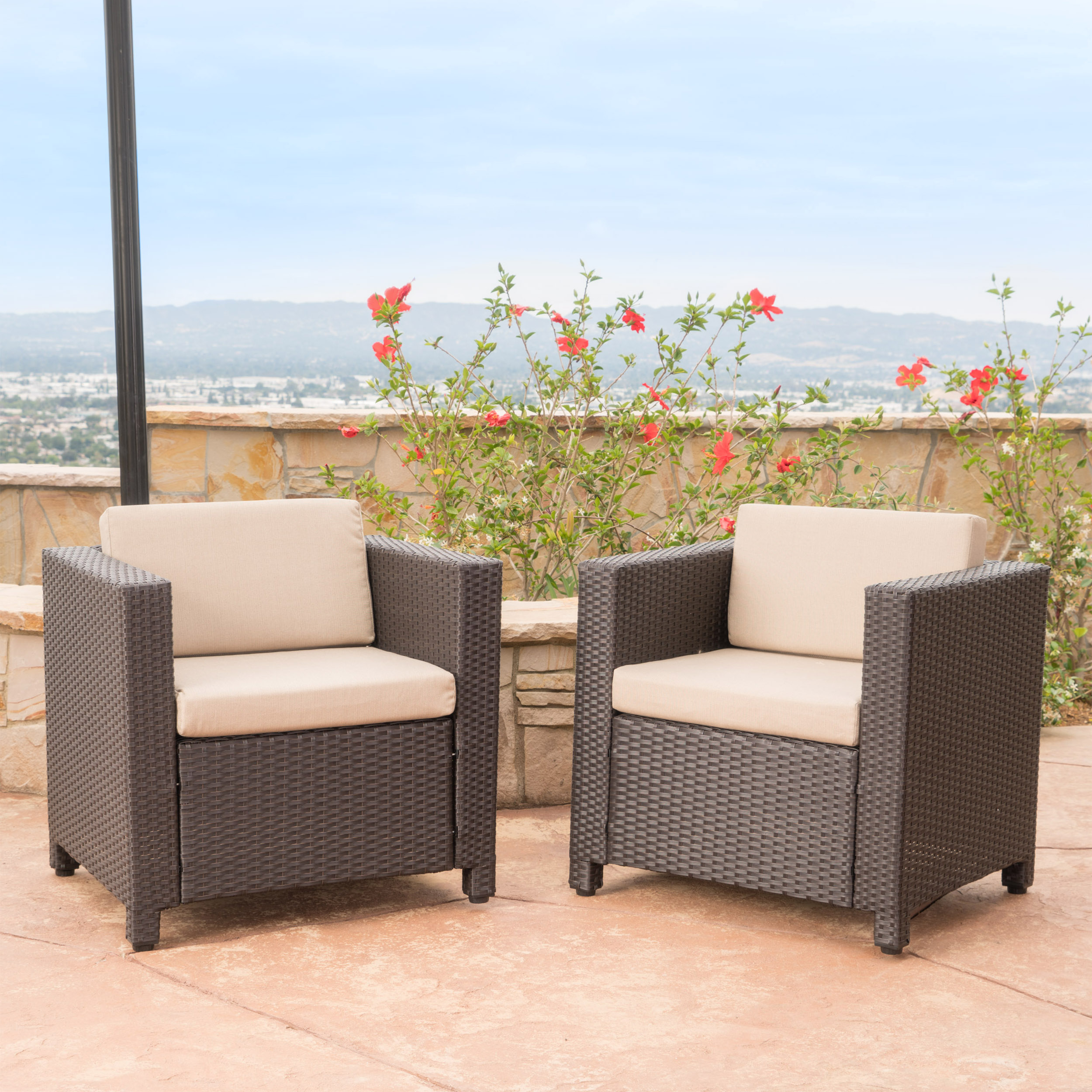 Cascada Outdoor Wicker Club Chair with Cushions, Set of 2, Dark Brown, Beige