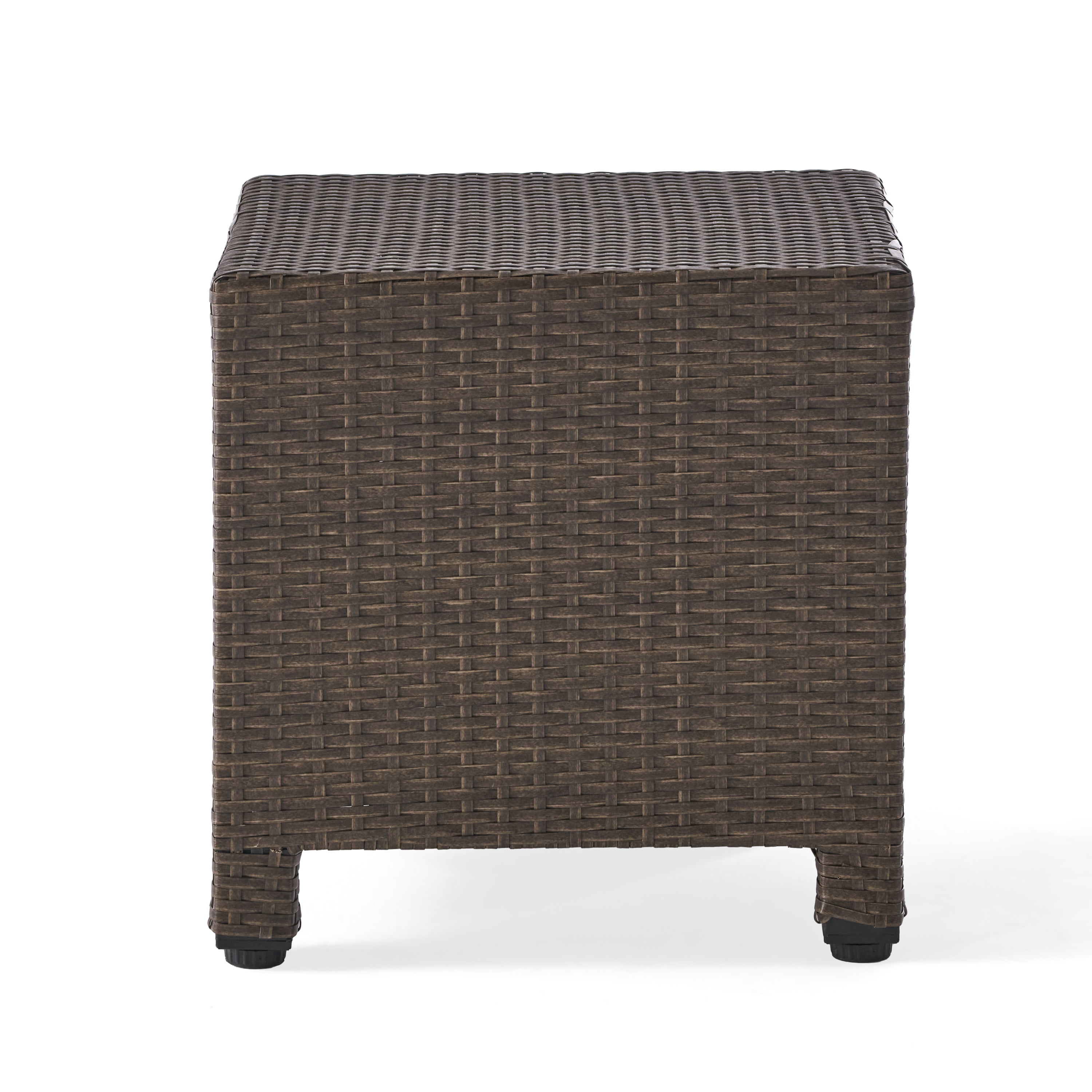 Includes: One (1) Side Table Material: Polyethylene Wicker Frame Material: Iron Wicker Finish: Light Brown Assembly Required Dimensions: 18.00 inches deep x 18.00 inches wide x 18.00 inches high