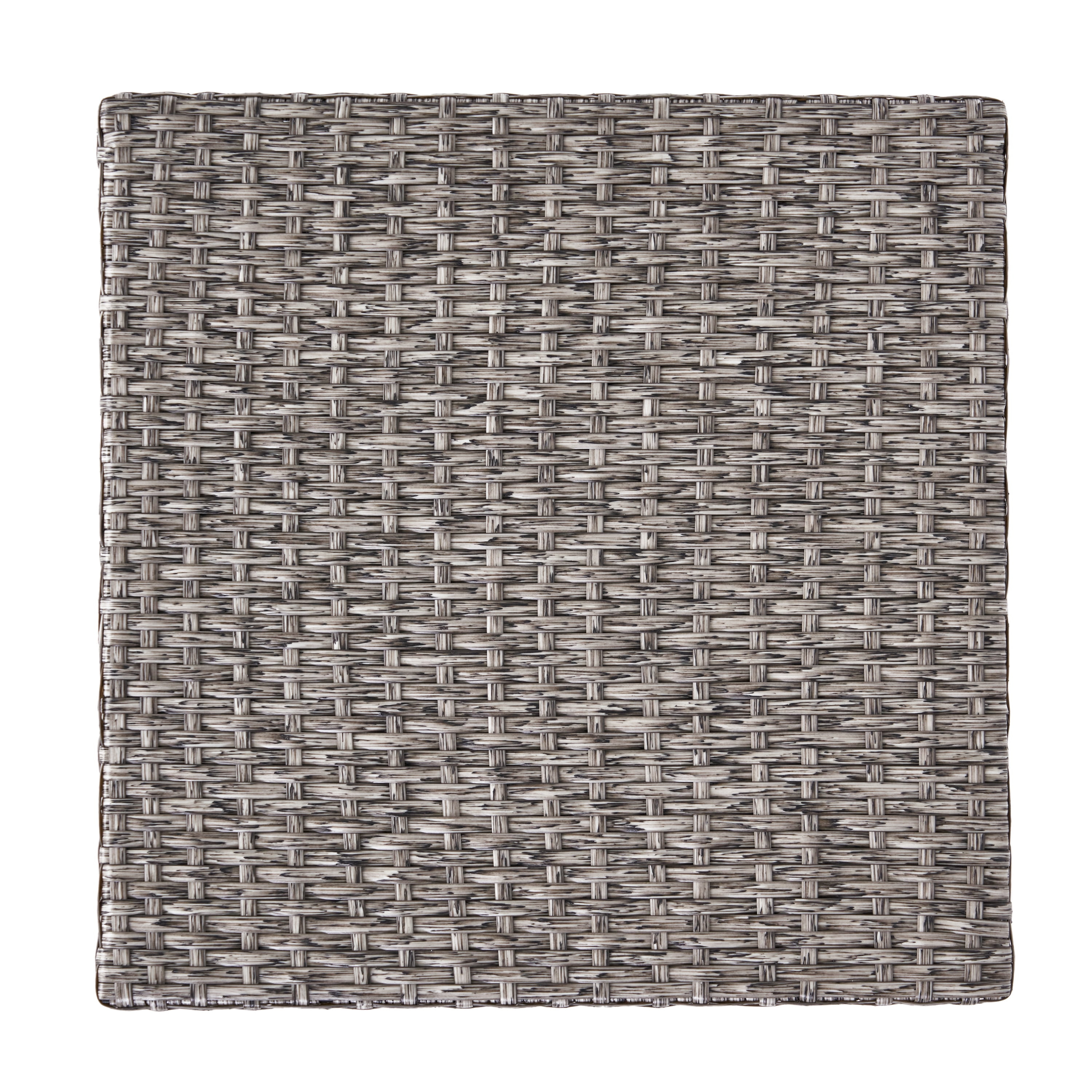 Includes: One (1) Coffee Table Material: Polyethylene Wicker Frame Material: Iron Wicker Finish: Mixed Black Assembly Required Hand Crafted Details Table Dimensions: 18.00 inches deep x 18.00 inches wide x 18.00 inches high