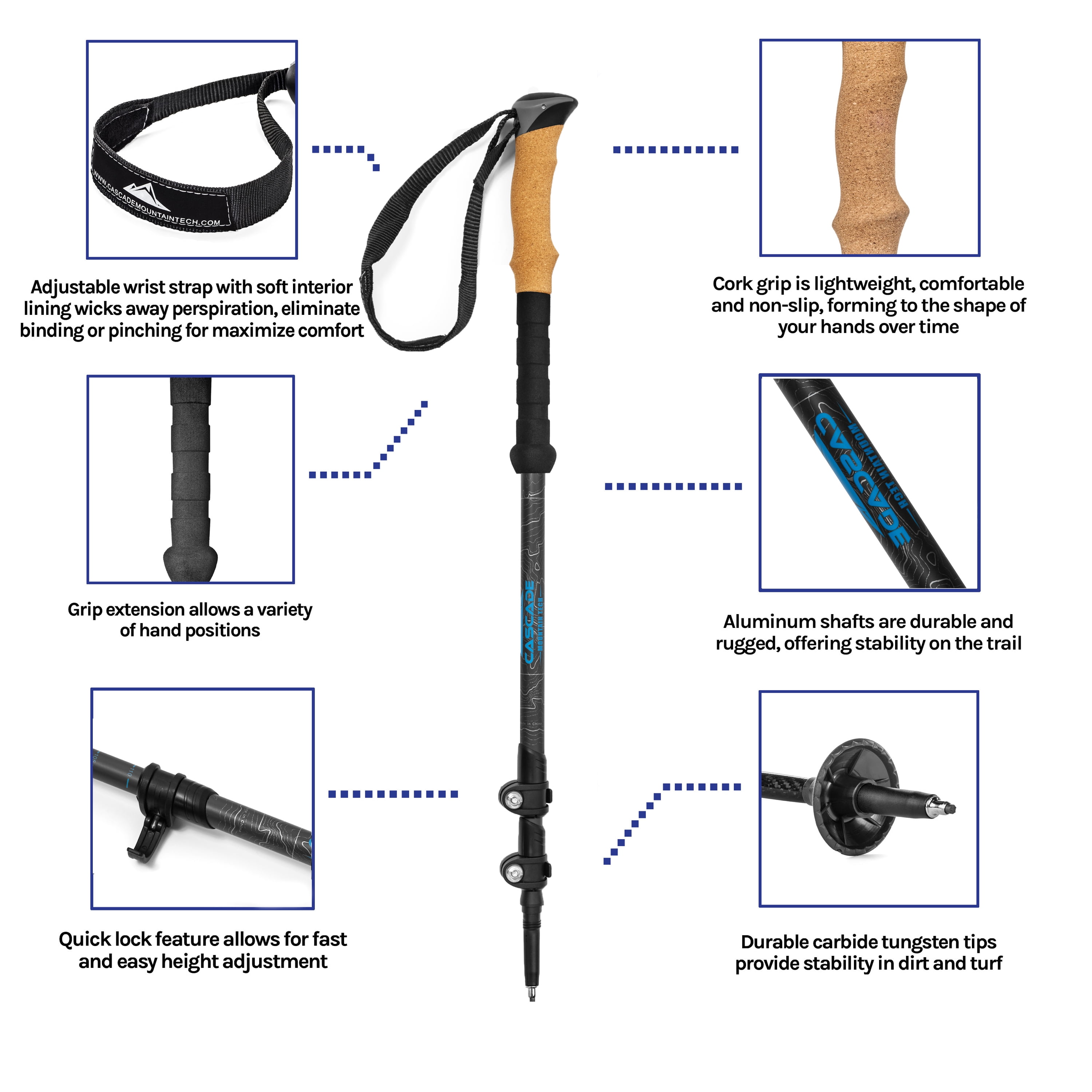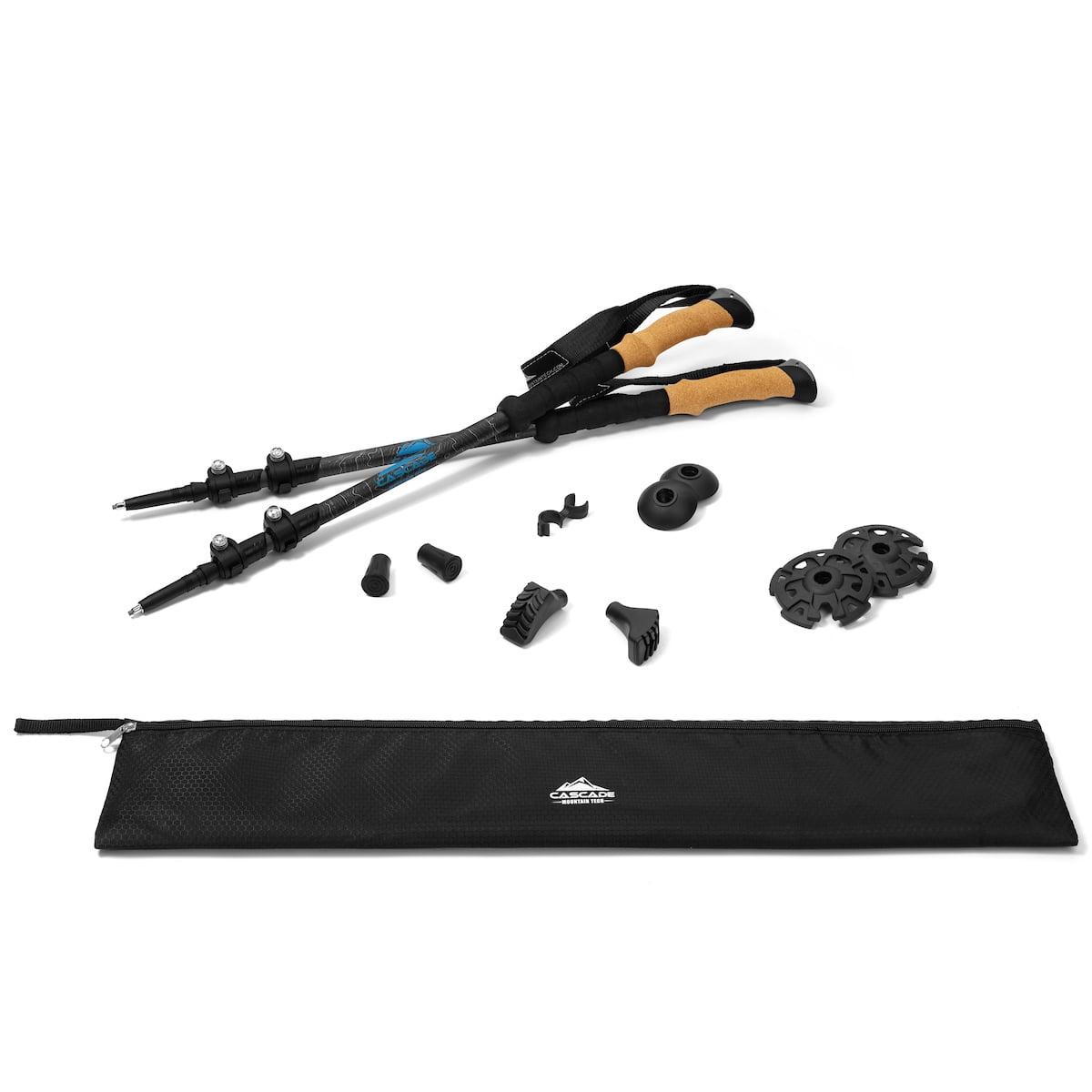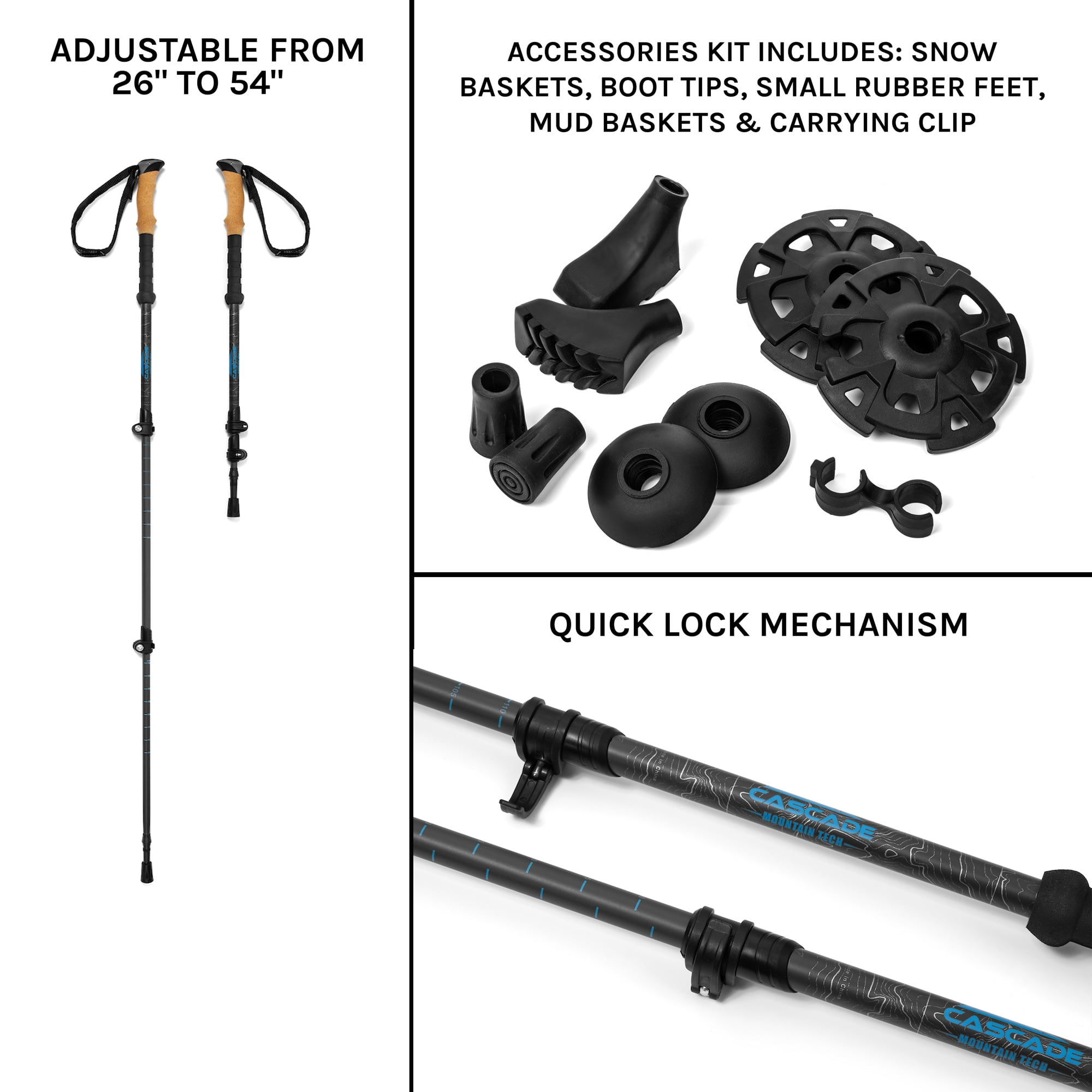 Cascade Mountain Tech Carbon Fiber Quick Lock Cork Grip Trekking Poles – Extendable Length 26″ -54″