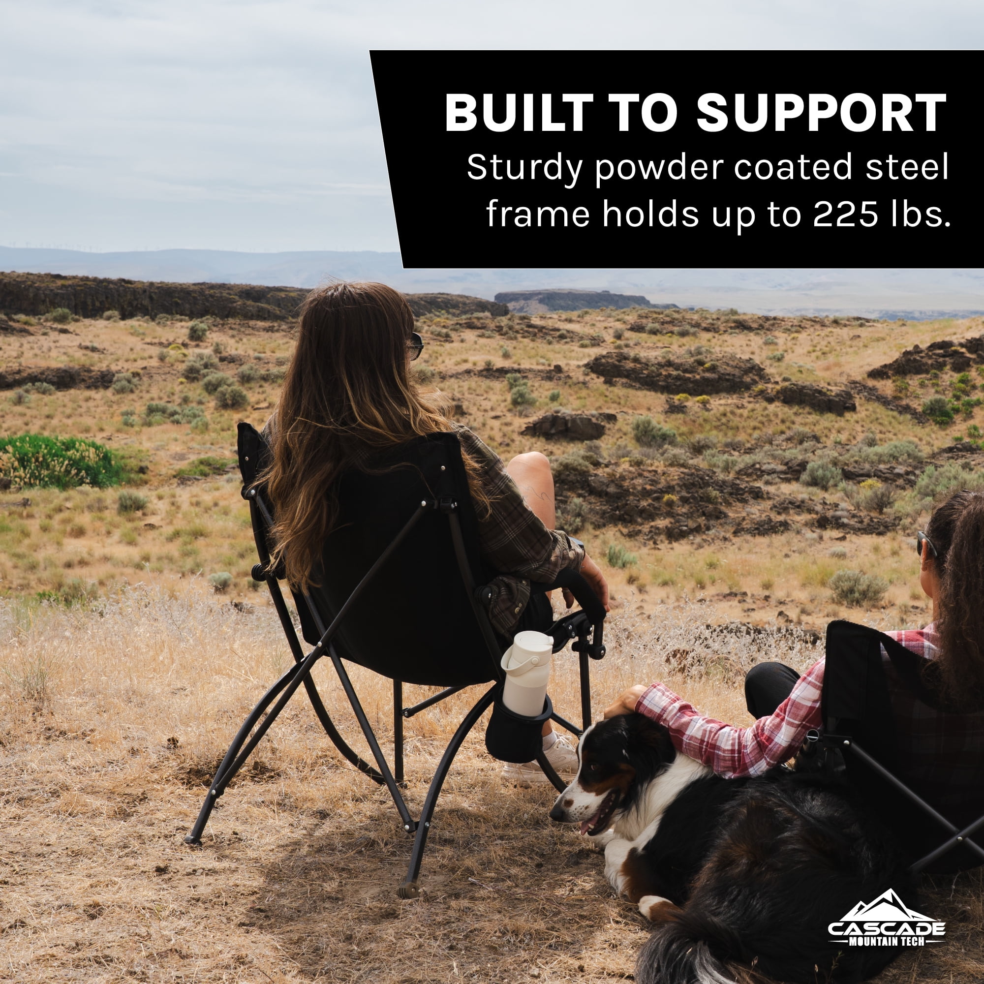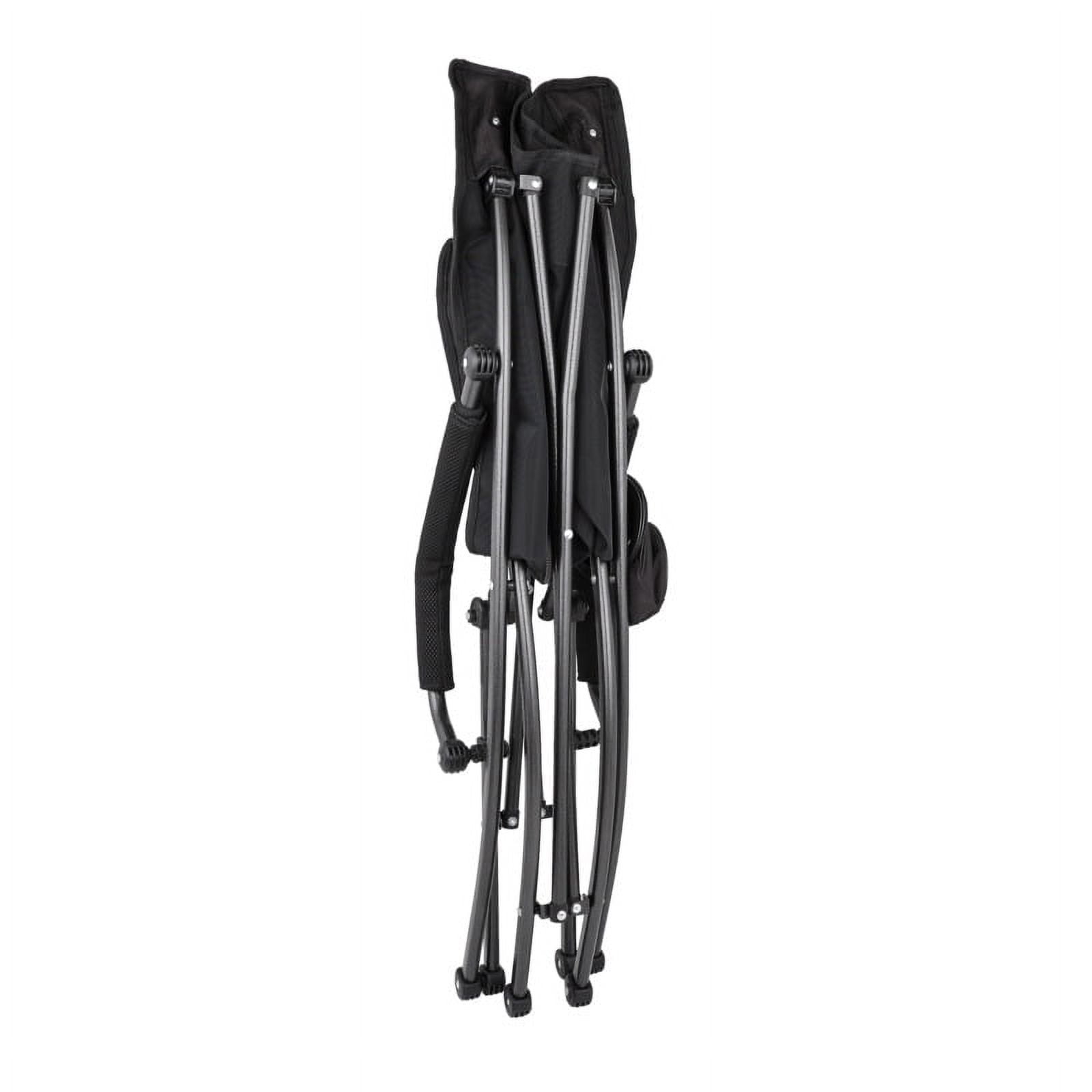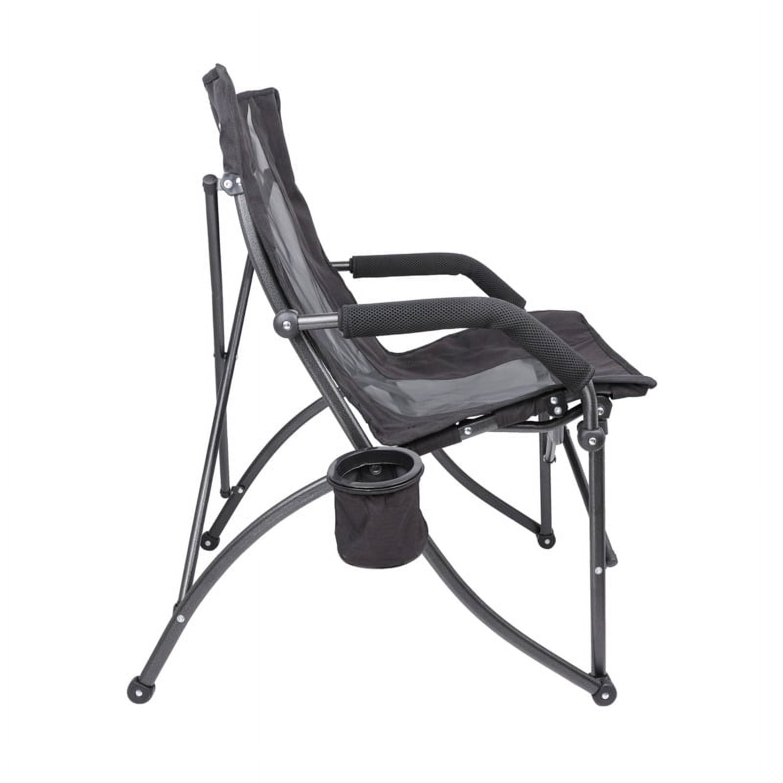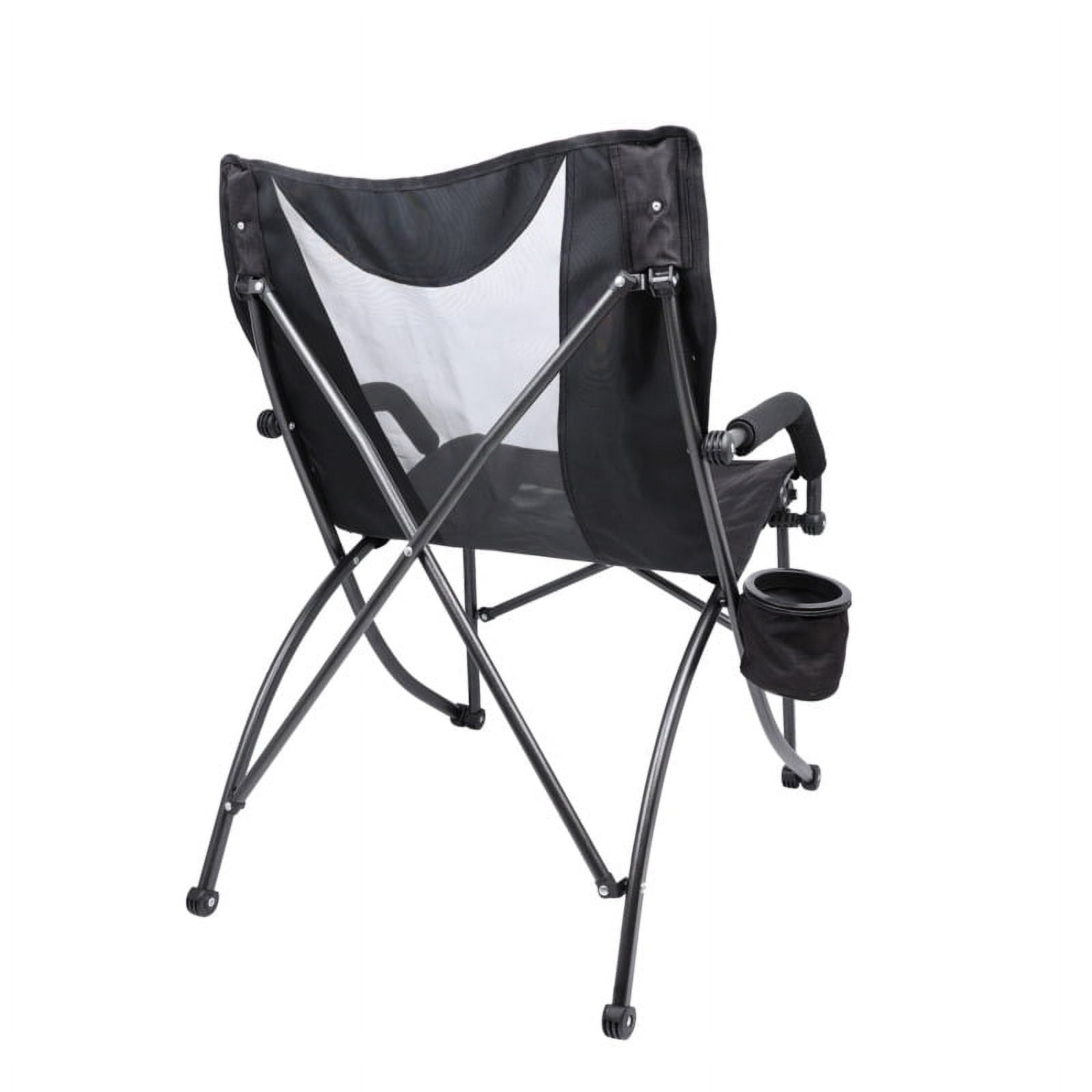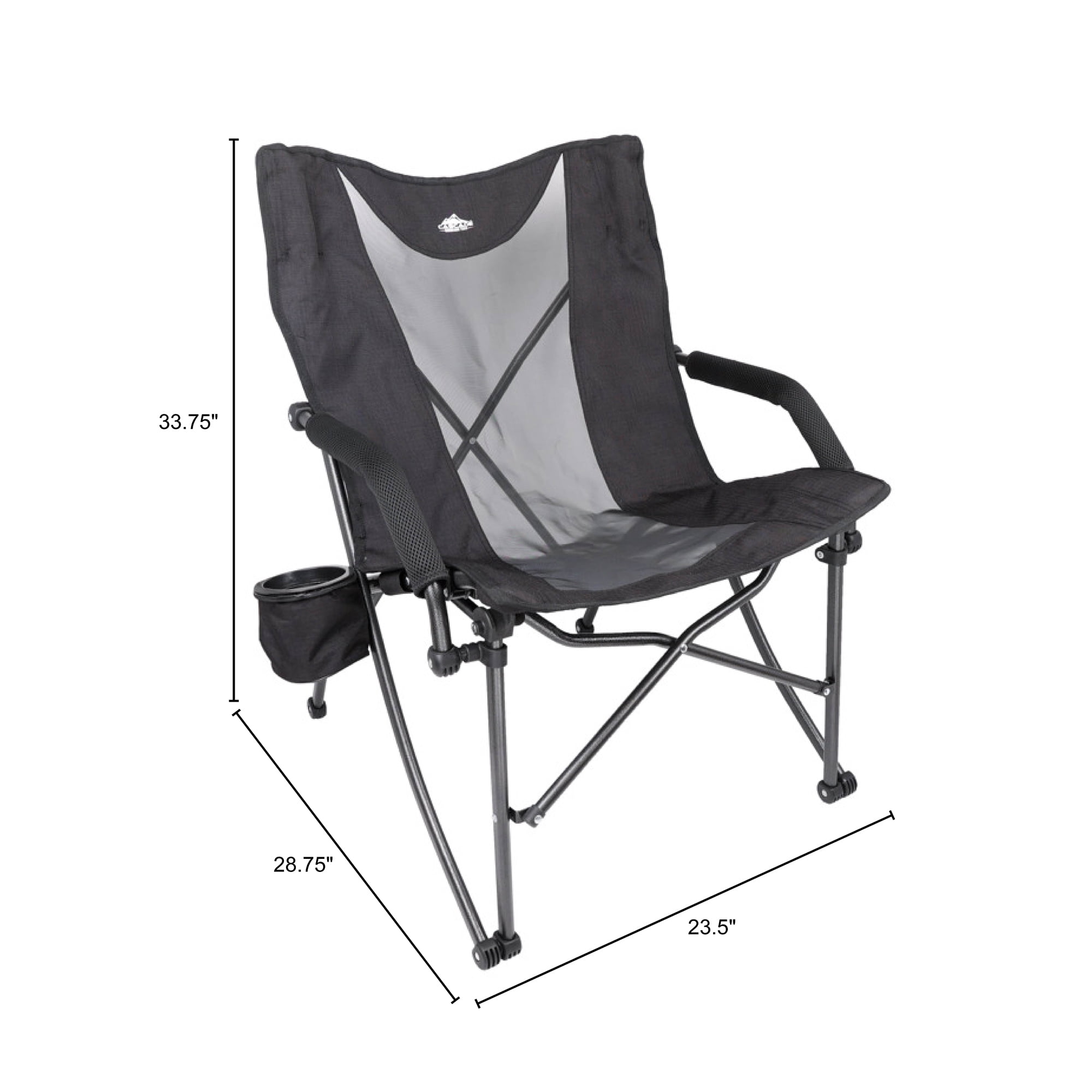 Breathable Mesh Back for enhanced ventilation and comfort during extended periods of use. Durable Ripstop Fabric ensures long-lasting performance and resistance against tears or punctures, providing reliability in various environments. Convenient Cup Holder designed for holding beverages securely, allowing you to stay hydrated without interrupting your activities. Padded Armrests offer added comfort and support, reducing strain on arms and shoulders during prolonged sitting sessions. Sturdy 225 Weight Capacity provides stability. Powder Coated Steel Frame for exceptional durability and corrosion resistance, ensuring the chair remains sturdy and reliable over time. 23.5″ wide, 28.75″ deep, 33.75″ high