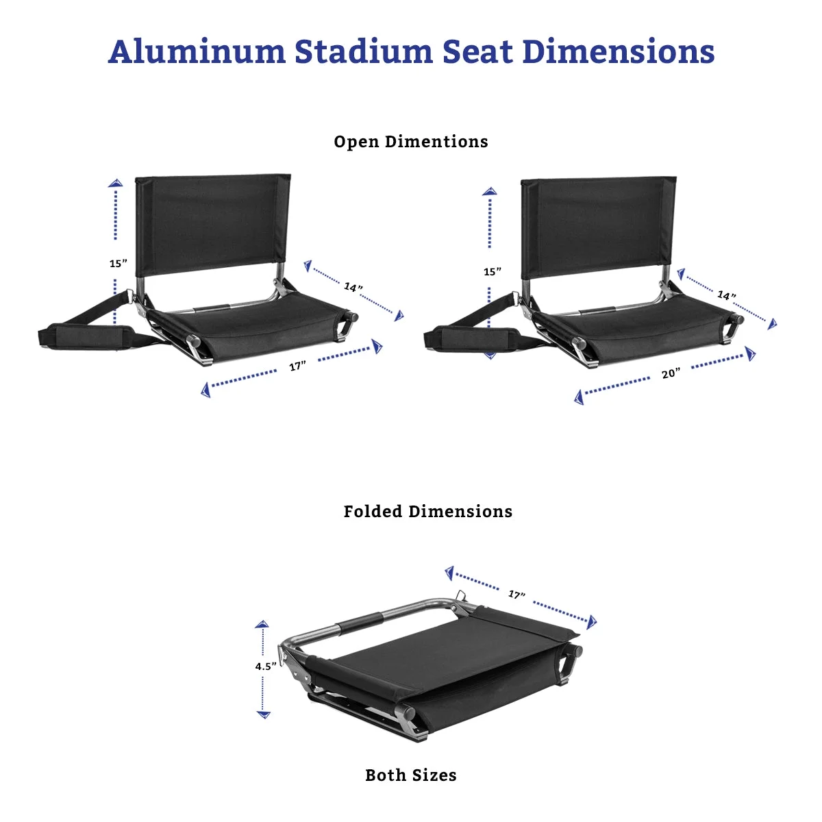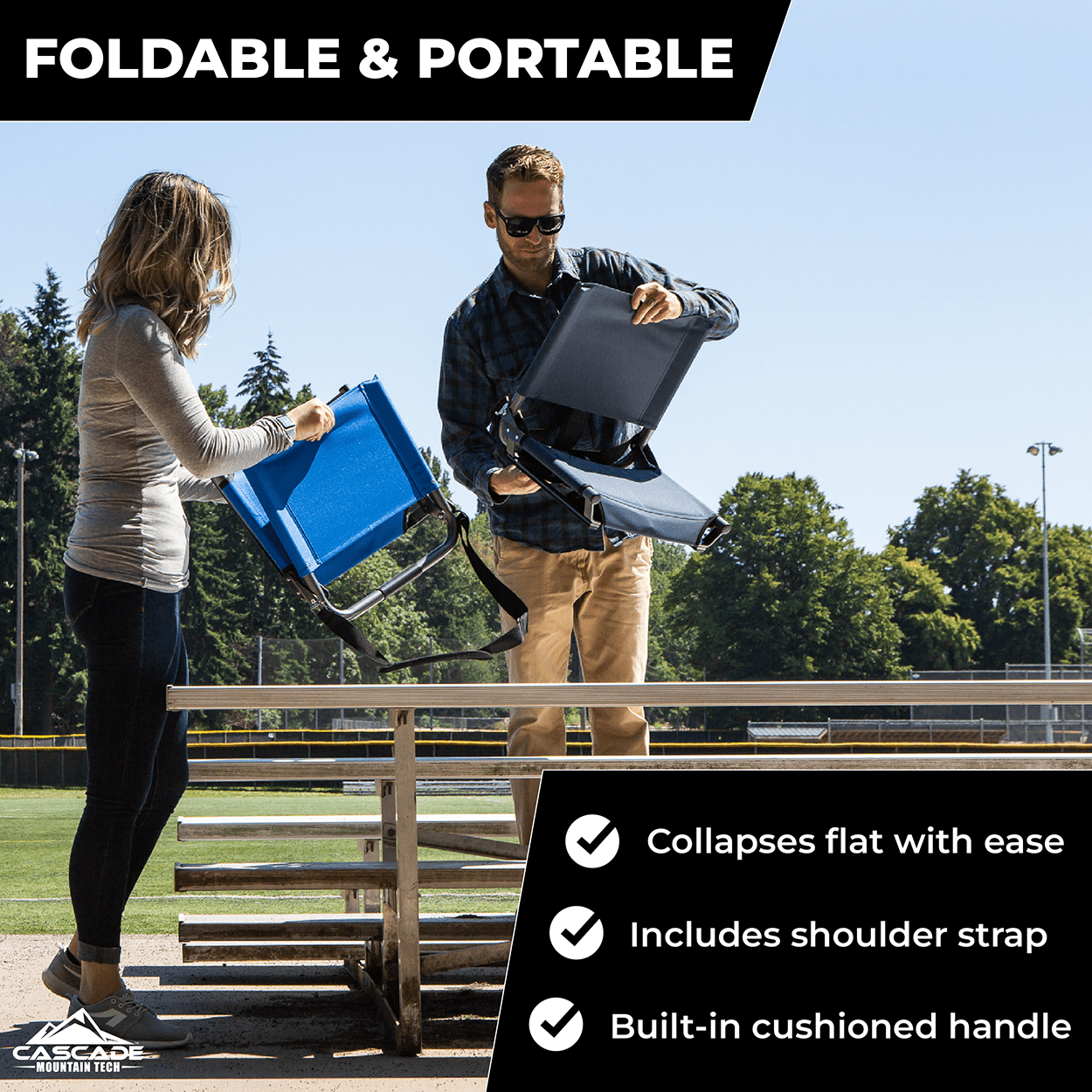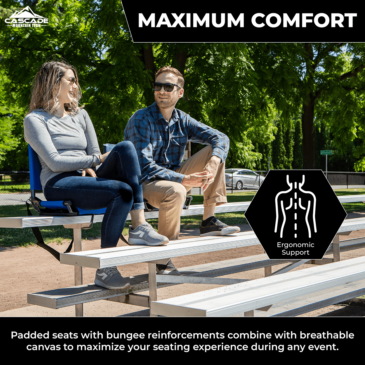 Comfortable Stadium Seat with Back Support: Equipped with a bungee reinforced padded seat that is 17″ wide and 14″ deep for maximum comfort. Features a supportive 15″ high backrest so you can enjoy outdoor and sporting events without a sore back. Sturdy Design: This padded stadium seat is constructed with a durable aluminum frame. Sturdy yet lightweight, this stadium seat for bleachers weighs 5.3 pounds and can accommodate up to 250 pounds. Bleacher Hook for Stability and Safety: The bleacher hook on the bottom of the seat will keep it securely in place to prevent sliding and leaning so you can safely cheer with your family and friends without fear of falling. Water-Resistant Cushions: The perfect outdoor stadium seat with cushions made from durable canvas fabric that provides water resistance for those rainy days and breathability for those scorching summer days. Easy Transport and Compact Storage: Folds down flat for convenient storage and portability. Effortlessly carry this portable stadium seat by utilizing the shoulder strap and built-in cushioned handle. Brand: Cascade Mountain Tech
