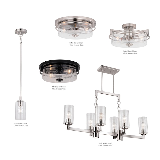 The Addison collection is a sleek, modern approach to lighting with a friendly flair. Flat metal arms finished in satin nickel partnered with cylinders of clear seeded glass bring high style and warmth to any interior space. Whether in your foyer, living or dining space, this collection is exclusively designed with your lighting needs in mind. Combine that with a vintage Edison style filament bulb to complete the look.