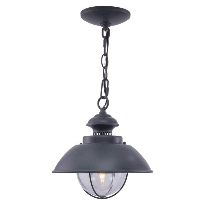 Cascadia Harwich Textured Gray Coastal Seeded Glass Dome Medium Outdoor Hanging Pendant Light