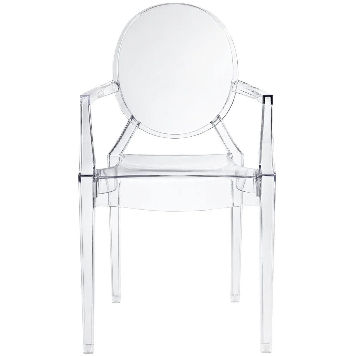 Casper Dining Armchair EEI-121-CLR Combine artistic endeavors into a unified vision of harmony and grace with the ethereal Casper Chair. Allow bursts of creative energy to reach every aspect of your contemporary living space as this masterpiece reinvents your surroundings. Surprisingly sturdy and durable the Casper Chair is appropriate for any room or outdoor setting. Pure perception awaits as shining moments of brilliance turn visual vacuums into realms of transcendence. Set Includes: One – Casper Dining Armchair Specifications: For Indoor/Outdoor Use and No Assembly Required Injection MoldedandStackable Sturdy Polycarbonate and Weight Capacity 331 lbs.