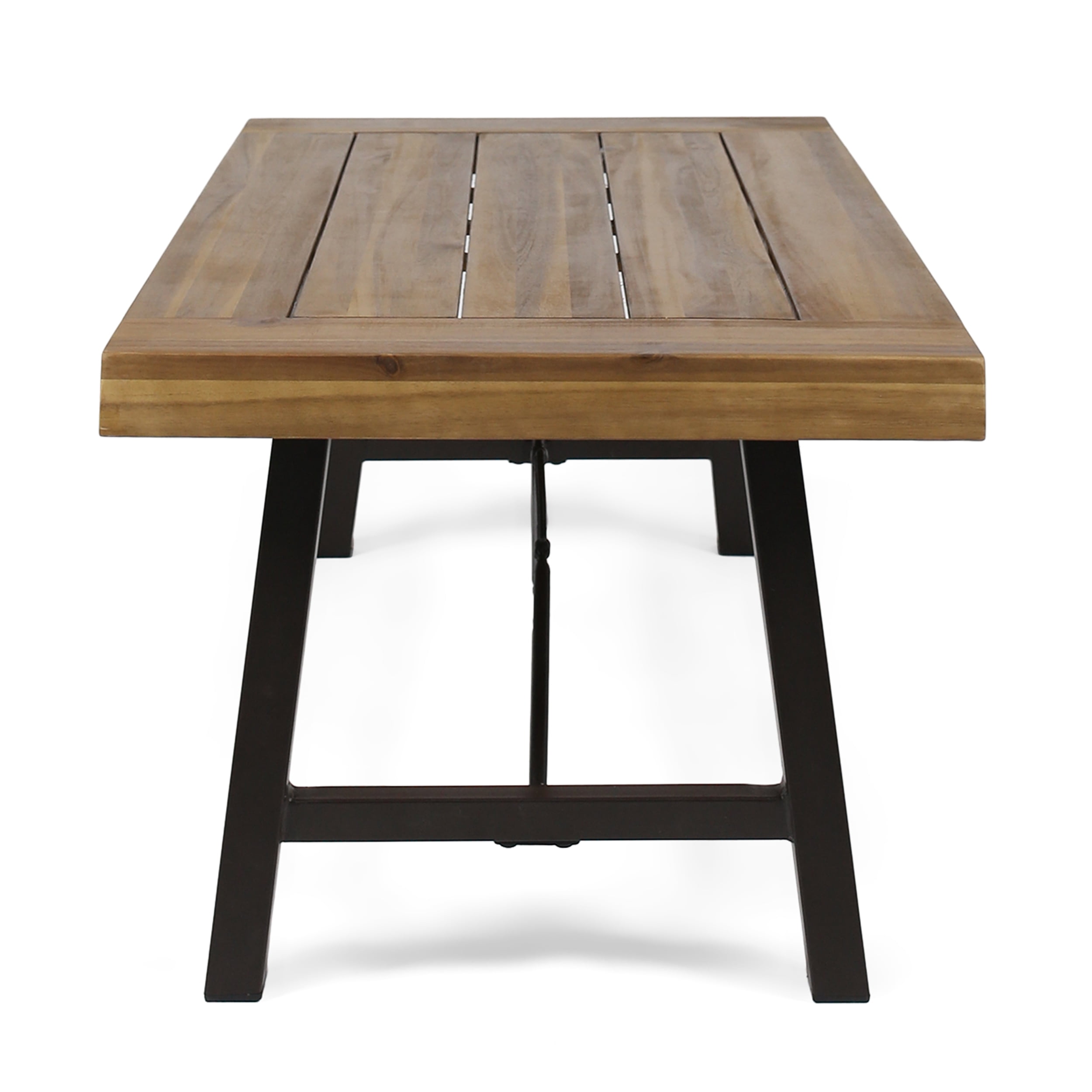 Includes: One (1) Coffee Table Material: Acacia Wood Frame Material: Iron Color: Teak Frame Color: Rustic Metal Assembly Required Dimensions: 24.00 inches deep x 45.75 inches wide x 18.00 inches high Weight Capacity: 300 lbs