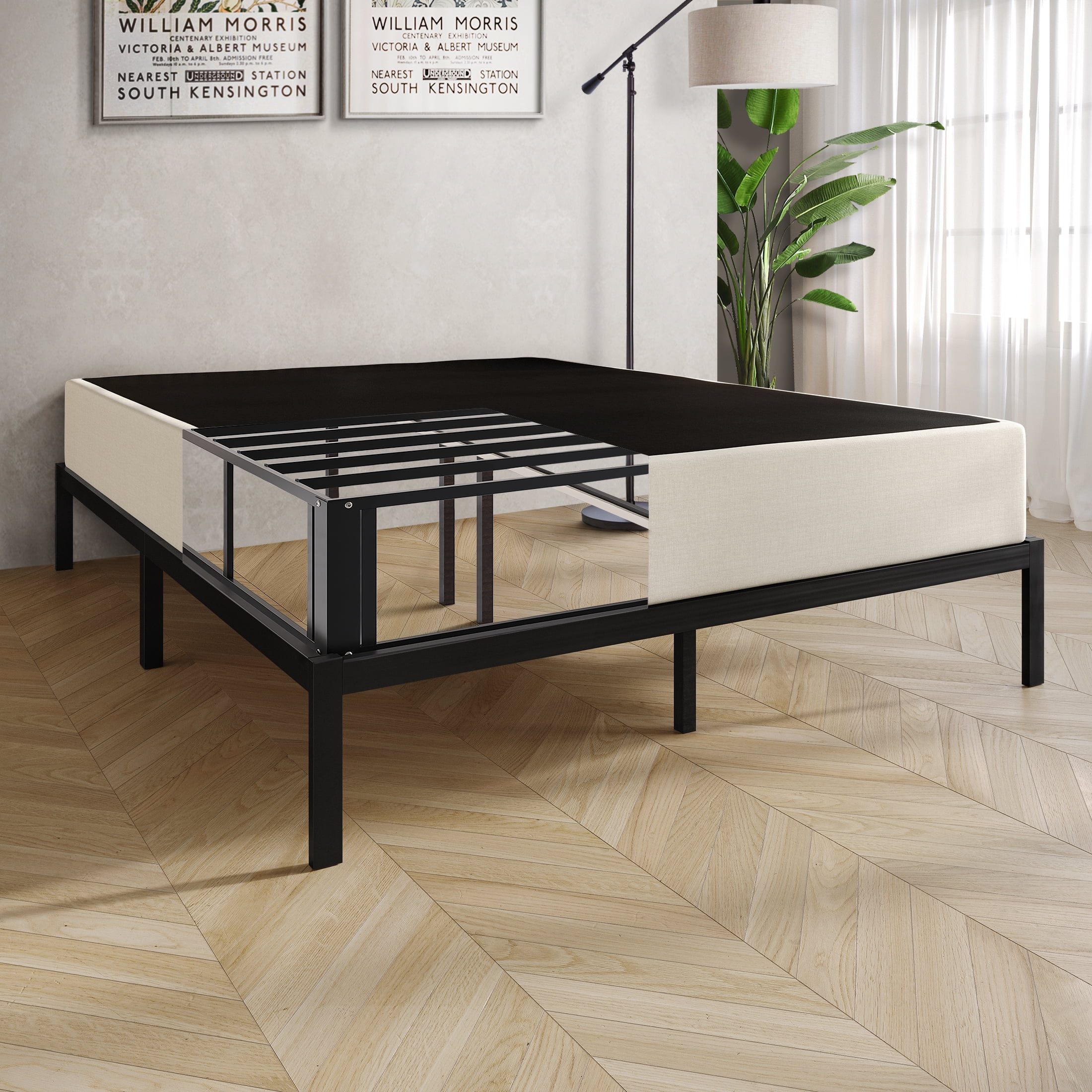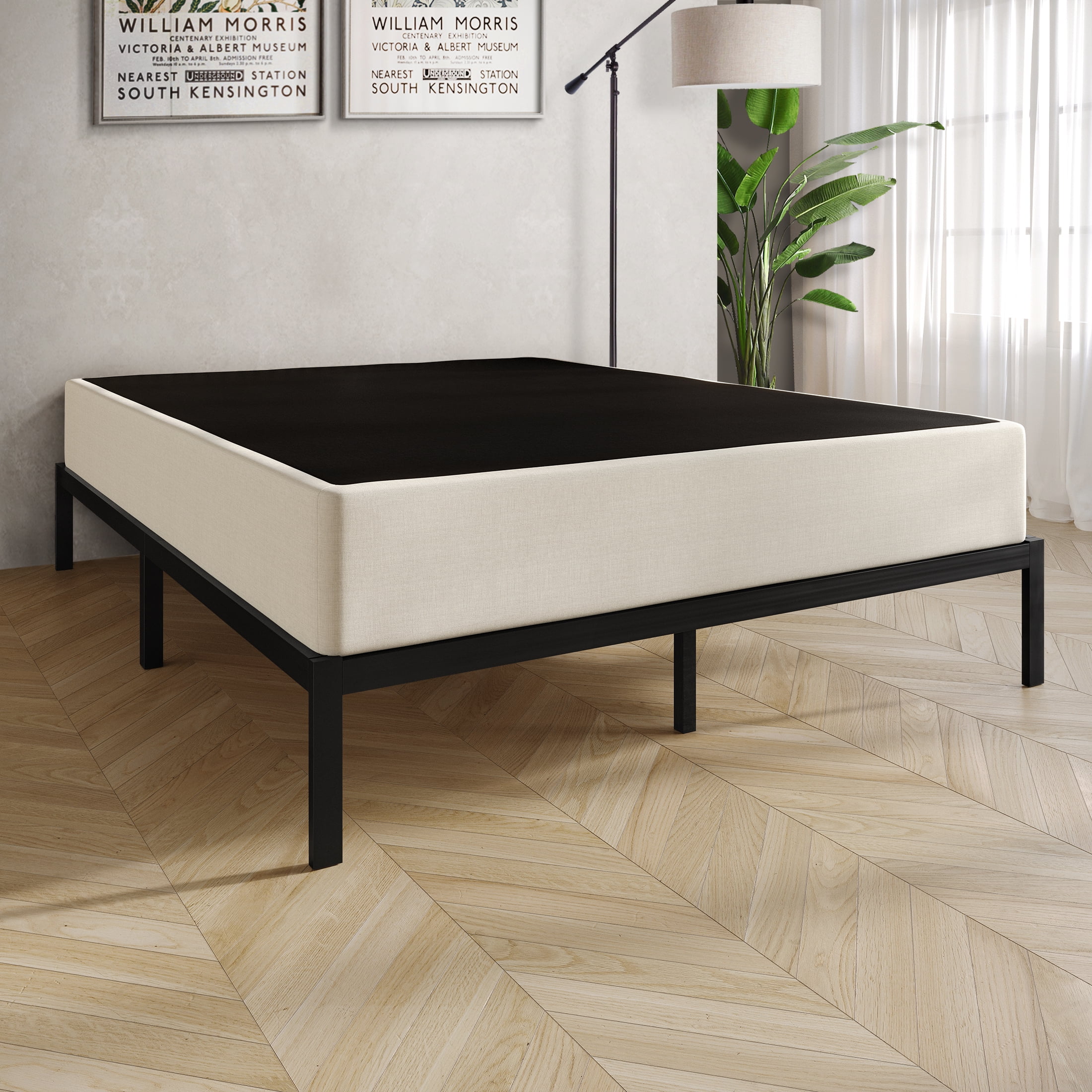 Box spring with heavy duty metal slat for durability and increased mattress life Mattress Required, Sold Separately Made of durable reinforced steel, provide strong support for all type of mattress Available in size: Twin, Full, Queen and King Noise free and non-slip design Available in warm grey linen fabric cover and black linen fabric cover Easy assembly box spring Additional strengthen on the vertical support Ship in one box