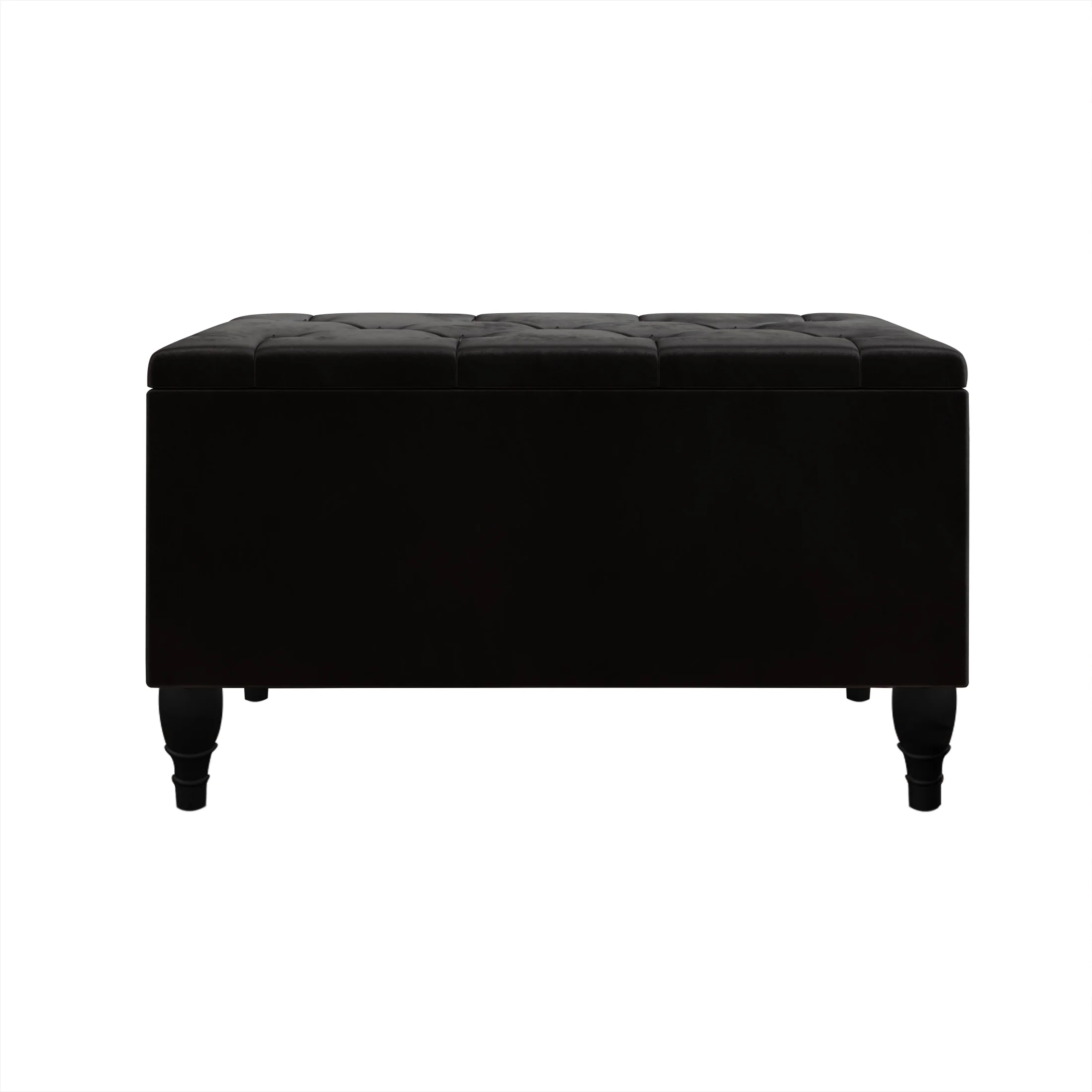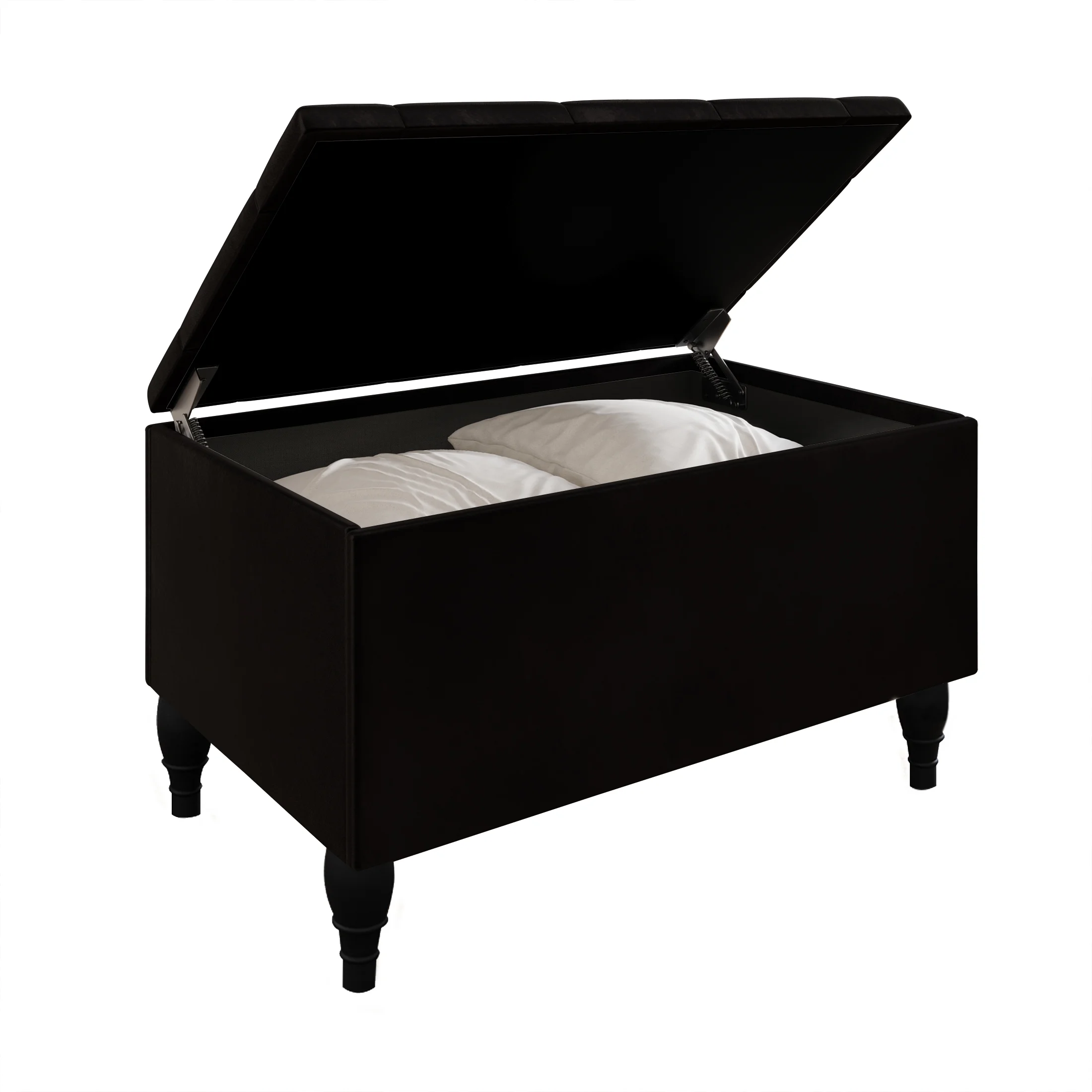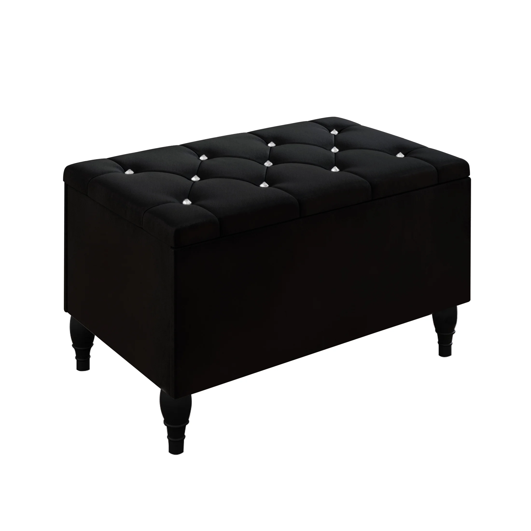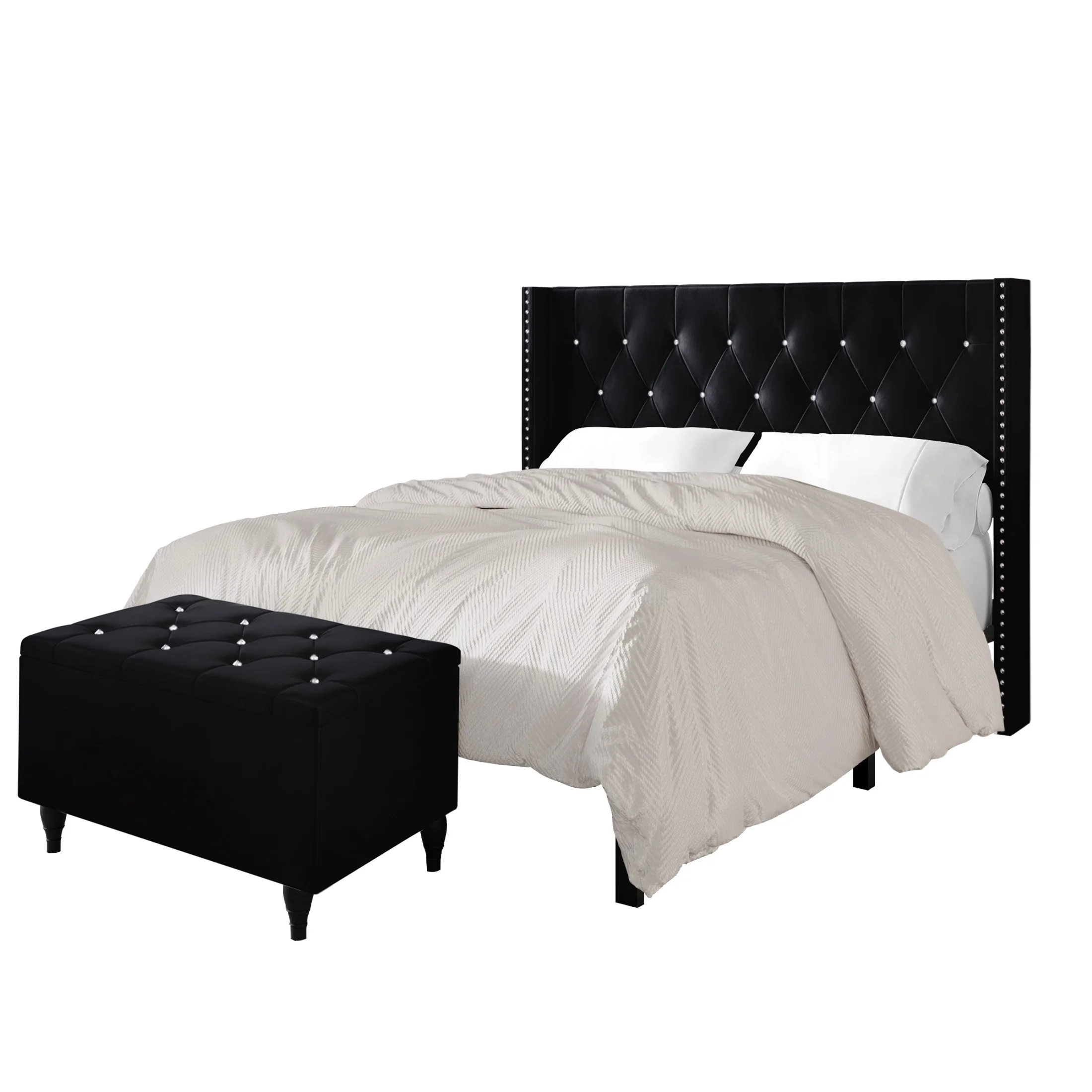 Castle Place Button Tufted Wingback Velvet Upholstered Bed with Storage Bench, Black, Full