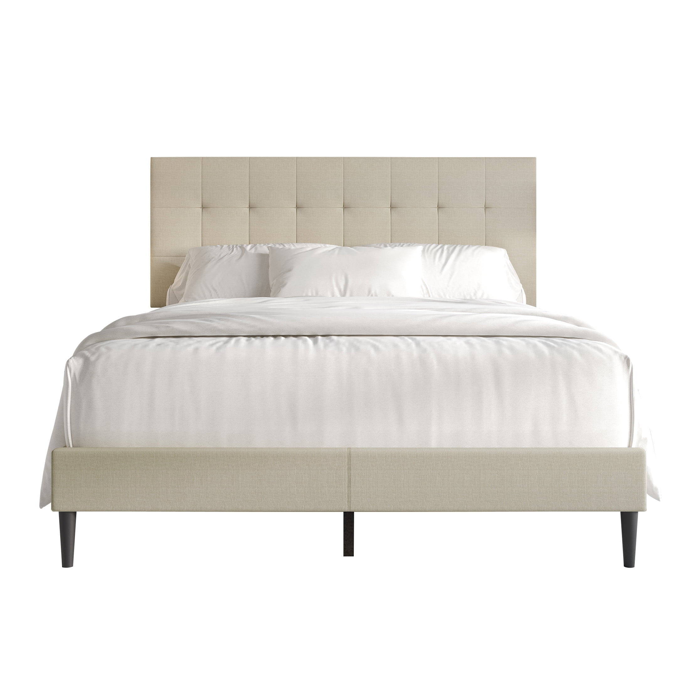 Castle Place Classic Linen Upholstered Queen Platform Bed, Beige