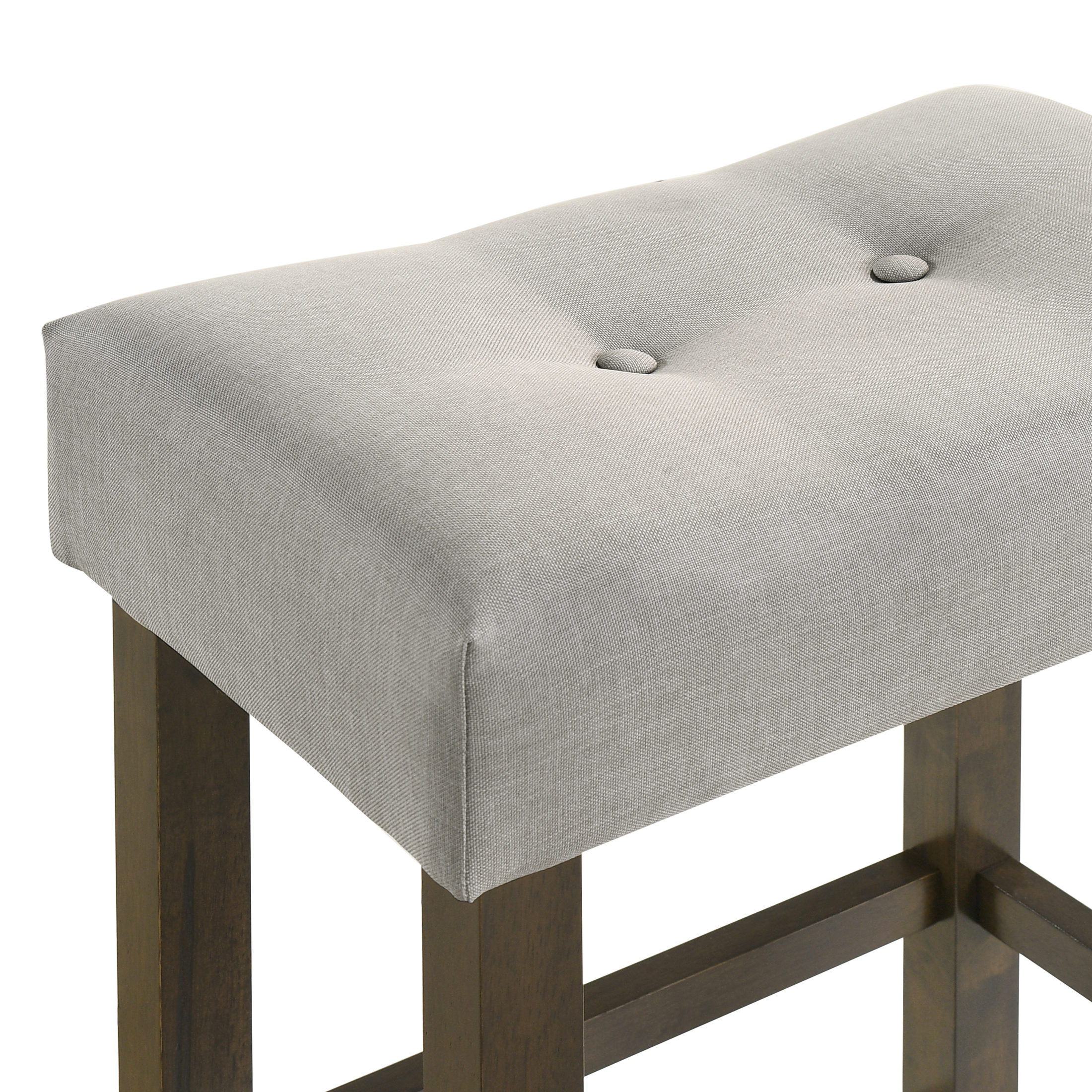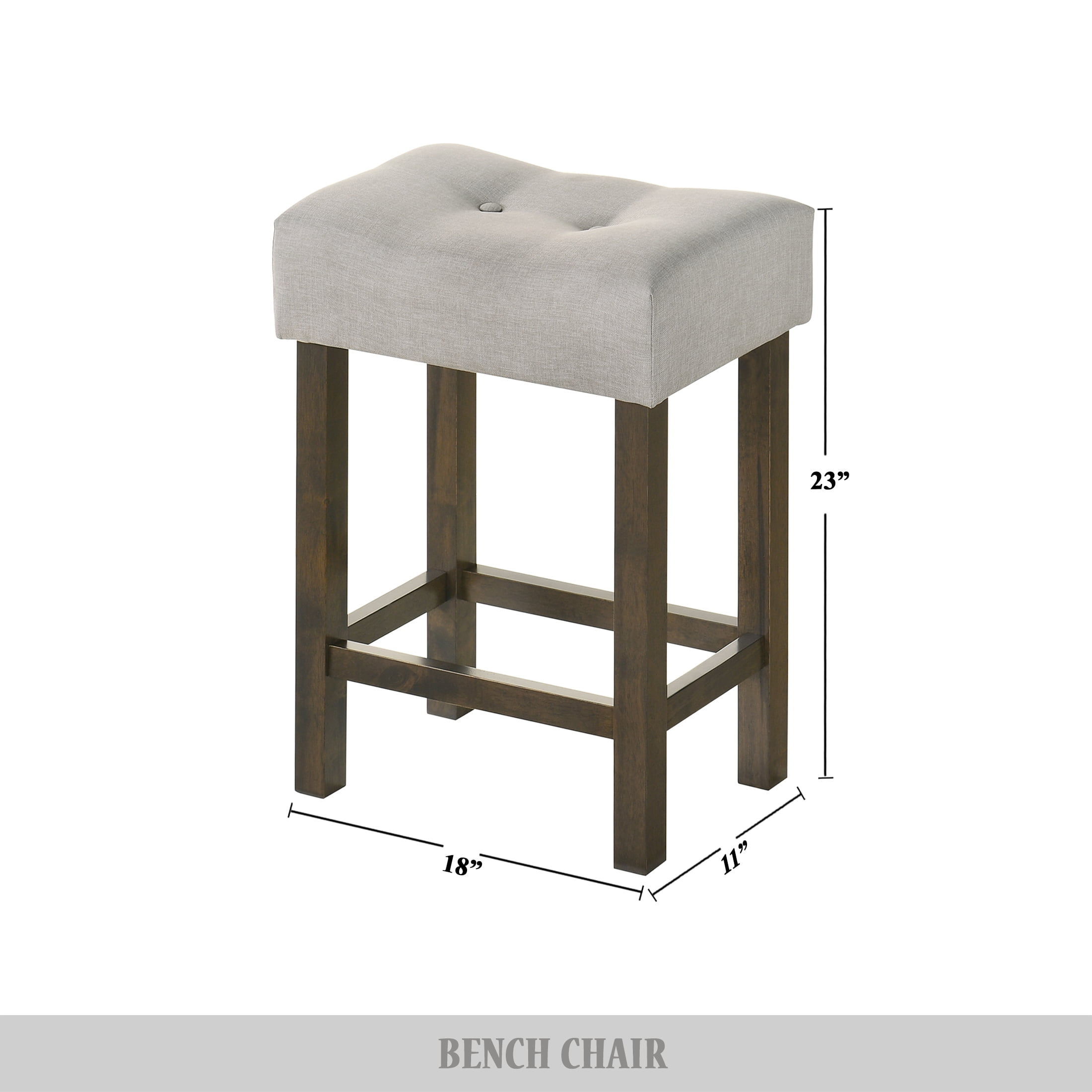 Castle Place Classic Wood Counter Height 3-Piece Dining Table Set, Dark Grey Wood-veneered MDF table top paired with solid rubber wood sturdy legs for enhanced durability Button tufted design on cushion top adds a touch of elegance Upholstered bench chair seats in warm grey linen fabric, padded with foam for comfort Compact design ideal for smaller spaces Bench chairs conveniently tuck under the table for easy storage, maximizing space