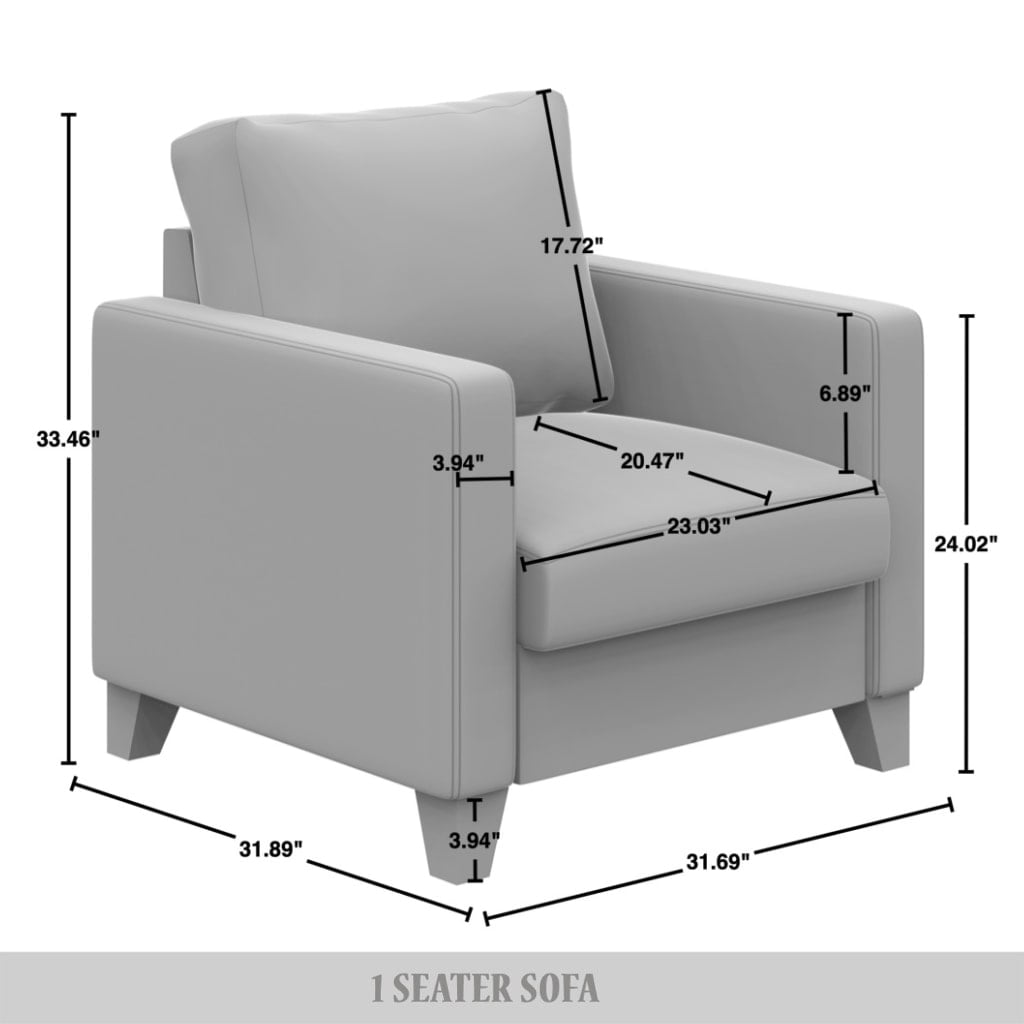 Transform your home with our exquisite chair, a perfect blend of luxury and comfort. The chair’s velvet corduroy upholstery with an elegant pleated design makes a striking addition to any room. High-density foam on the back cushion and seat ensures maximum comfort. It’s supported by four durable plastic legs, offering stability and a stylish look. Square armrests add a contemporary edge and comfortable support. Available in light blue, grey, red, black, brown, and champagne, this single-seater matches any d??cor effortlessly. Assembly is a breeze with the provided instructions, and it’s shipped in a single box for convenience. Specifications: – Chair: 31.91L x 31.72W x 33.49H