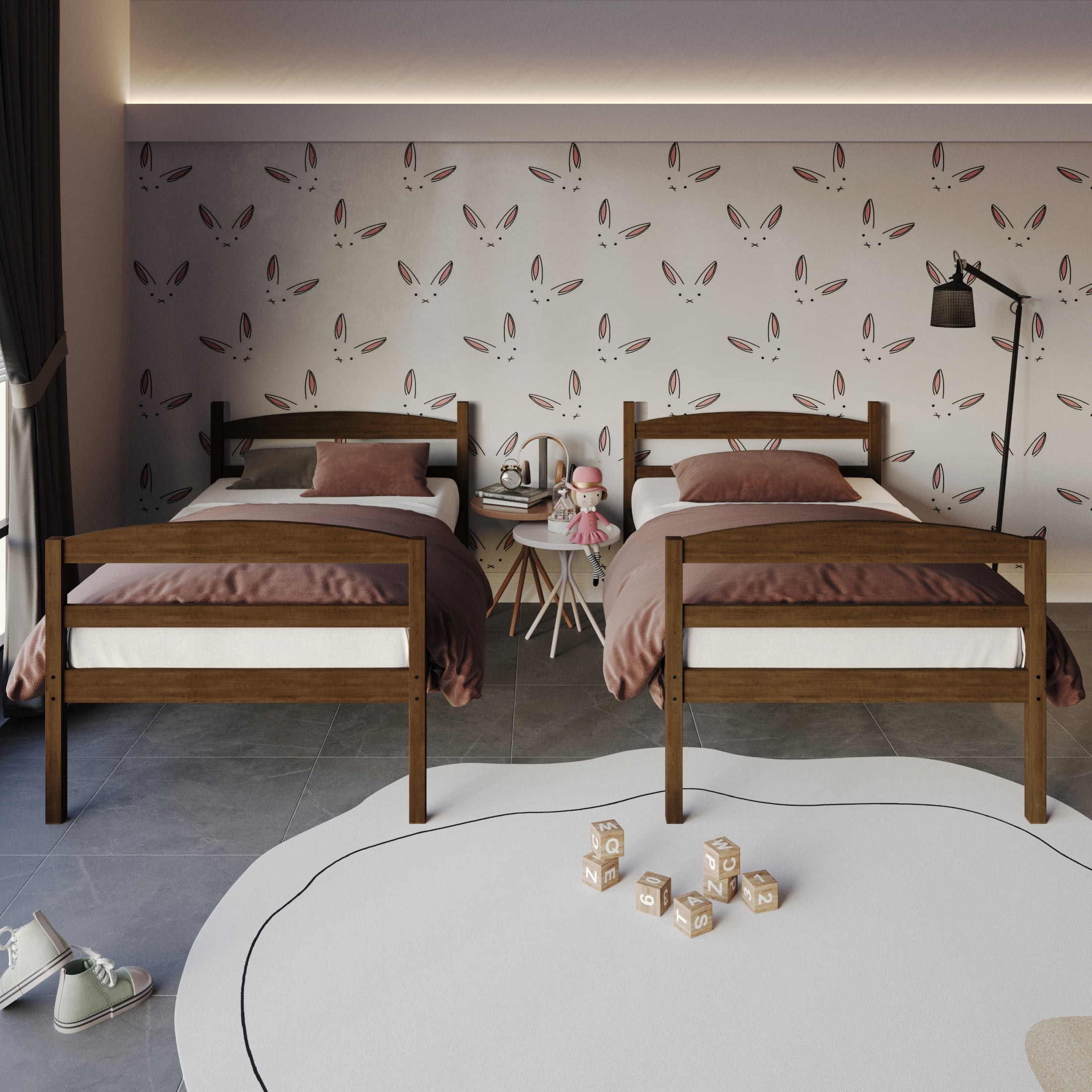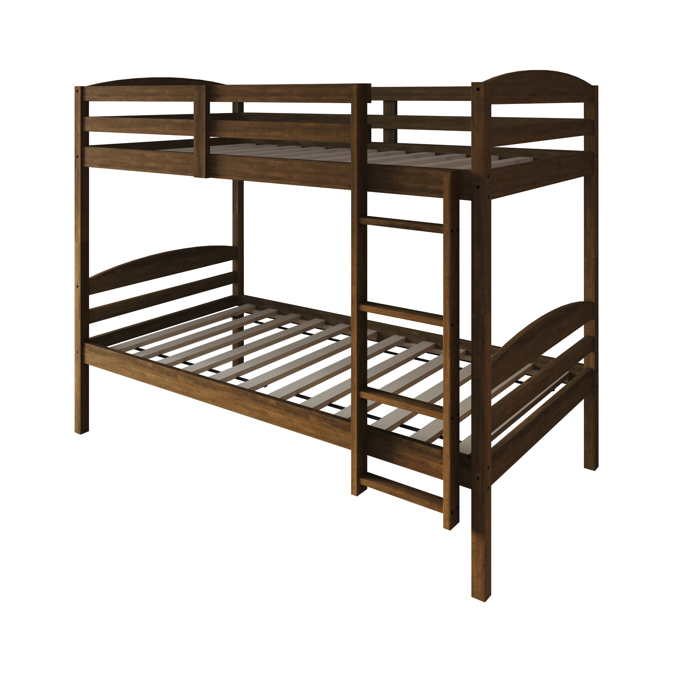 Castle Place Contemporary Twin over Twin Wooden Convertible Bunk Bed, Walnut