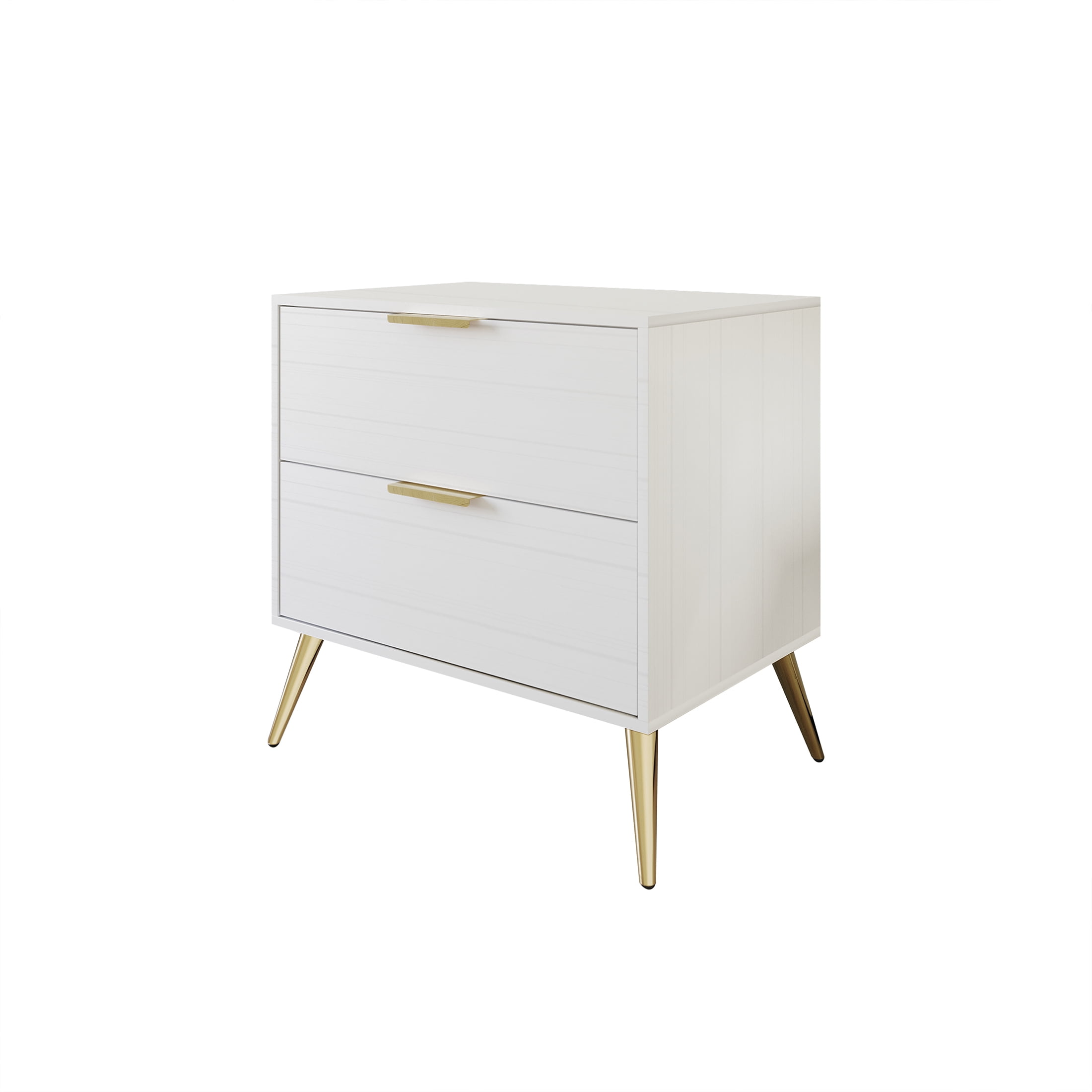 Castle Place Glam 2 Drawers Wooden Nightstand, Whte