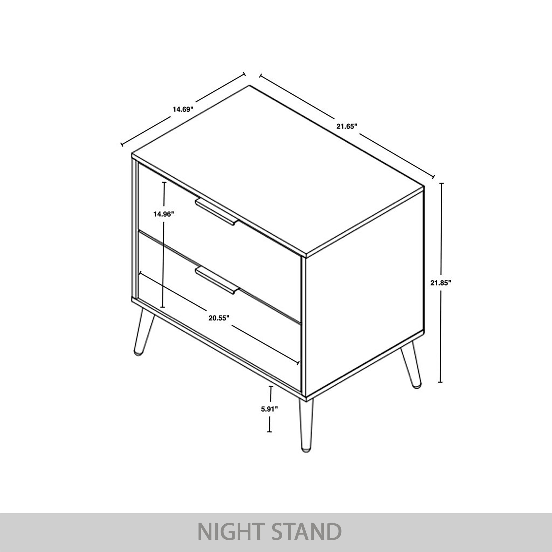 2-drawers with pre-assembly drawer metal slides Supported by four sturdy golden metal legs adds durability and stability. Timeless and evergreen in style, the furniture is adorned with classic gold drawer handles. Made of solid and engineered wood Spacious top to place any bedroom essentials such as table lamp and others. Easy care and clean, require less maintenance