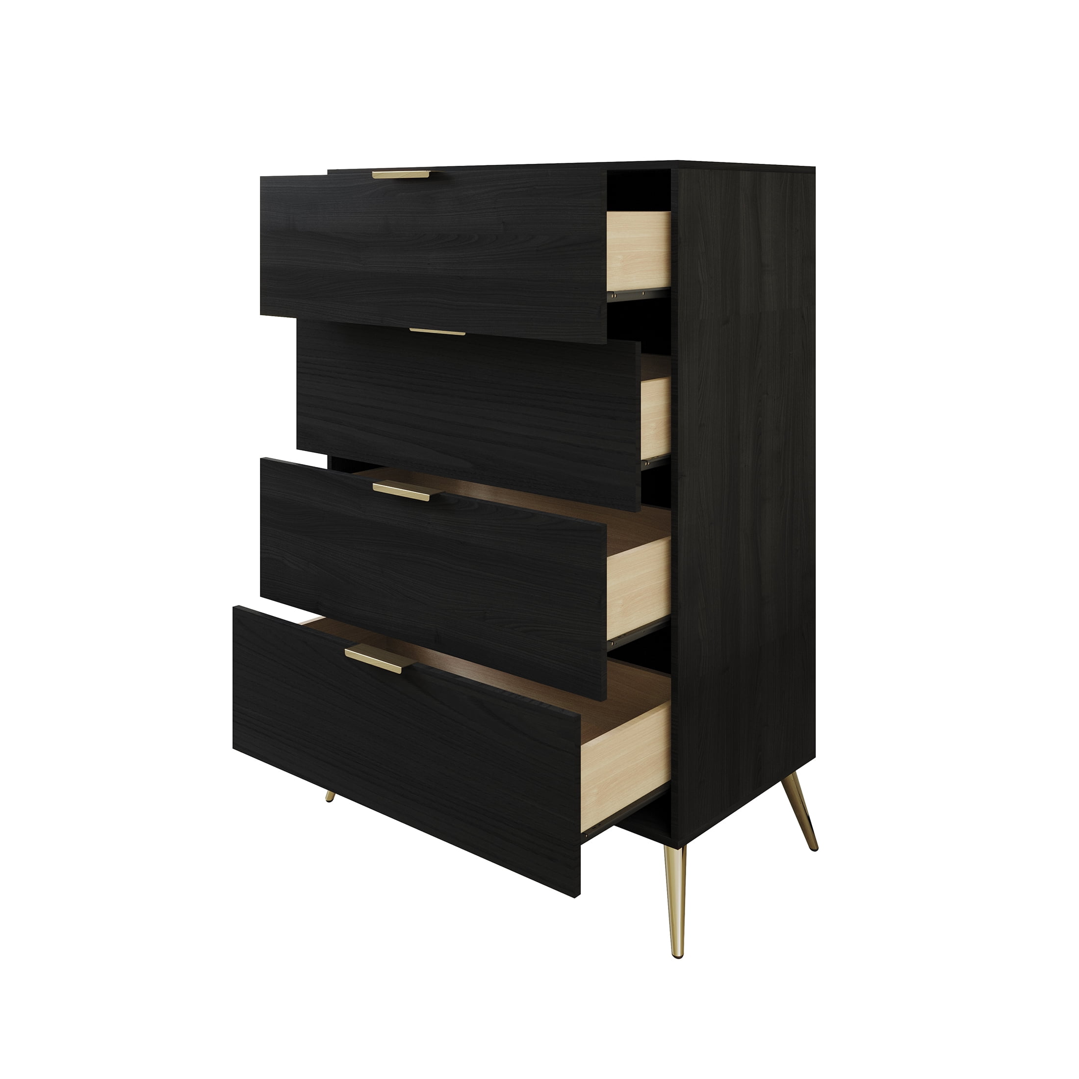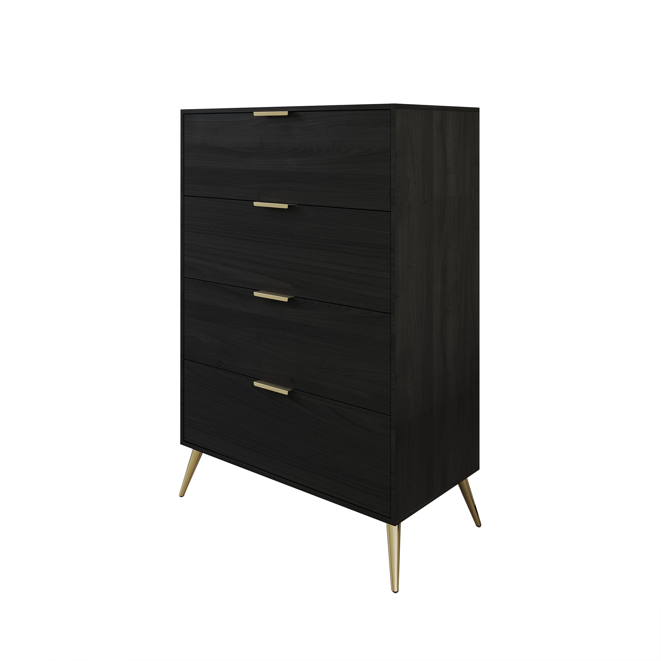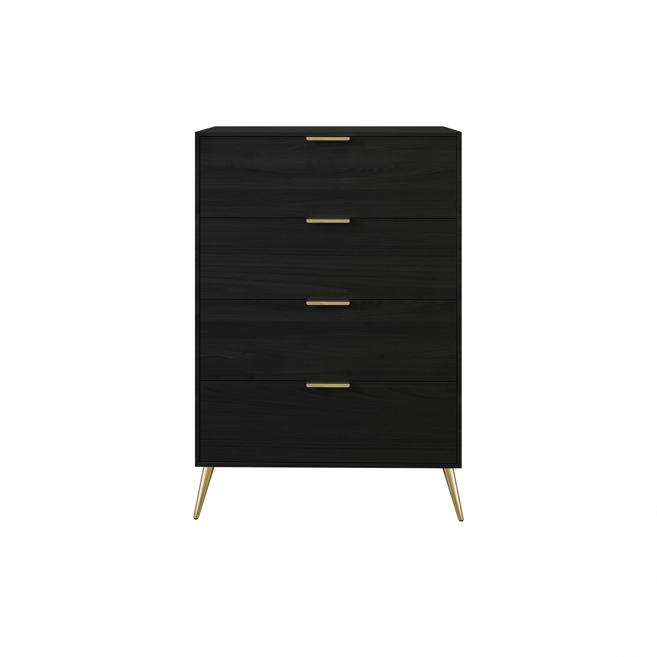 Featuring four tiers of wooden drawers equipped with pre-assembled metal slides. Enhanced by four elegantly golden metal legs, ensuring both stability and long-lasting durability. Timeless and evergreen in style, the furniture is adorned with classic gold drawer handles. Constructed from a combination of solid wood and engineered wood. The generously spacious drawers effectively concealing clutter for a neat and organized look. Easy to assembly with sorting hardware pack and assembly instructions
