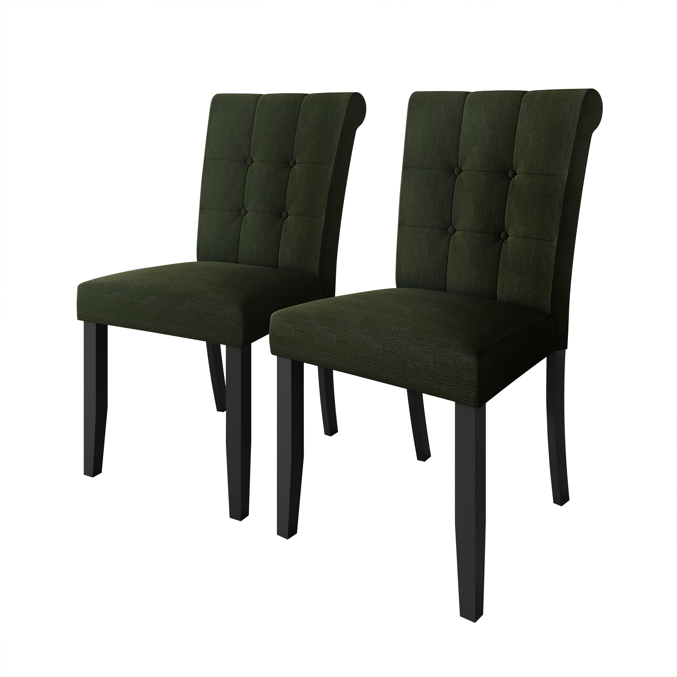 Castle Place Mid-Century Button Tufted Wooden Dining Chairs, Green, Set of 2