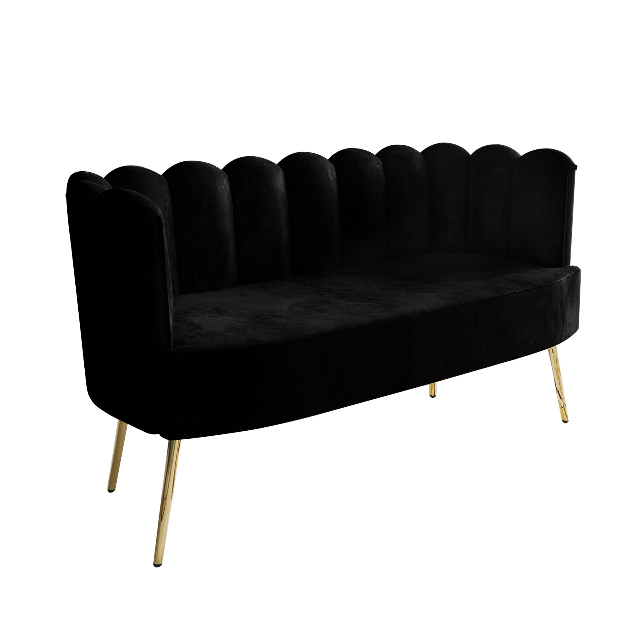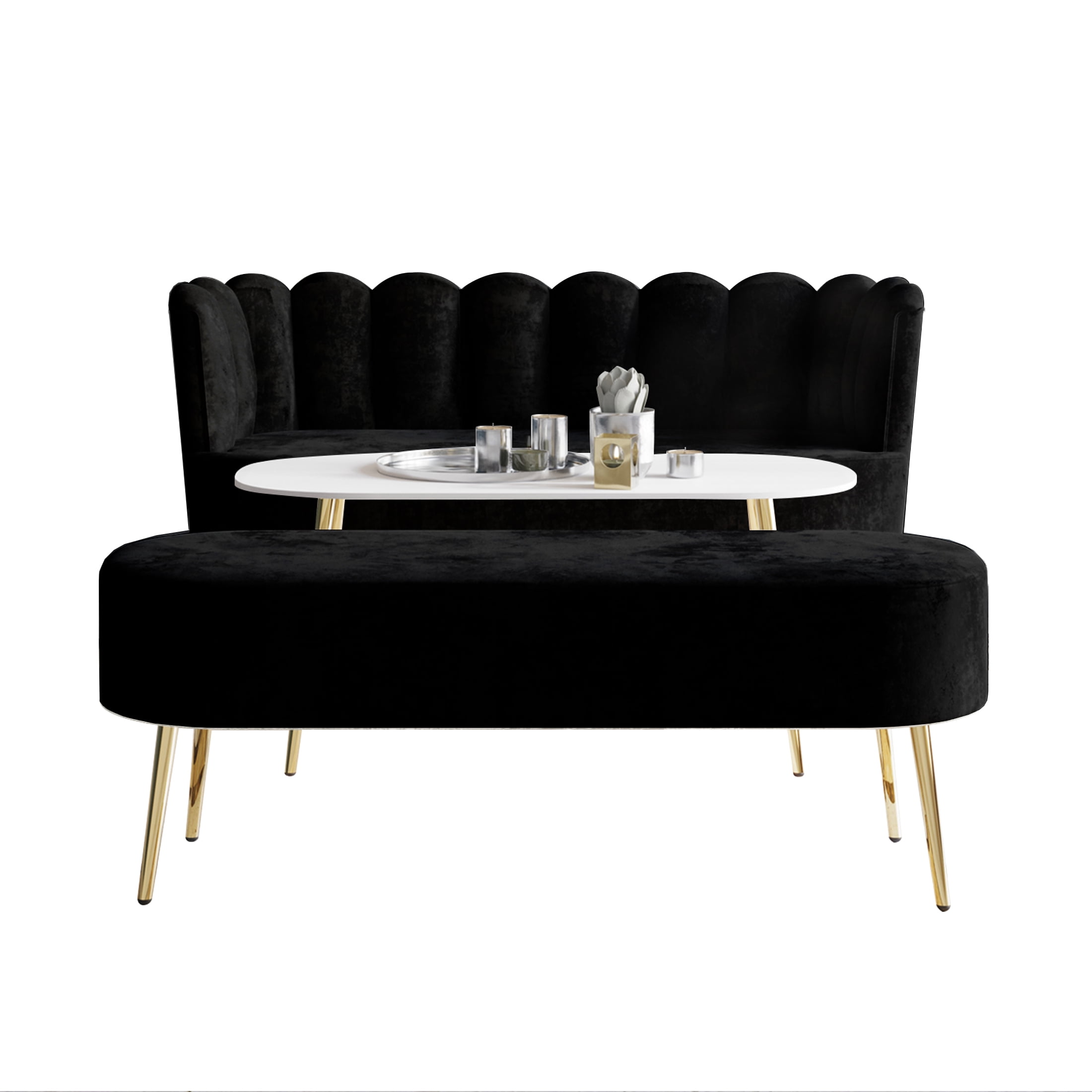 Castle Place Modern Luxury Upholstered Velvet Love Seat with Bench and Coffee Table, Black