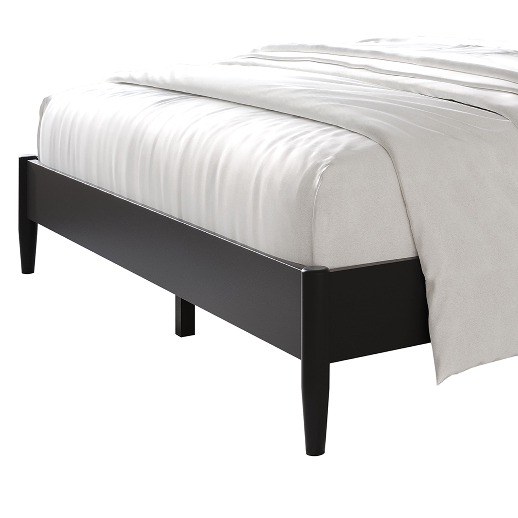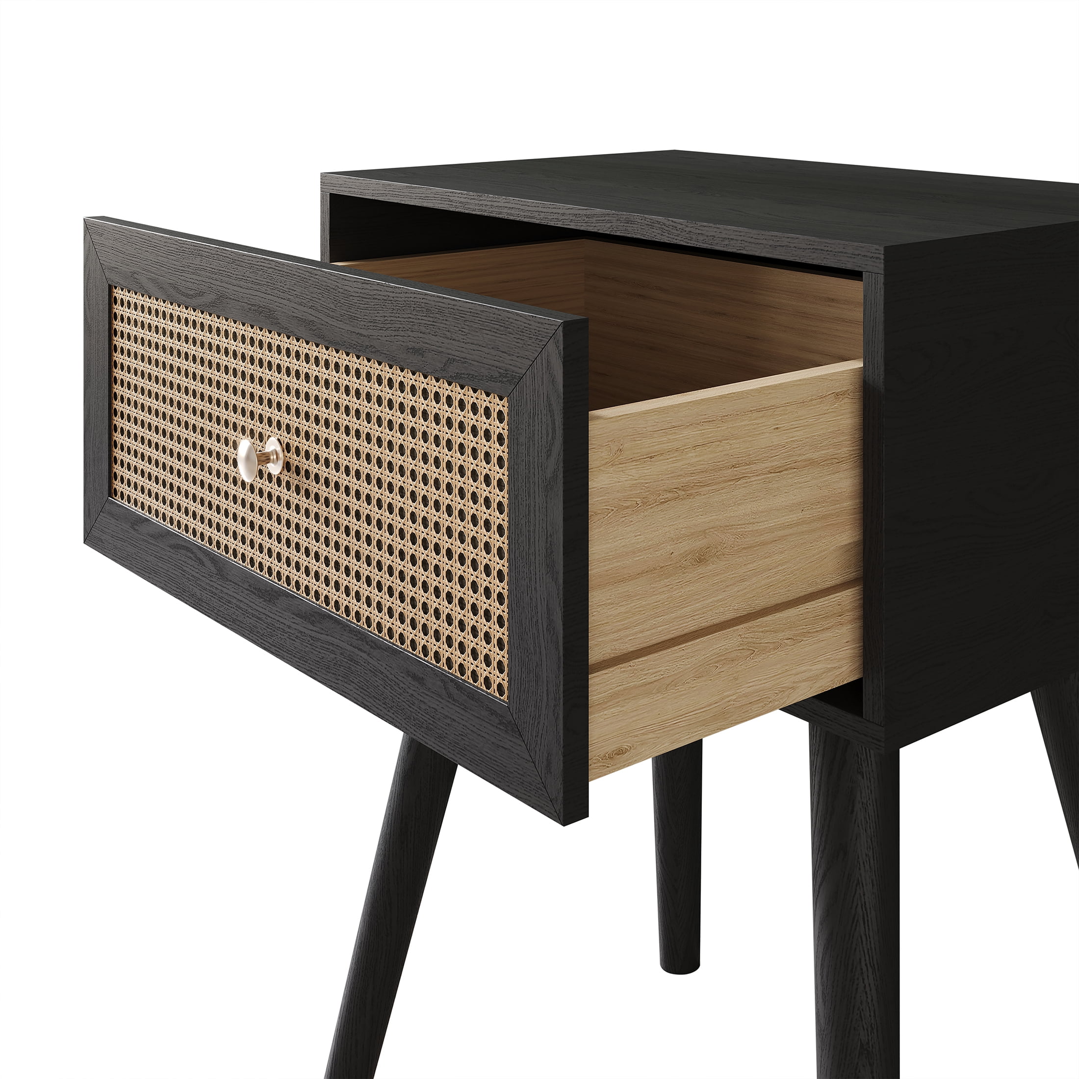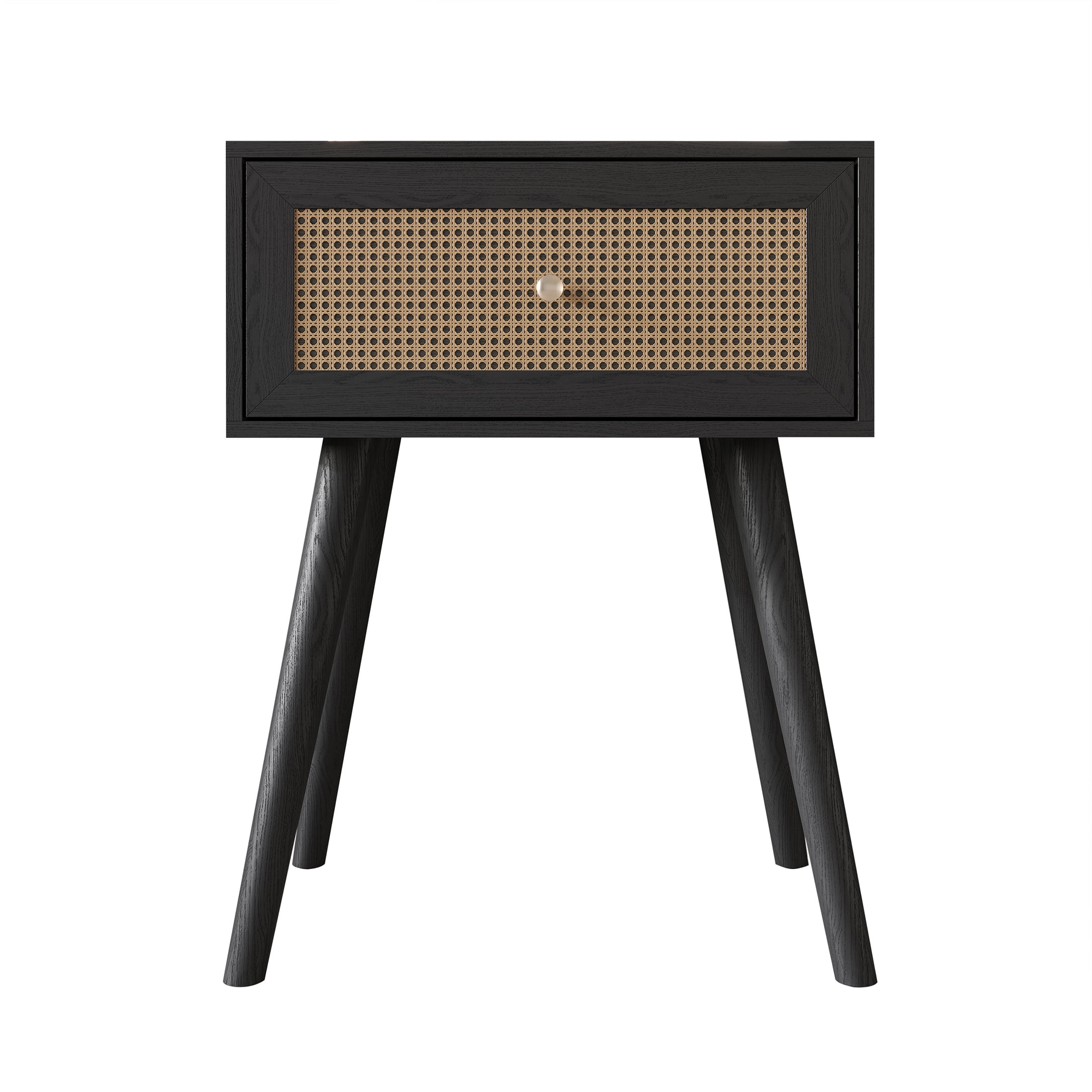 Set included 1 bed and 2 matching nightstands Bed and nightstand in black color with a coffee cane panel in the center for a sleek design The headboard with curved ends and a central coffee cane design exudes stylish elegance Made from solid rubberwood and MDF wood frame With four center support legs for Full/Queen sizes; Eight center support legs for King size Slat kit is included, box spring not required Available in Full, Queen, King sizes Easy assembly is required, and clear assembly instructions are provided Ship in one box