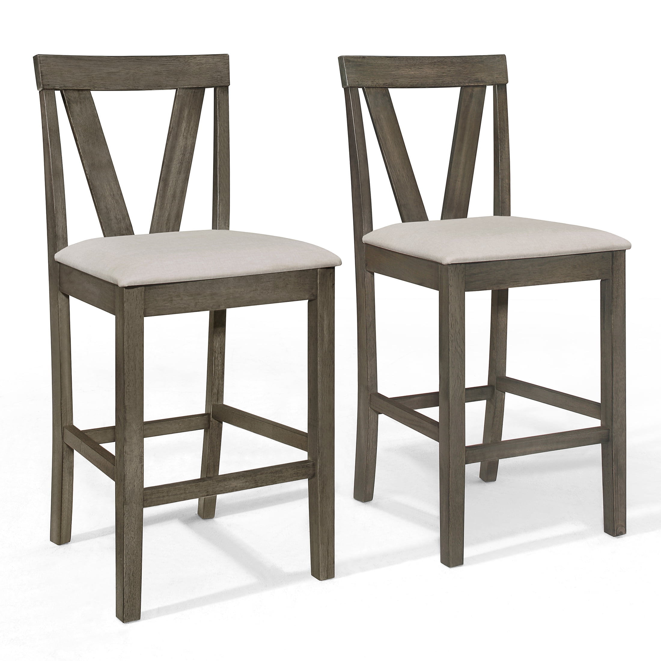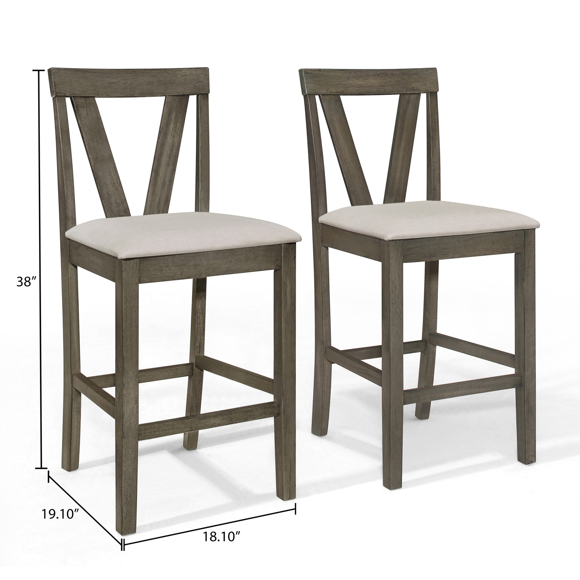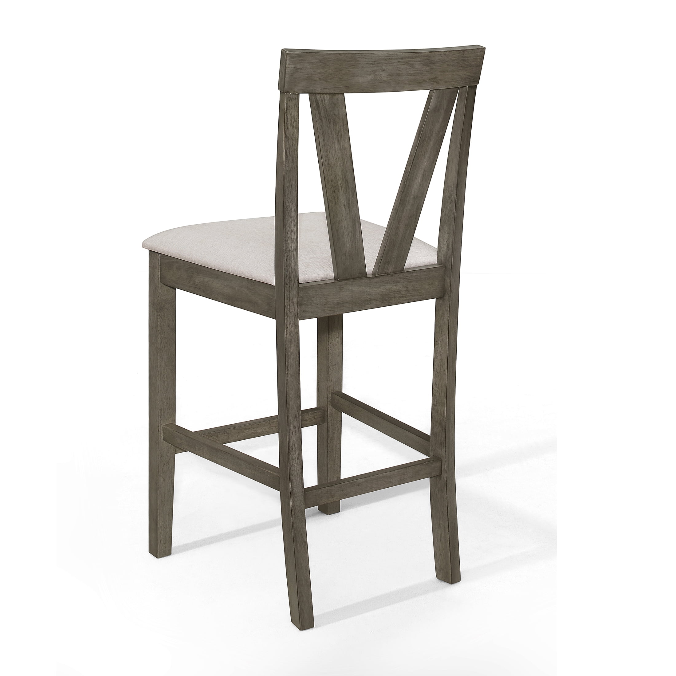 Revamp your dining experience with this set of four counter height dining chairs, expertly designed for both style and comfort. Upholstered in warm grey linen fabric, these durable chairs offer plush foam padding for a cozy seating experience. The distinctive V-shaped back design ensures ergonomic support, while the built-in footrest provides a convenient resting position for your feet. Complemented by a dark grey counter height dining table, this ensemble adds an understated yet elegant touch to any dining area. Available in chic dark grey, these chairs conveniently Ships in one box for easy assembly, making them a perfect addition to your home.