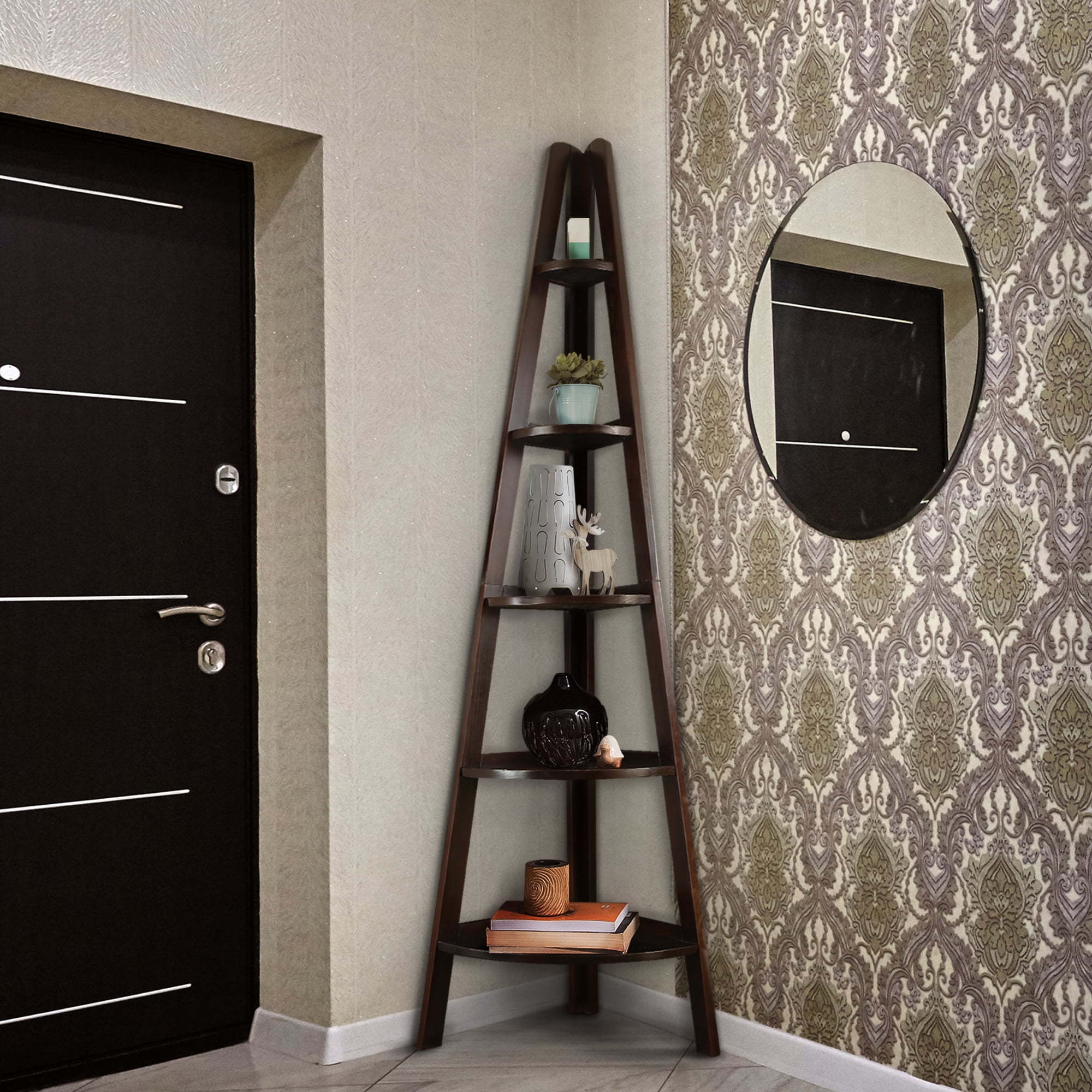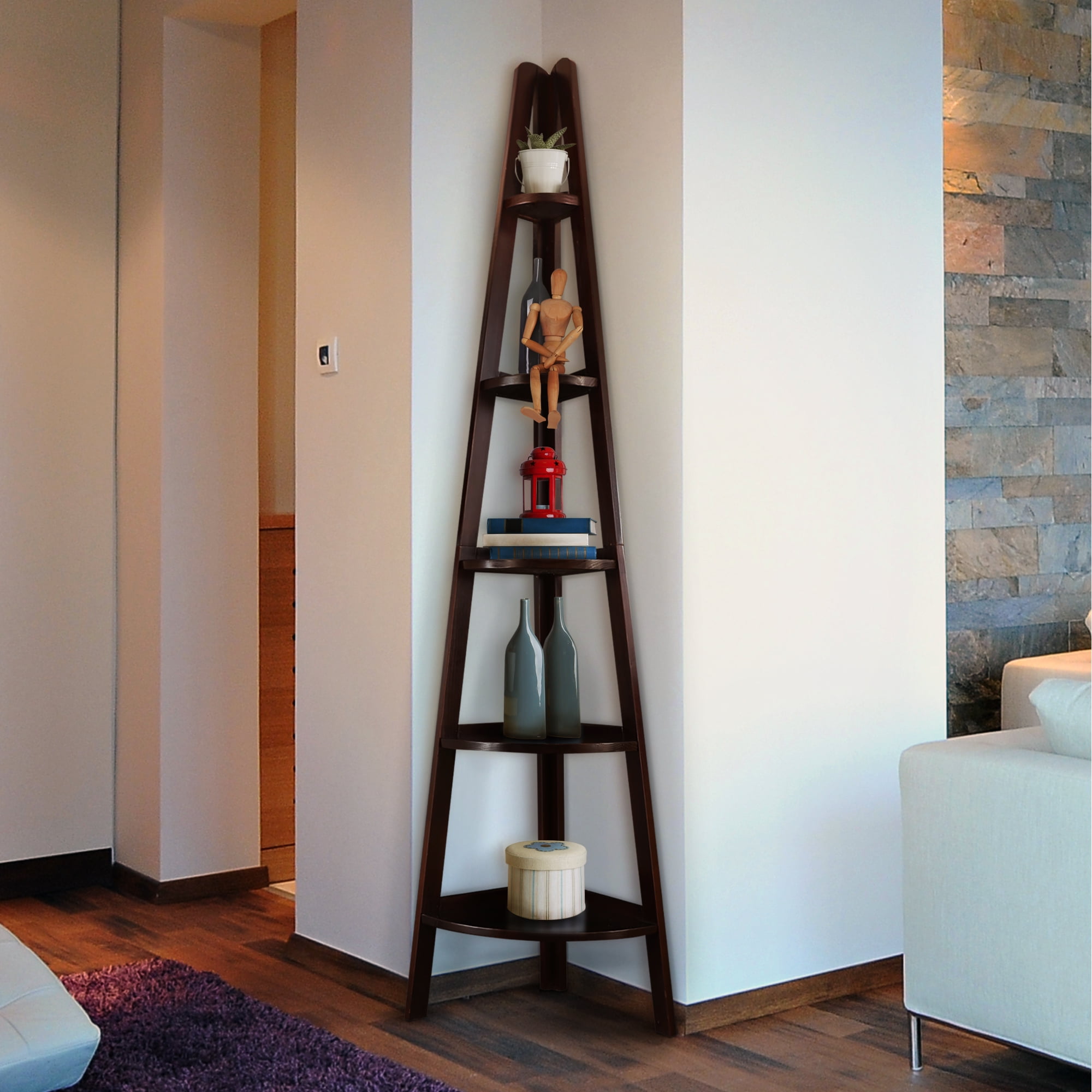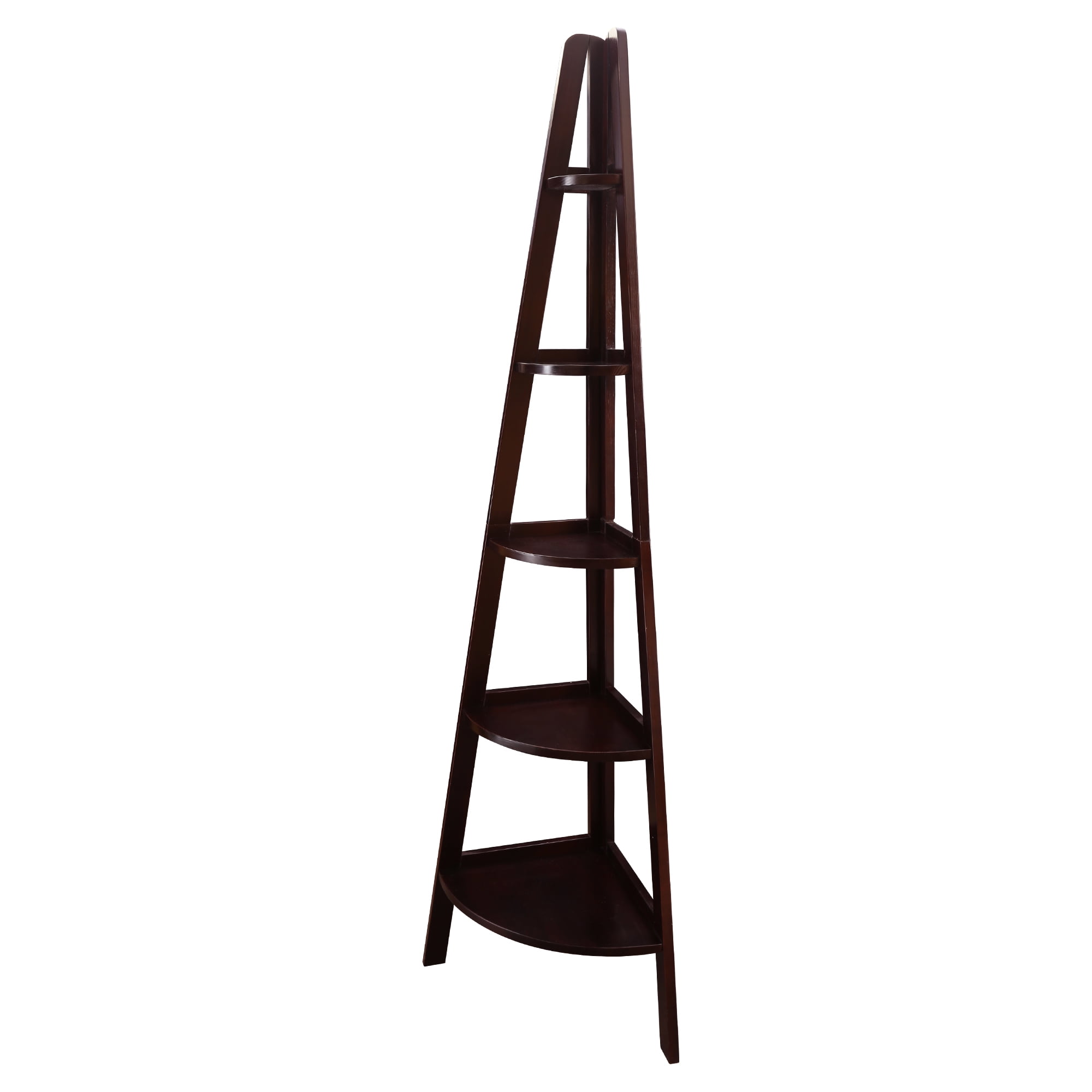 Casual Home 5-Shelf Corner Ladder Bookcase-Finish:Espresso