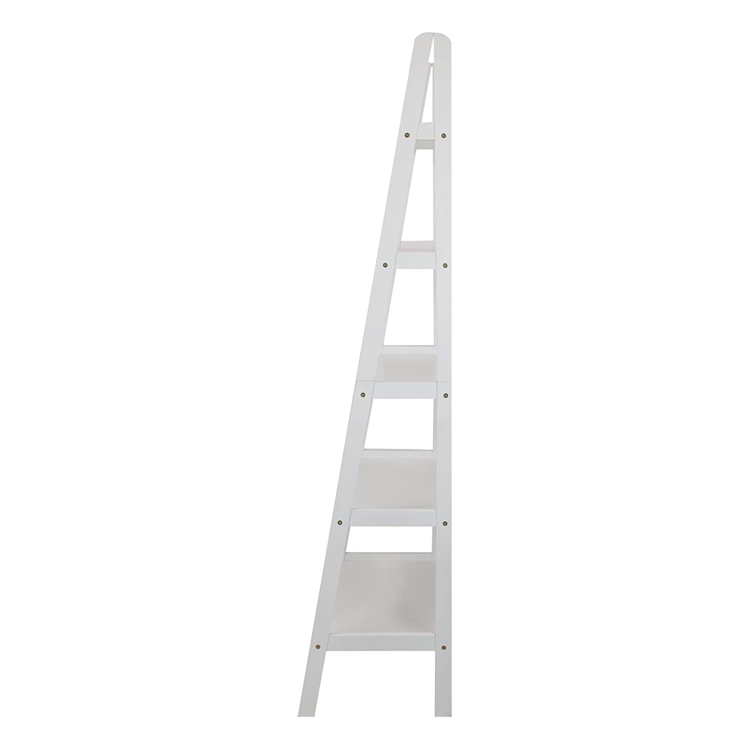 Are you looking for a simple and contemporary way to store your belongings? Casual Home’s 5 Shelf Ladder Storage Bookcase is the perfect addition to any bedroom, dorm room, or home office. Bringing you gentle slants and just the right angles, this 6-foot ladder style bookshelf supports all of your storage and organization needs. Additionally, with 5 shelves that retract in length, this wood bookcase allows for enough space for all of your items and naturally accents any decor. This bookcase rack is perfect for displaying all of your books, collectibles, plants, decoration, shoes, and more. Built to last with solid wood construction, this wooden bookcase will last you for years and years. In a darling white color, you can store and organize your belongings in style Complete your home layout and bring your organization to the next level with the beautiful 5 Shelf Ladder Organizer Bookcase from Casual Home.