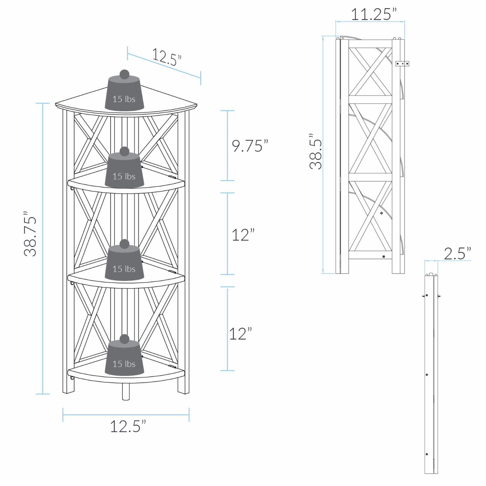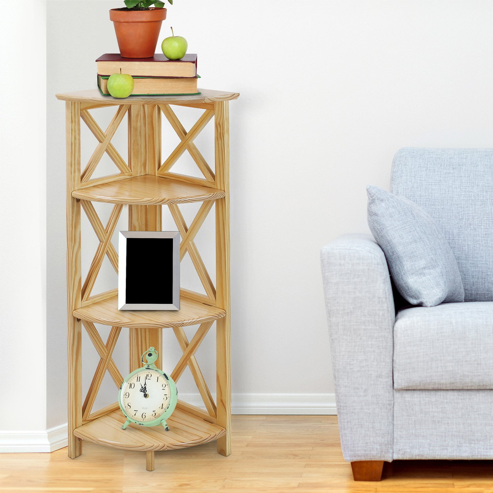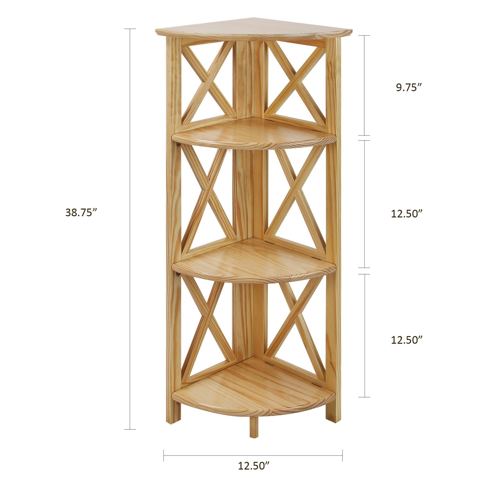 Color: Natural Four (4) shelves to maximize storage and decorative displays Perfect for books collectables and more Convenient foldable design for easy transport and storage with no assembly required Strong X-Design edges balance and compliment softer-edged furniture and prevents books from falling Weight Dimensions: 38.75 inches high x 12.5 inches wide x 12.5 inches deep