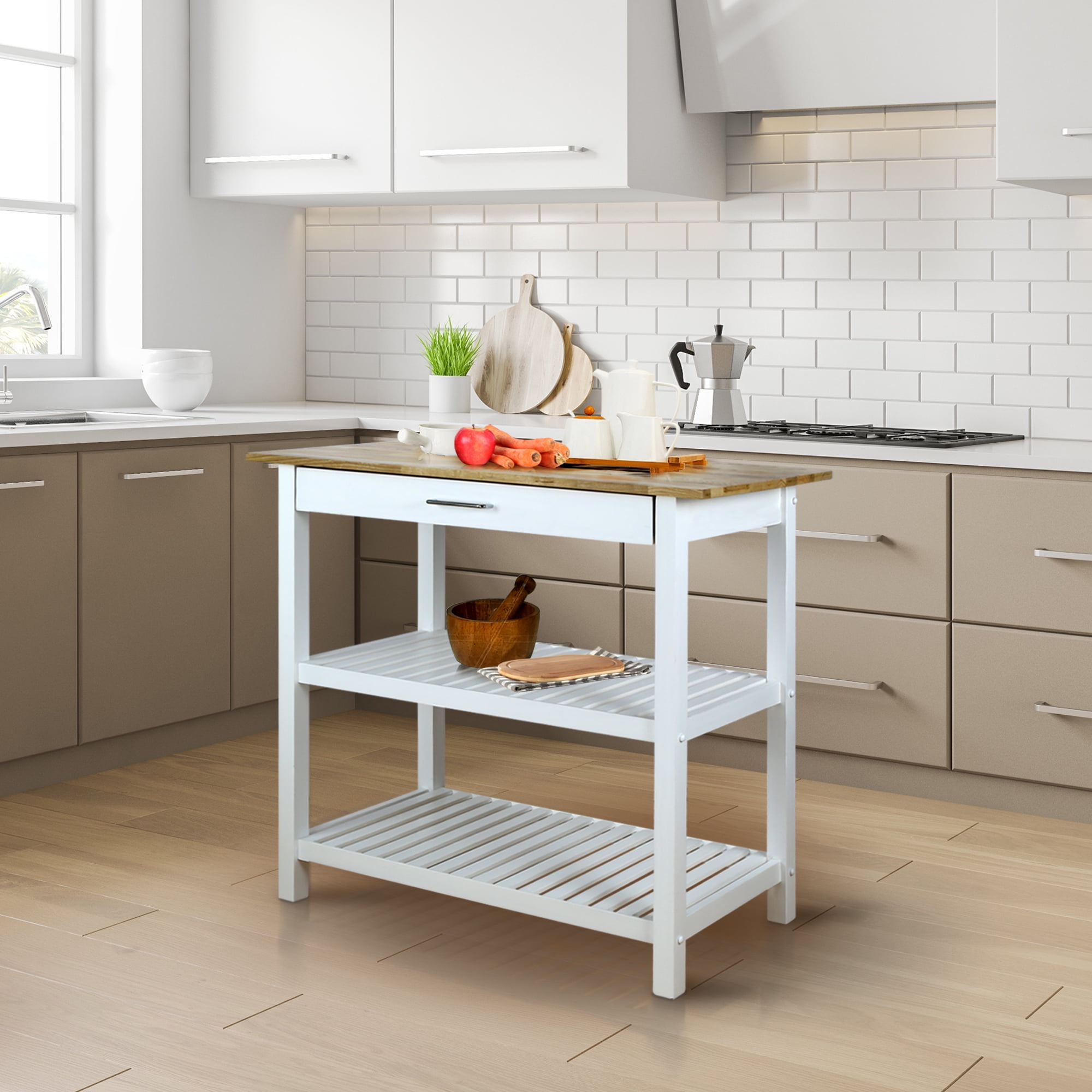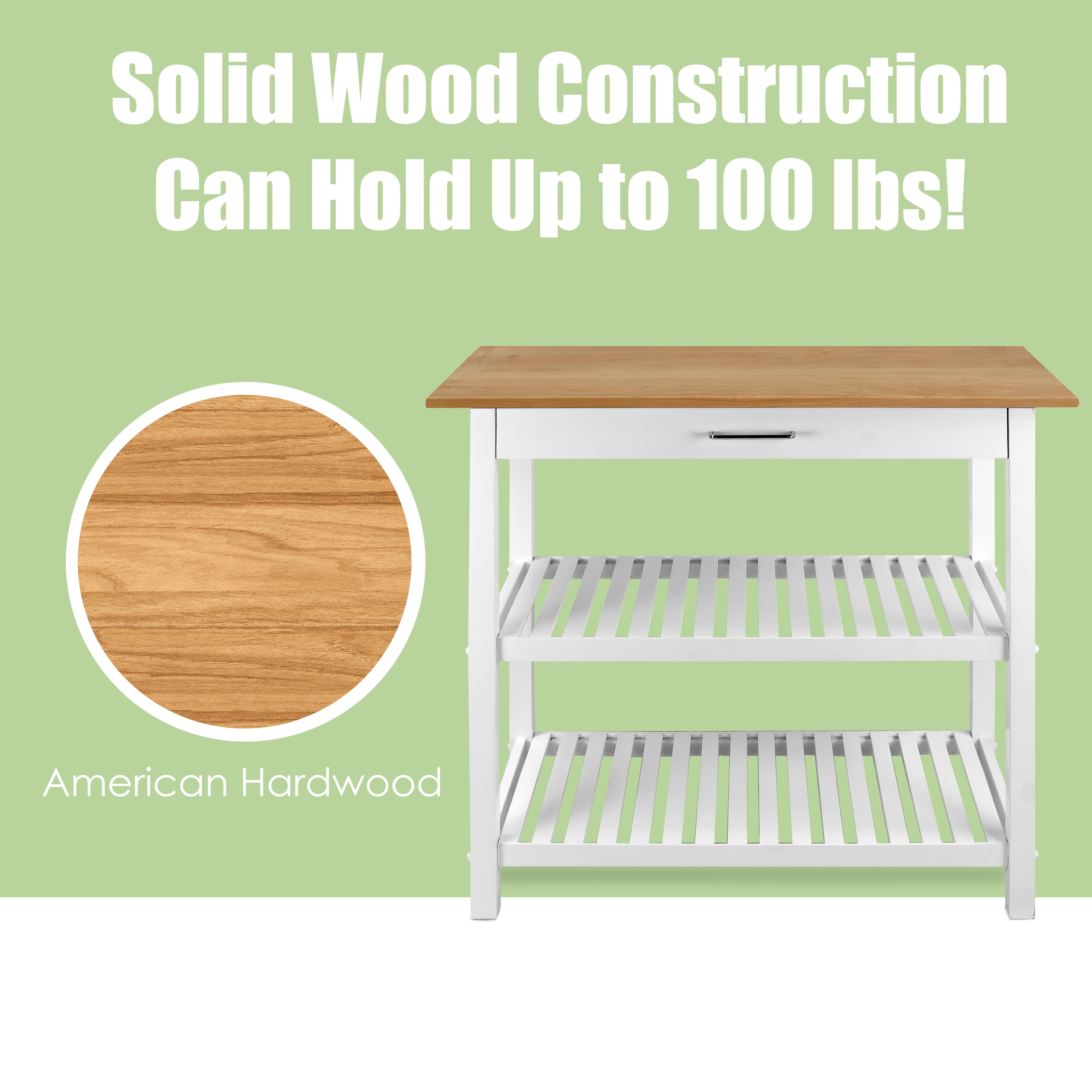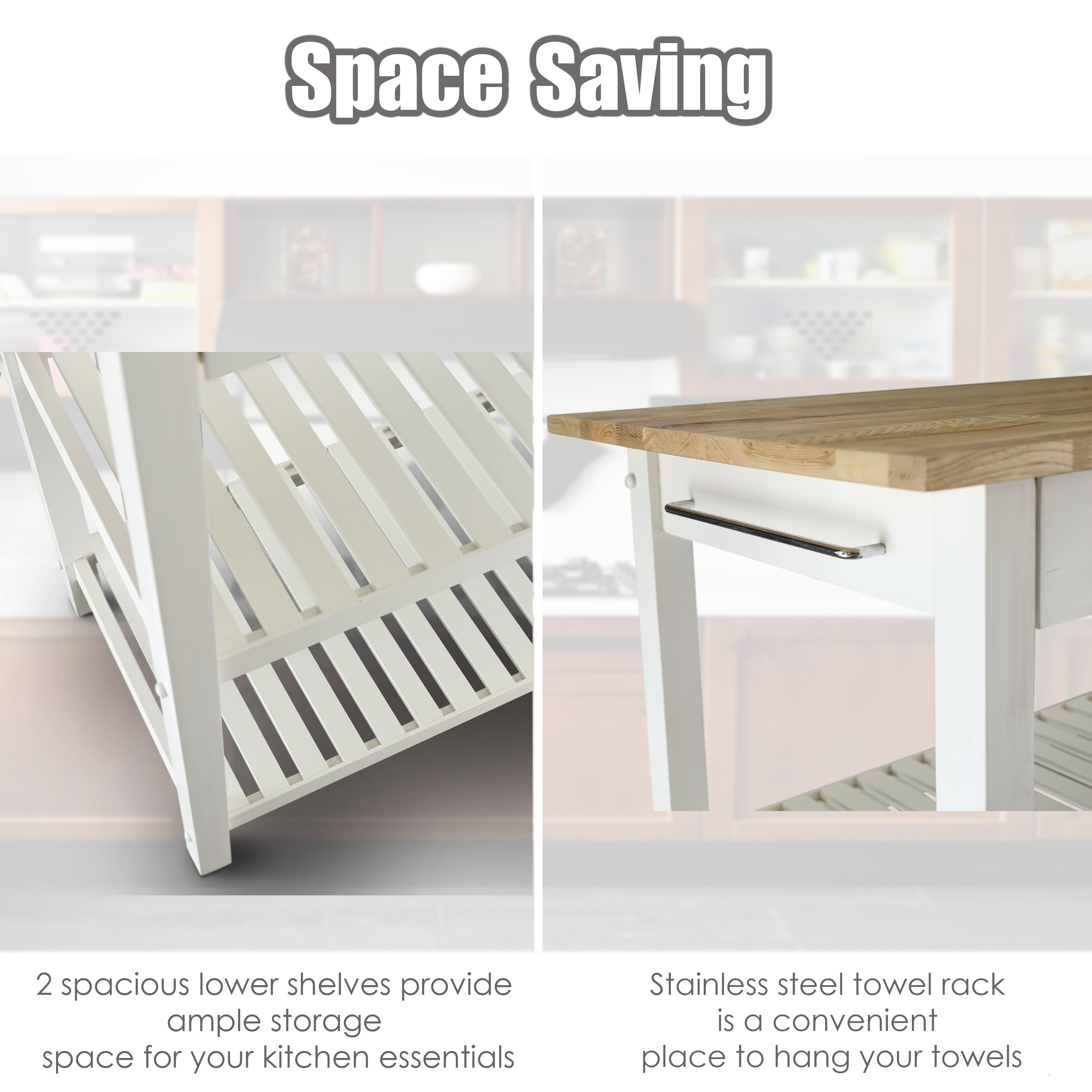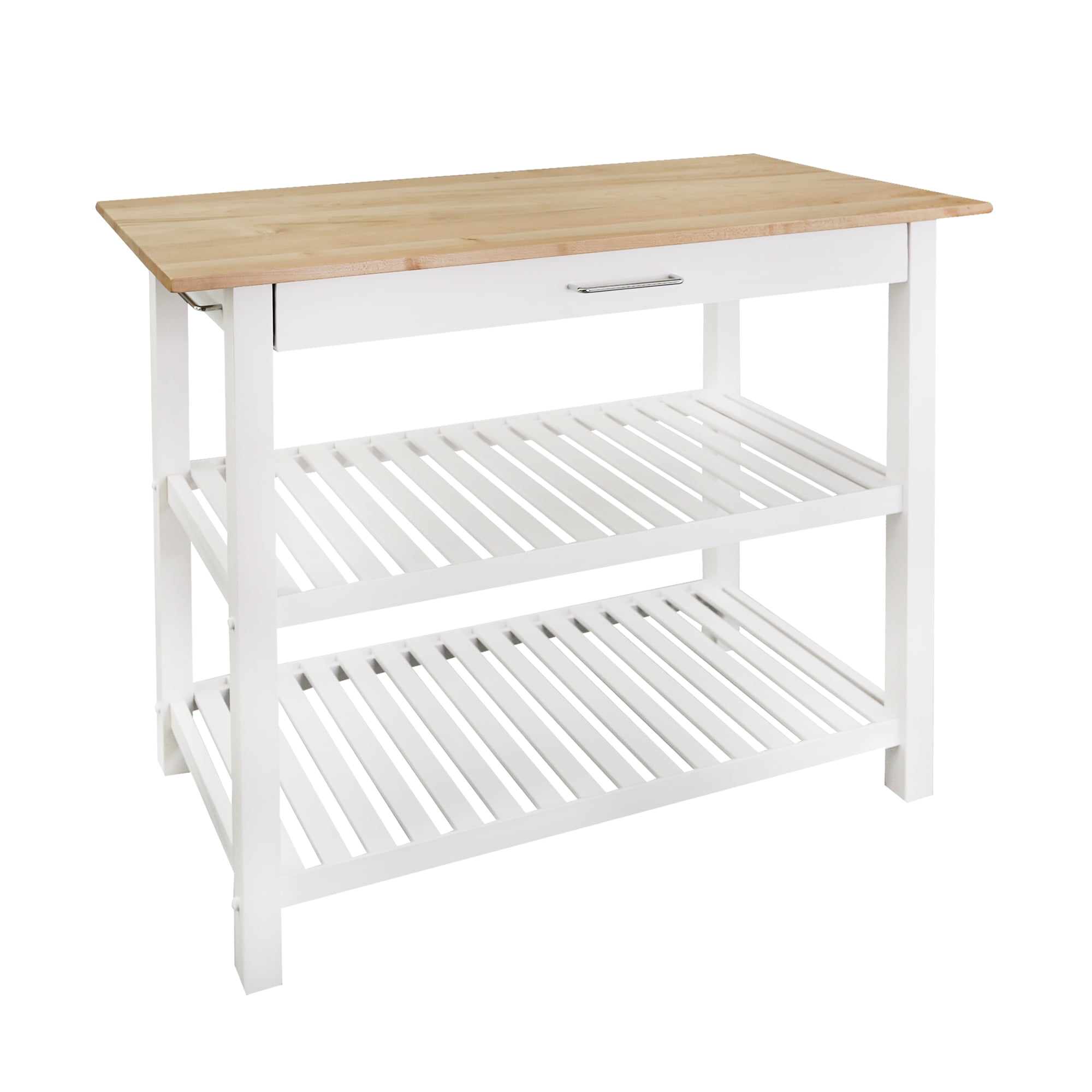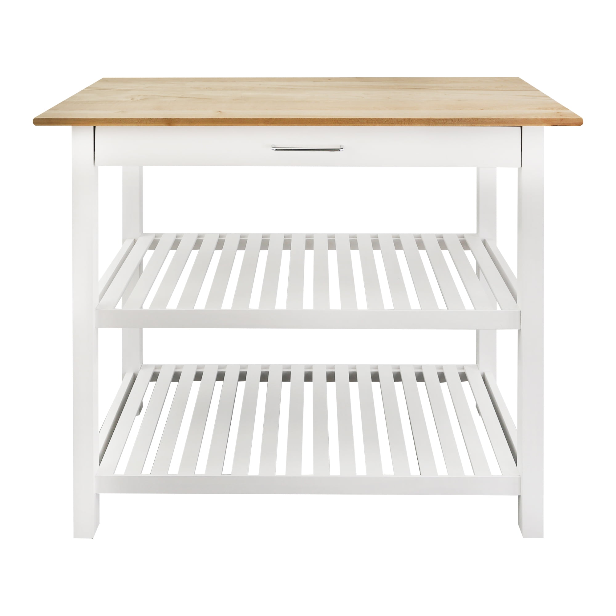Casual Home Solid Wood 40″W Kitchen Island with Drawer, Two Shelves, and Towel Racks, American Maple Top, Two-Tone Finish (Natural White)