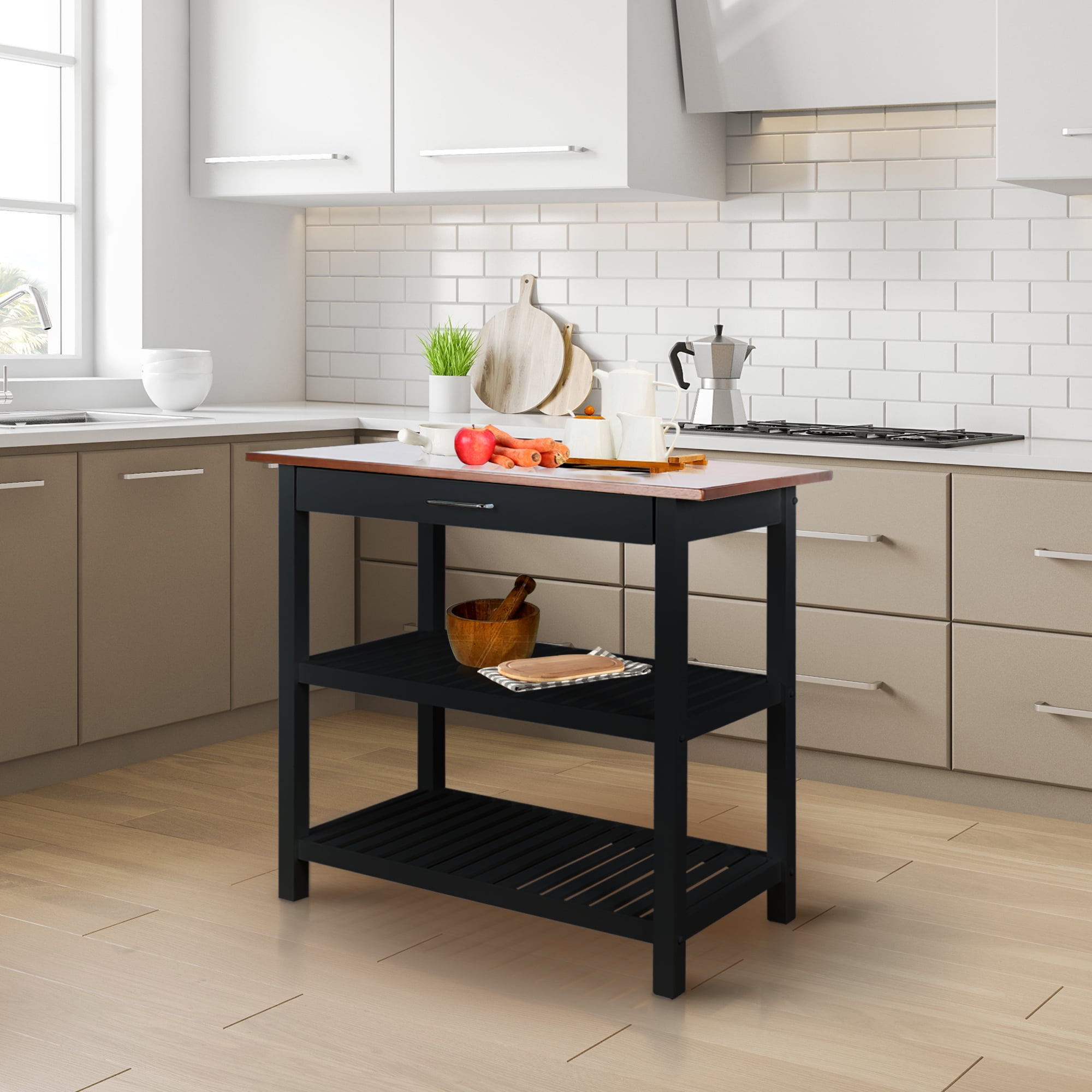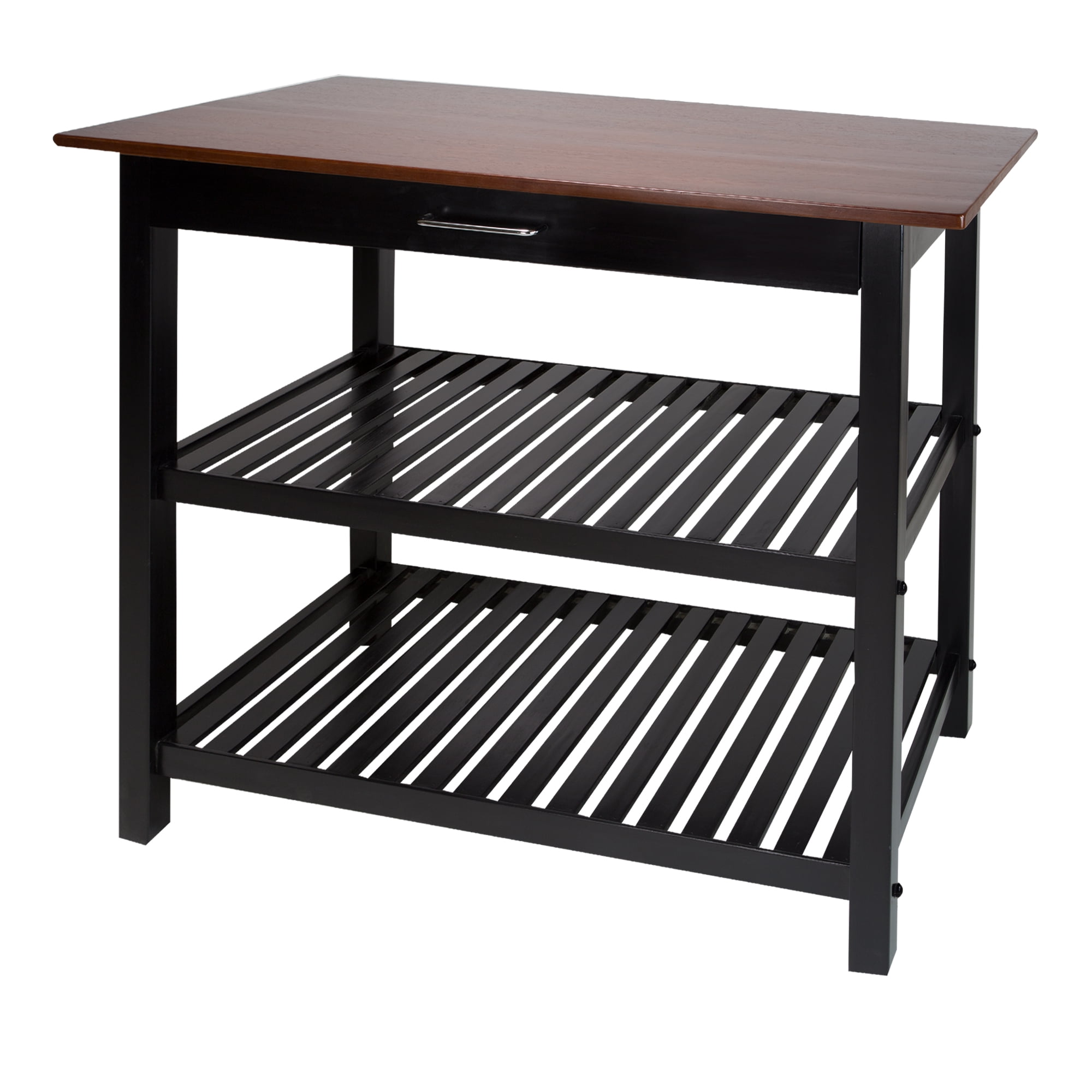 Casual Home Solid Wood 40″W Kitchen Island with Drawer, Two Shelves, and Towel Racks, American Maple Top, Two-Tone Finish (Walnut Black)