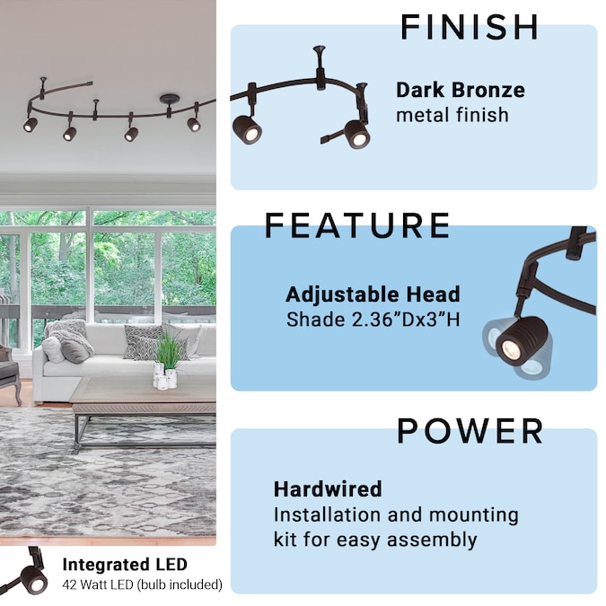 - Versatile integrated LED 6 light flexible track light features a dark bronze finish with adjustable heads