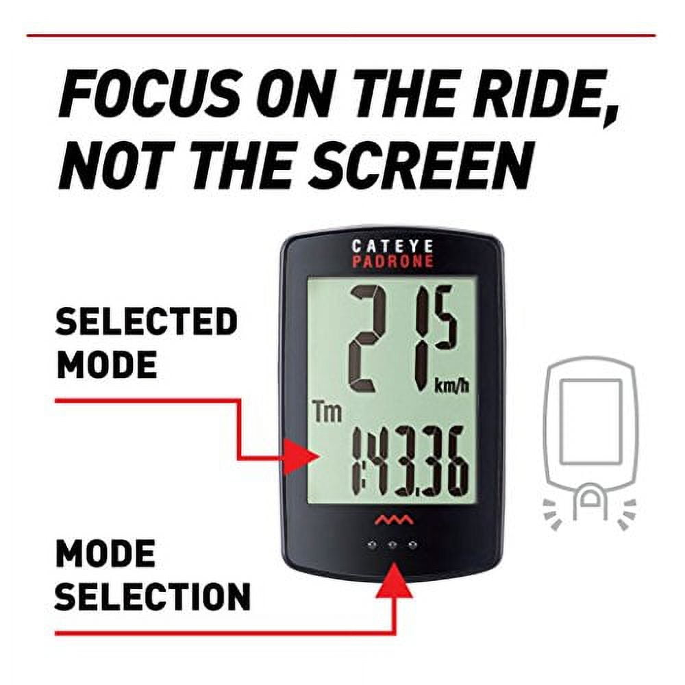 The CatEye Padrone offers unbeatable ease of use and functionality with its large display, sleek design, ClickTec™ button interface, and FlexTight™ bracket. Enjoy up to one year of battery life, and features like auto start/stop and a programmable odometer for an effortless, worry-free ride.