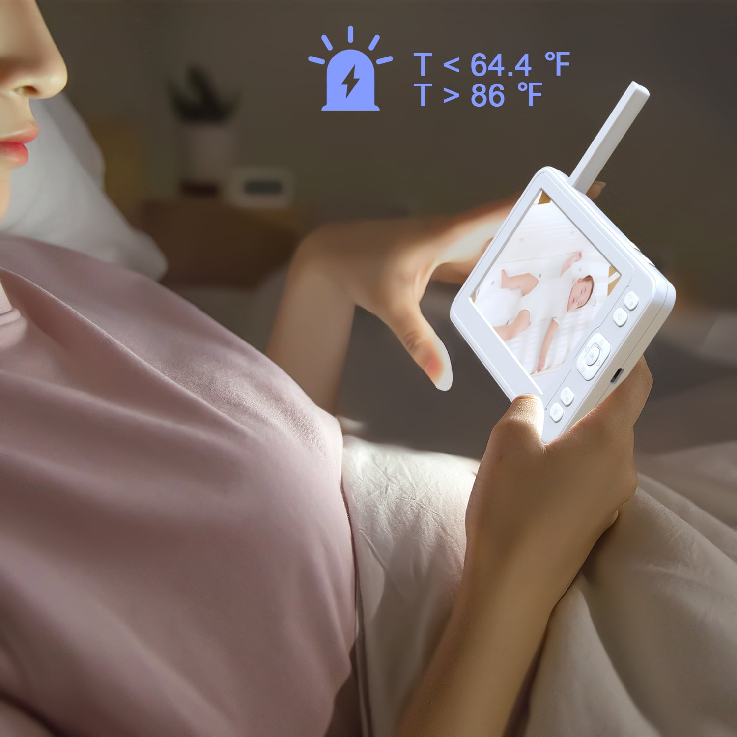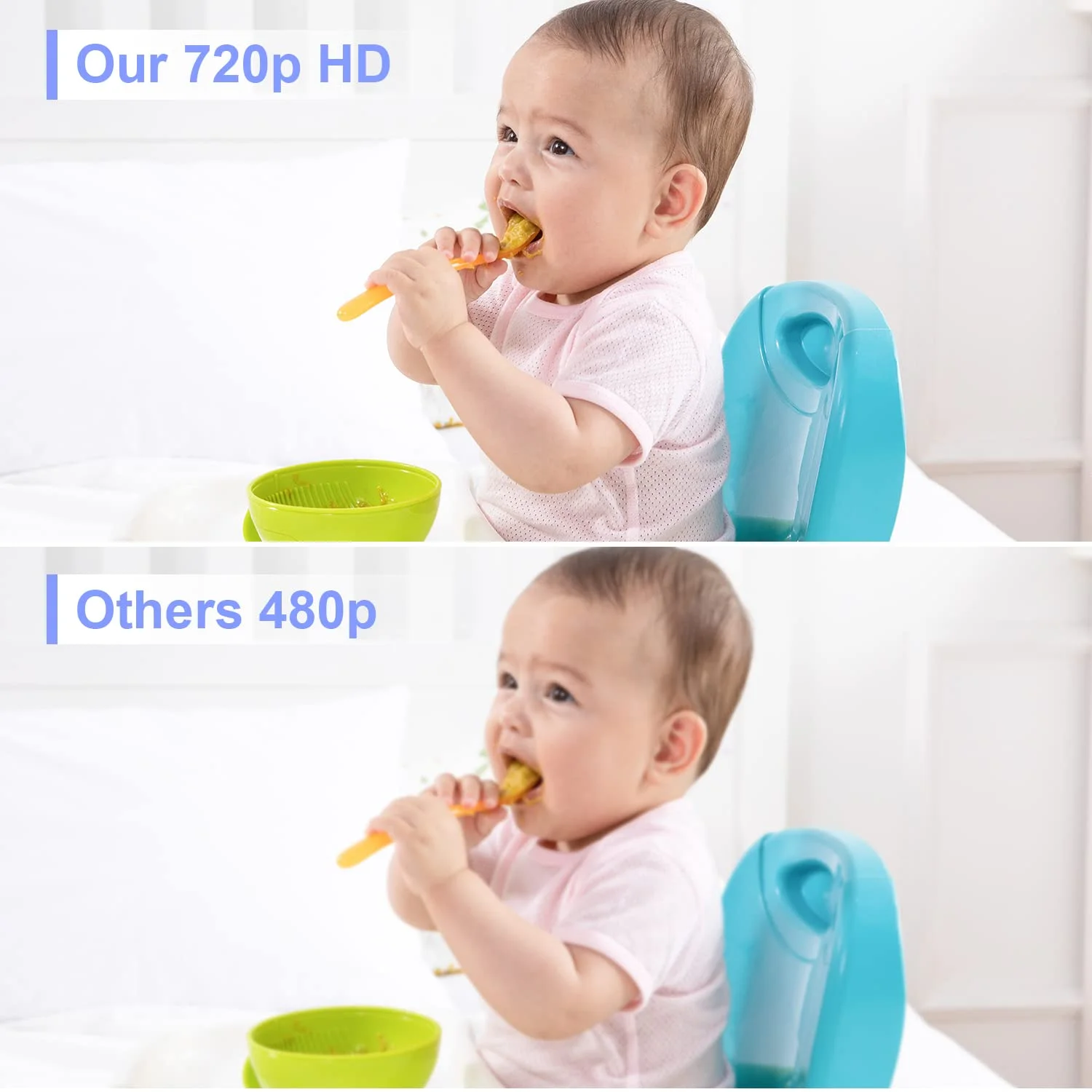 The CAUTUM Video Baby Monitor is an advanced indoor security camera designed for comprehensive baby monitoring. Offering a 720p HD resolution, it delivers crystal clear images, ensuring you can always keep a close eye on your little one. This monitor is compatible with voice assistants, allowing for seamless, hands-free operation. It features night vision capabilities, so you can monitor your baby even in low light conditions. The 5’’ display provides a large, clear view, while the included 150° wide-angle lens ensures a broad coverage area. This baby monitor also comes equipped with a built-in lullaby player, perfect for soothing your baby to sleep. Whether you’re in another room or away from home, the CAUTUM Video Baby Monitor offers peace of mind by keeping you connected to your baby.
