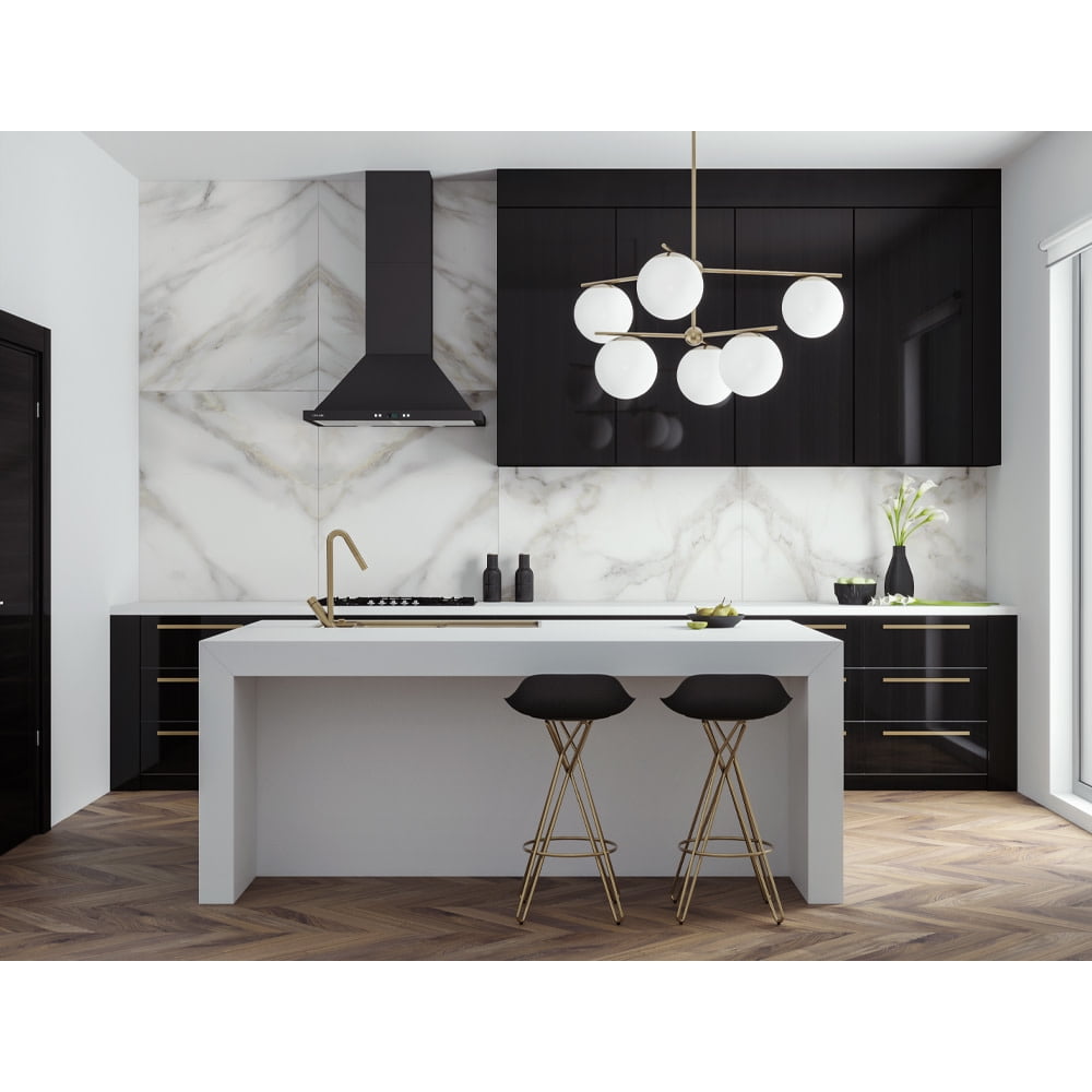 Product Features:Powerful 900 CFM dual squirrel cage centrifugal blower with ultra quiet dual chamber motorTwo dimmable 35 watt halogen lamps ensuring you always have a clear view of your cook topSix speed front mounted touch sensitive controls featuring programmable timer and 30 hour cleaning reminder with blue led lightingIncludes dishwasher-safe aluminum mesh filters engineered to keep your kitchen contaminant free with optional baffle filter upgrade (b2-30, sold separately)Telescopic chimney fits up to 9 foot ceilings with optional duct cover extension for 10 foot ceilings (sold separately)Featuring your choice of 6 inch round vertical venting or non-ducted installationFeatures a 1 year limited factory warrantyProduct Technologies:Programmable Touch Sensitive Controls: Cavaliere-Euro’s state of the art 4 speed electronic controls feature a delayed auto shut off function that allows you to set your range hood to continue ventilation for up to 15 minutes after you leave the cooking area, ensuring your kitchen is clear and pollutant free upon your return.Non-Ducted Range Hood (Pre-Installed): Non-ducted, or recirculating, range hoods require no external venting. Instead, air is pushed through a charcoal filtration system that removes pollutants before circulating the air back into your home. The benefit of such a system is that household temperatures and humidity are easier to maintain, as the internal air never leaves the kitchen. Recirculating range hoods are also generally far easier to install, as complex ventilation systems and vent pipe are not required.Specifications:CFM: 900Width: 29.53″Depth: 19.69″Height: 45″Voltage: 120VSones: 0.3 to 7.0Blower Speeds: 6Blower Type: Dual CentrifugalMaximum Ceiling Height: 120″Minimum Ceiling Height: 95″Minimum Height Above Cook Top: 28″Ducting: 6 Inch RoundProduct Variations:SV218B2-30: 30 Inch 900 CFM Wall Mounted Range Hood (This Model)SV218B2-36: 36 Inch 900 CFM Wall Mounted Range Hood