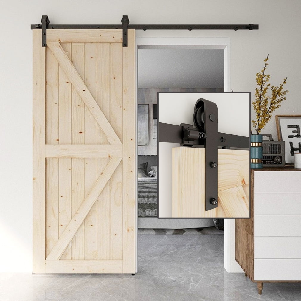 CCJH 6.6Ft Sliding Barn Door Hardware Kit 39.6″ Wide for Closet Black Carbon Steel I Shape