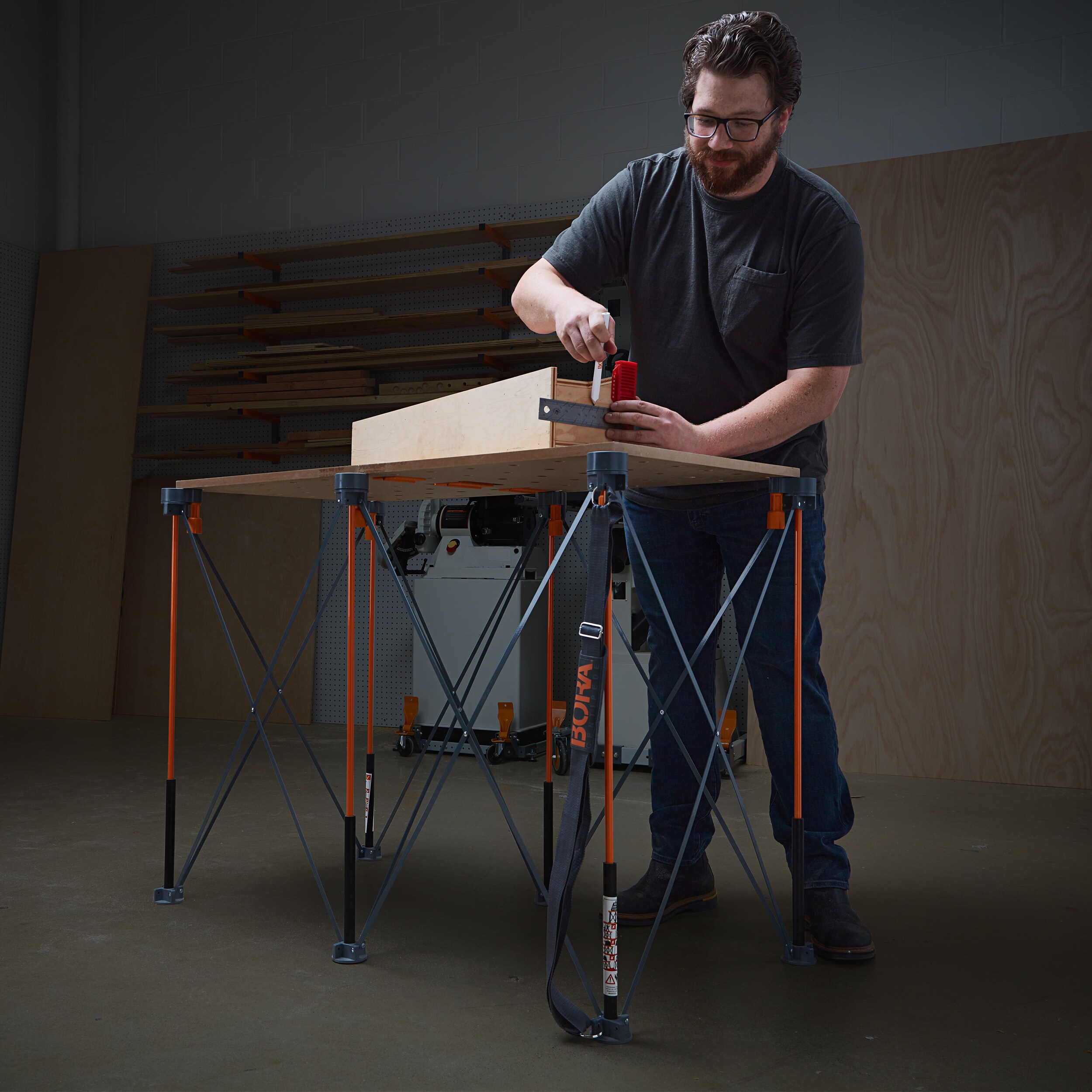 The BORA® CT6 Work Stand delivers portable convenience and heavy-duty performance with an increased working height of 36-inches, optimal for taller individuals using the Centipede. Flexible yet tough, the Centipede® allows you to create a moveable custom 2ft x 4ft workspace that supports up to 2500 lbs. — ideal for power tools and heavy machinery on the job site to finished projects, and glue-ups in the workshop. Need even more height? Add the Centipede 6” Risers for a working height of 42”. Whatever the project – save time and get more done with BORA Centipede®. Accessories not included.