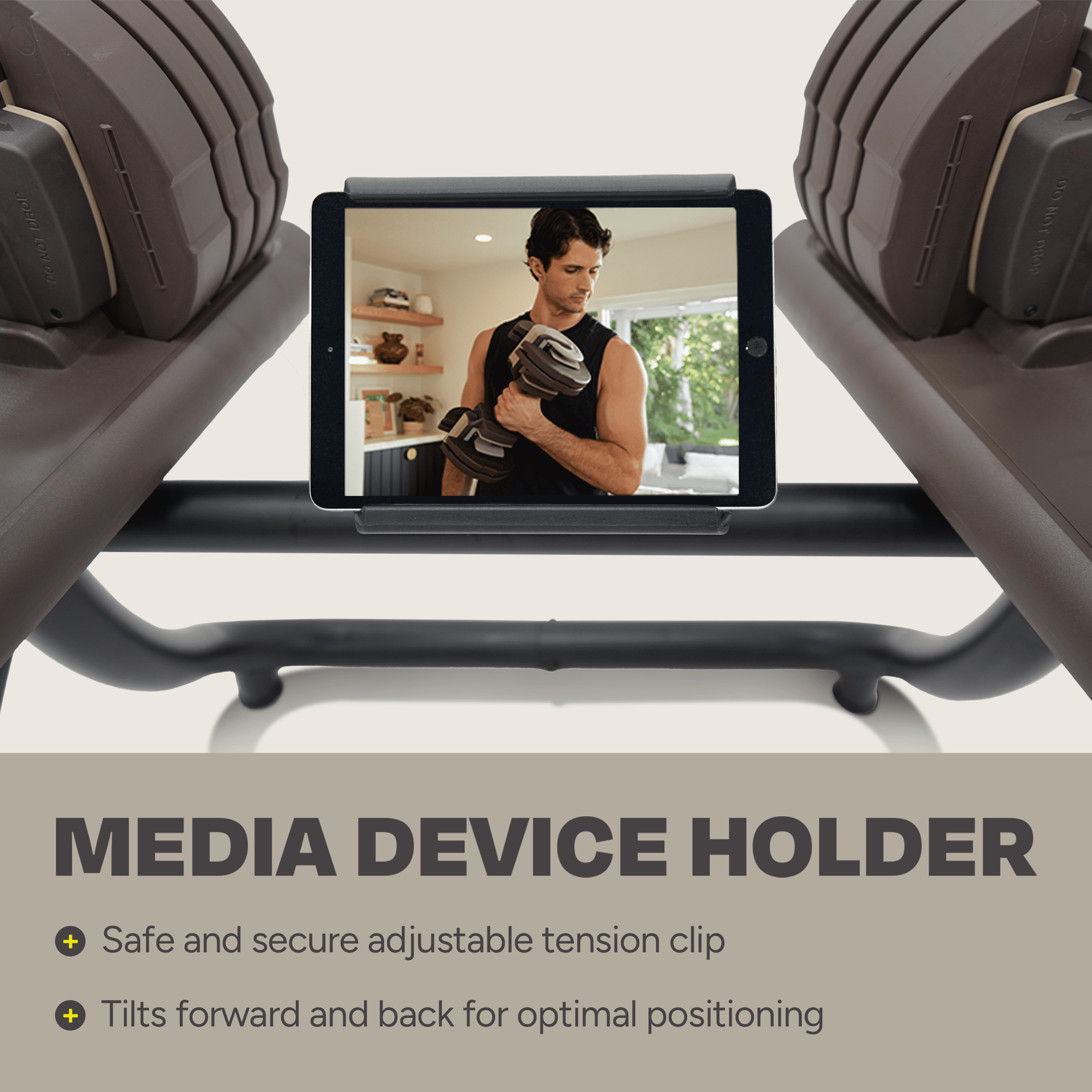 ERGONOMICALLY DESIGNED WEIGHT STAND: Centr Smart-Stack Adjustable Dumbbell Stand is designed to make workouts safer by elevating your dumbbells and reducing the potential strain on your lower back. HIGH QUALITY COMPONENTS: Made with high-grade steel components, this dumbbell stand is built to last. It features adjustable levelers on each foot to ensure a stable position. MEDIA DEVICE HOLDER: An adjustable tension clip holds your device in place and tilts forward and back for optimal positioning, so you use the Centr Digital app or you can watch your favorite shows during your workout. COMPACT AND ADAPTABLE: This dumbbell stand is compatible with two Centr Smart Stack 50 Adjustable Dumbbells (5-50lbs each) and their bases (sold separately). At just 23.6 in x 23.6 in x 0.47, the stand fits nicely in most rooms or corners. INCLUDES 3-MONTH CENTR DIGITAL MEMBERSHIP: Centr Smart-Stack Adjustable Dumbbell Stand includes a 3-month digital membership to the Centr app where you can unlock the full potential of your Smart-Stack Adjustable Dumbbell Stand with training, nutrition, and mindfulness coaching from Chris Hemsworth’s expert team.