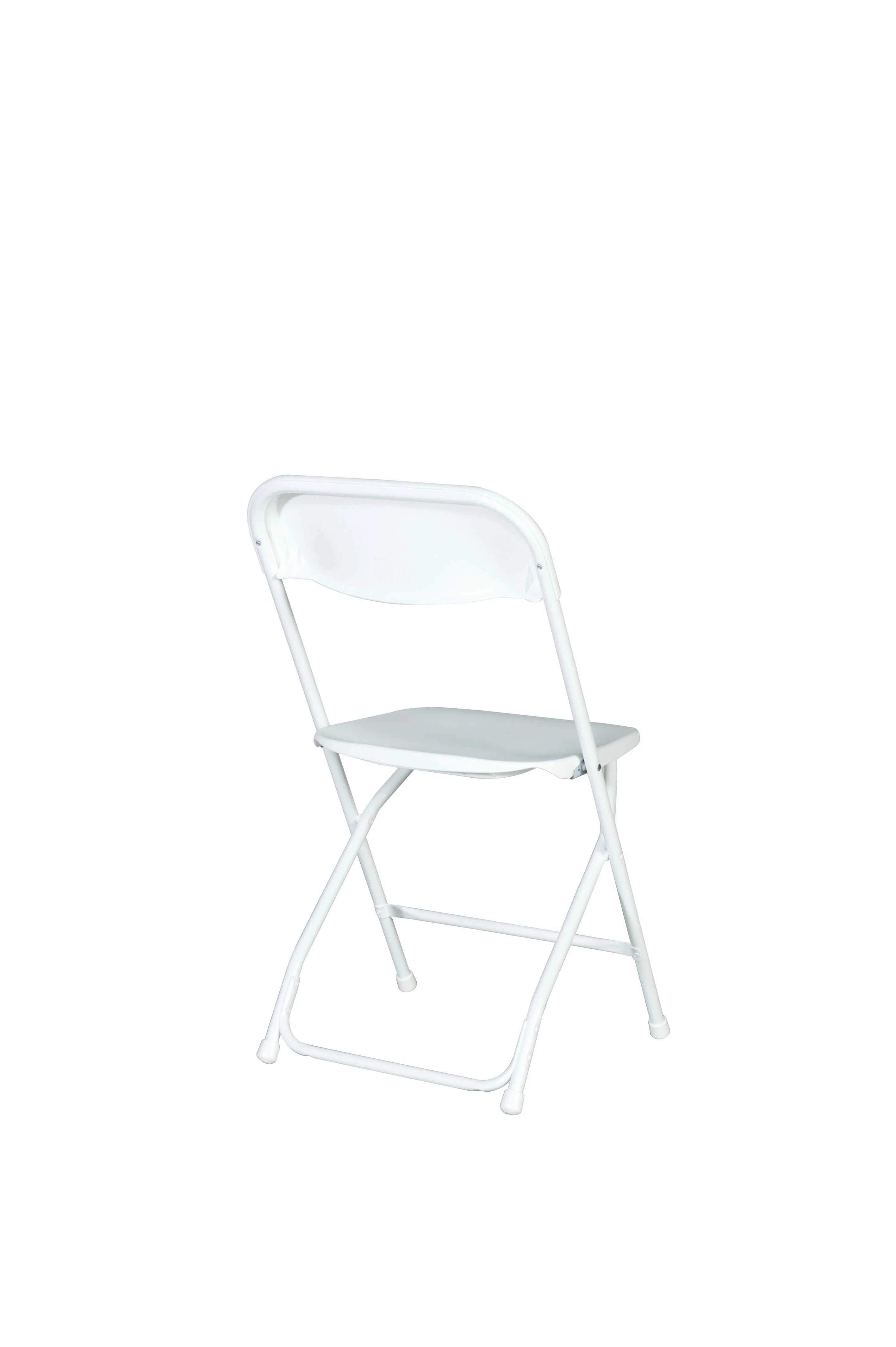 We evaluated the engineering of plastic folding chair manufacturers and took the best qualities of each to engineer our top quality commercial grade Plastic Folding Chair. Weighing in at a lightweight of just over 7.5 lbs, we use a real 18 gauge steel to ensure the sturdiness and reliability of this item. Three drain holes are drilled into the chair seat to stop rain water from accumulating; and the legs are set at the requisite angle. The side holes are placed 3/4″ from the end and the plastic is reinforced around the side holes to ensure the plastic seat maintains its resiliency. The polypropylene seat and back are softened to avoid the brittleness that causes chair breakage in extreme cold and extreme heat.