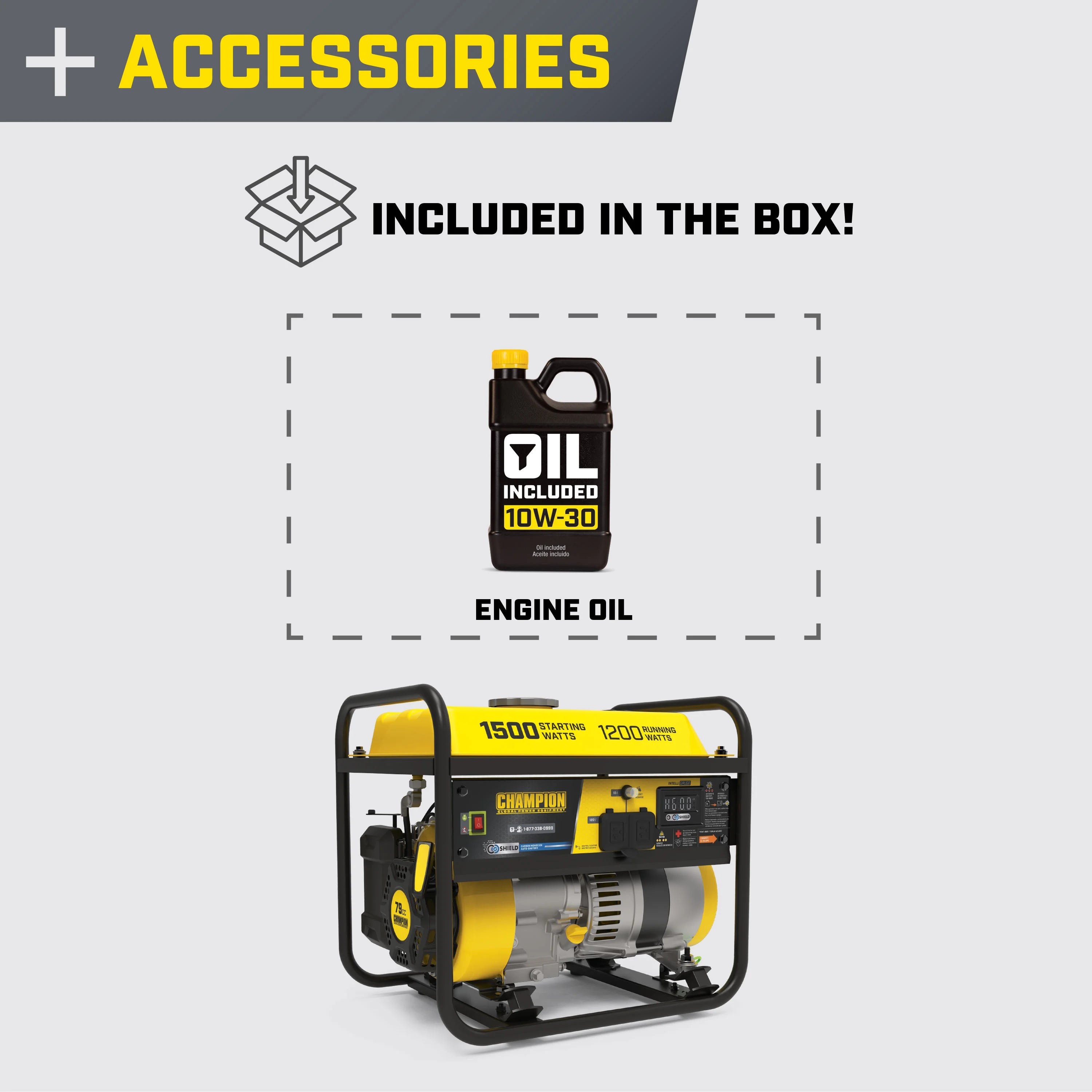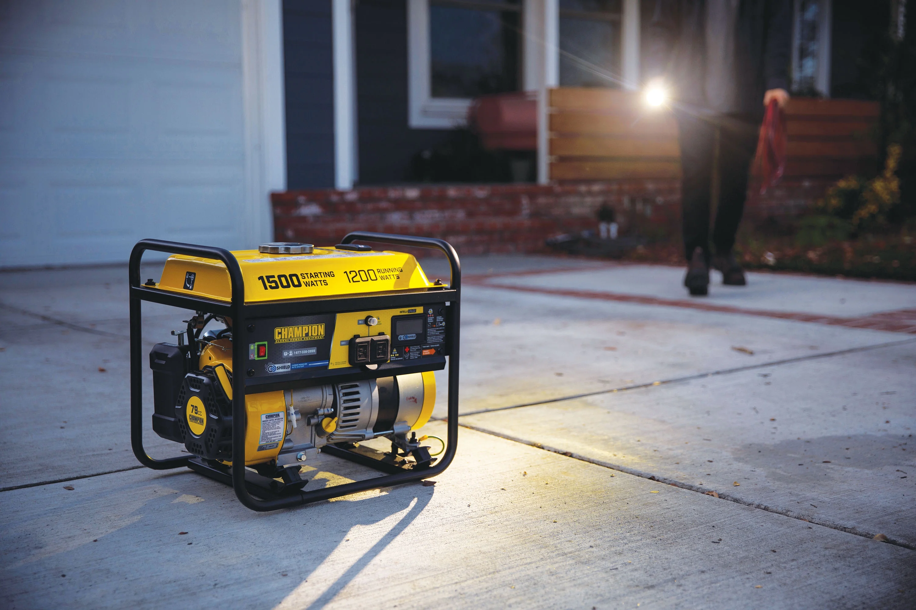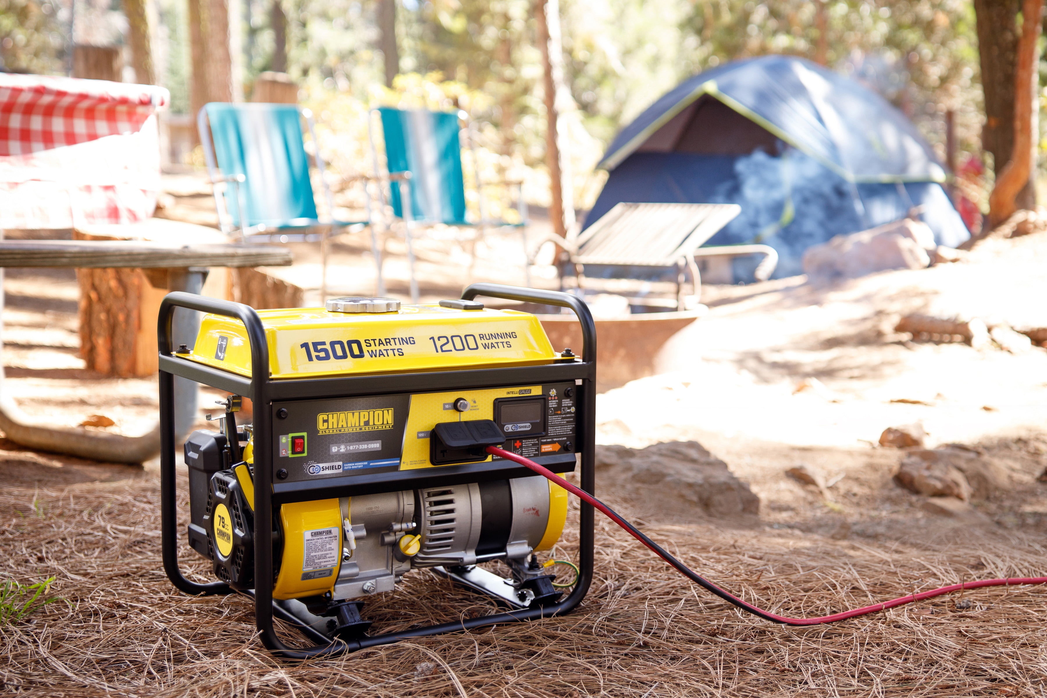 The Champion Power Equipment 201285 1200-Watt Multi-Purpose Portable Generator with CO Shield® is designed with your safety and convenience in mind, and is the perfect “what if” generator. At 1500 starting watts and 1200 running watts, this rugged generator with its durable steel frame is easy to transport and provides just what you need for RV use, camping, tailgating, boating, hunting, weekend trips, family vacations and small jobs around the house. The next time there’s an outage, the 79cc Champion single-cylinder OHV engine will provide the power you need for a few essential items in an emergency – lights, microwave, fan, TV, modem/router, cell phone charger, etc. (Note: this unit is not recommended for emergency home backup for powering air conditioners, stoves, furnaces or sump pumps.) Power up with Champion’s reliable recoil start, plus Cold Start Technology ensures a quick start in cold weather. Champion also makes it easy to monitor voltage, frequency and operating hours with Intelligauge. This unit includes a 120V 20A covered household duplex outlet (5-20R). Designed for safety with convenient push-to-reset circuit breakers, a low oil shut-off switch plus an included oil funnel for easy changes, this unit has a 0.4-quart oil capacity (recommended 10W-30). The reliable 79cc single-cylinder OHV Champion engine produces 1500 starting watts and 1200 running watts, and will run for up to 10 hours at 50% load when the 1.46-gallon tank of gasoline is full. With a noise level of 65 dBA from 23 feet, which is a little bit louder than normal speech, this machine can handle a few basic essentials in an outage. Champion’s thoughtful packaging and clear directions make setup hassle free. Buy this EPA certified generator with confidence – Champion Support and our nationwide network of service centers will back up your purchase with a 3-year limited warranty and FREE lifetime technical support. CO Shield® technology monitors the accumulation of carbon monoxide (CO), a poisonous gas produced by engine exhaust when the generator is running. If CO Shield® detects unsafe elevated levels of CO gas, it automatically shuts off the engine. CO Shield® is not a substitute for an indoor carbon monoxide alarm or for safe operation. DO NOT allow engine exhaust fumes to enter a confined area through windows, doors, vents or other openings. Generators must ALWAYS be used outdoors, far away from occupied buildings with engine exhaust pointed away from people and buildings. Meets the requirements of ANSI/PGMA G300-2018.