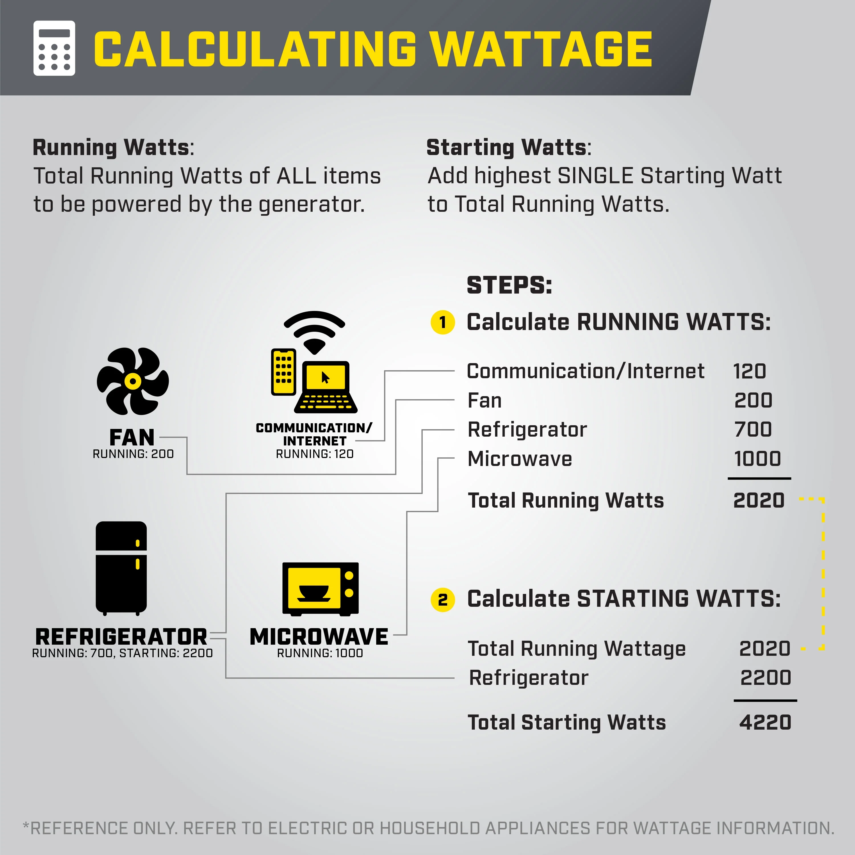 Includes a 120V 20A covered household duplex outlet, a low oil shut-off switch and holds 0.4-quarts of oil (recommended 10W-30) At 1500 starting watts and 1200 running watts, enjoy up to 10 hours of run time on a full tank of gasoline with a noise level of 65 dBA from 23 feet Monitor voltage, frequency and operating hours with ease, plus features CO Shield® carbon monoxide auto shutoff system Cold Start Technology ensures a quick start in cold weather Includes 3-year limited warranty with FREE lifetime technical support from dedicated experts