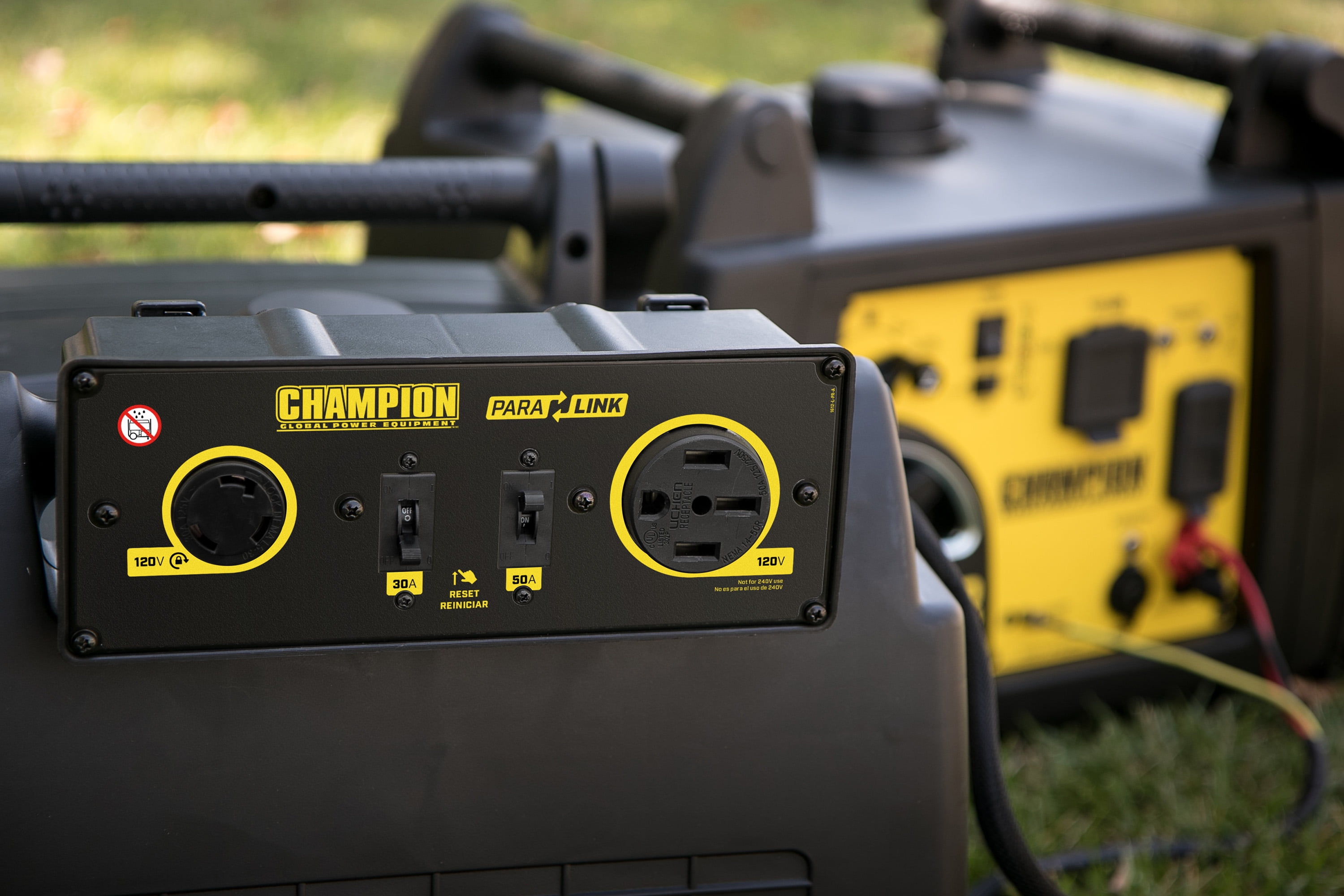 Equipped with a standard 50A RV outlet Seamlessly integrates two 2800-watt or higher Champion inverters with a quick clip-on connection Connecting two generators gives you enough power to start and run two 15,000 BTU RV air conditioners 120V 50A RV (14-50R) and 120V 30A locking outlets (L5-30R), plus 30-amp and 50-amp circuit breakers to prevent overloads Includes 1-year limited warranty with FREE lifetime technical support from dedicated experts