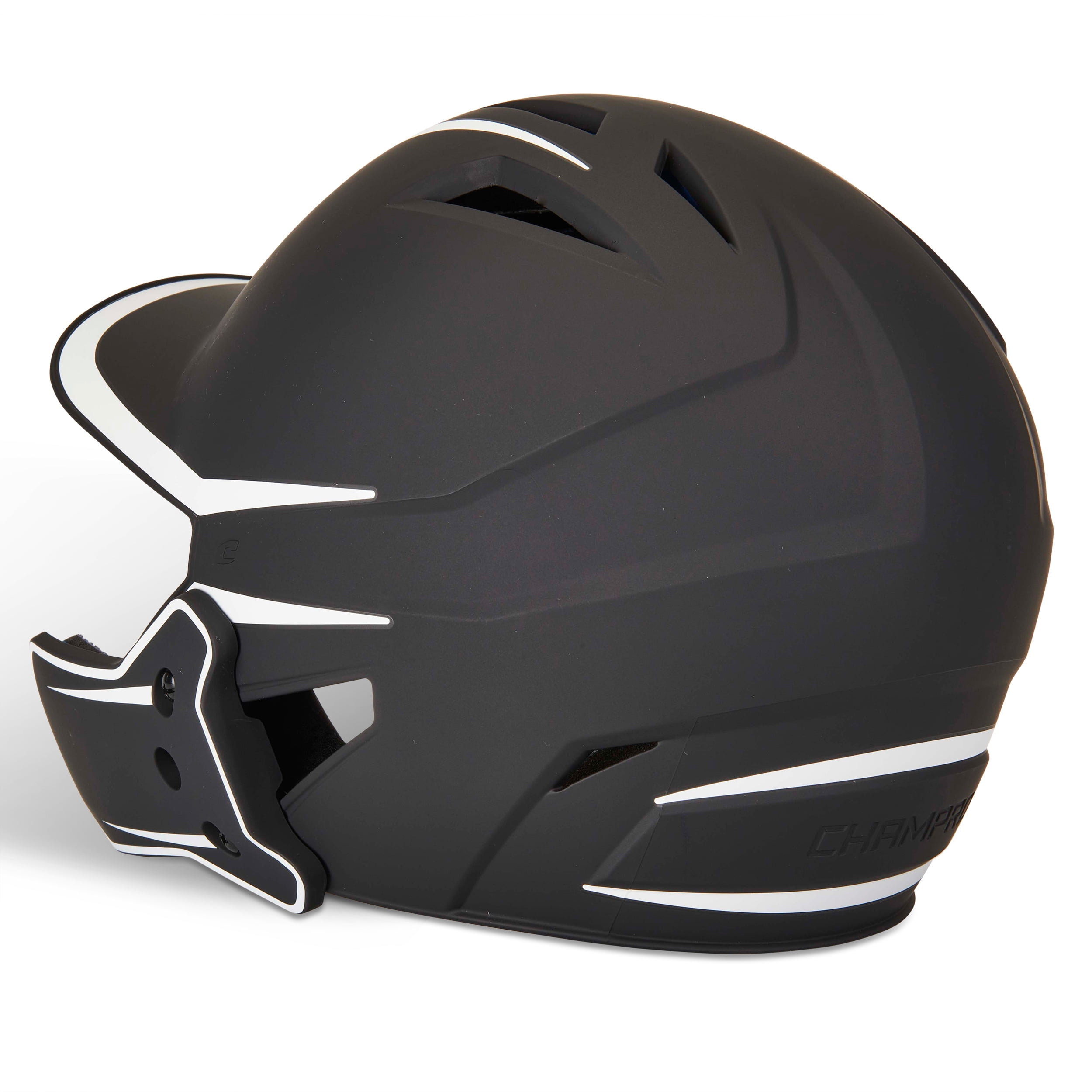 A CHAMPRO exclusive design, the Legend Plus batting helmet maximizes airflow and visibility. Vent holes release heat so hitters can keep a cool head at the plate. This batting helmet’s durable ABS shell withstands high impacts and meets NOCSAE standard for all levels of play. A weight-optimized shell lined with impact foam and jaw pads wrapped in soft-touch moisture-wicking fabric provide excellent protection and comfort. The contour-molded DRI-GEAR® liner wicks away moisture and helps keep batters comfortable and dry on hot days. With patent-pending Double Lock Design, the included jaw guard attaches to either the right or left side. Secure it with screws (included) for an extra level of protection and remove them to move the guard to the opposite side. Fits both adult and youth athletes depending on head size. Large fits head/hat sizes 7-7 ½ and Medium fits head/hat sizes 6 ½-7. Comes in 6 colors with a matte finish.
