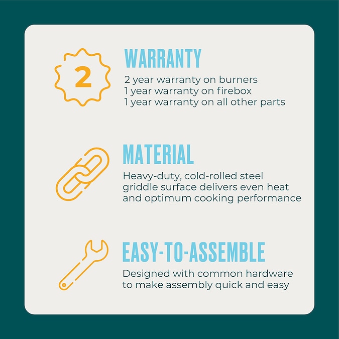 - Heavy-duty, cold-rolled steel griddle surface delivers even heat and optimum cooking performance